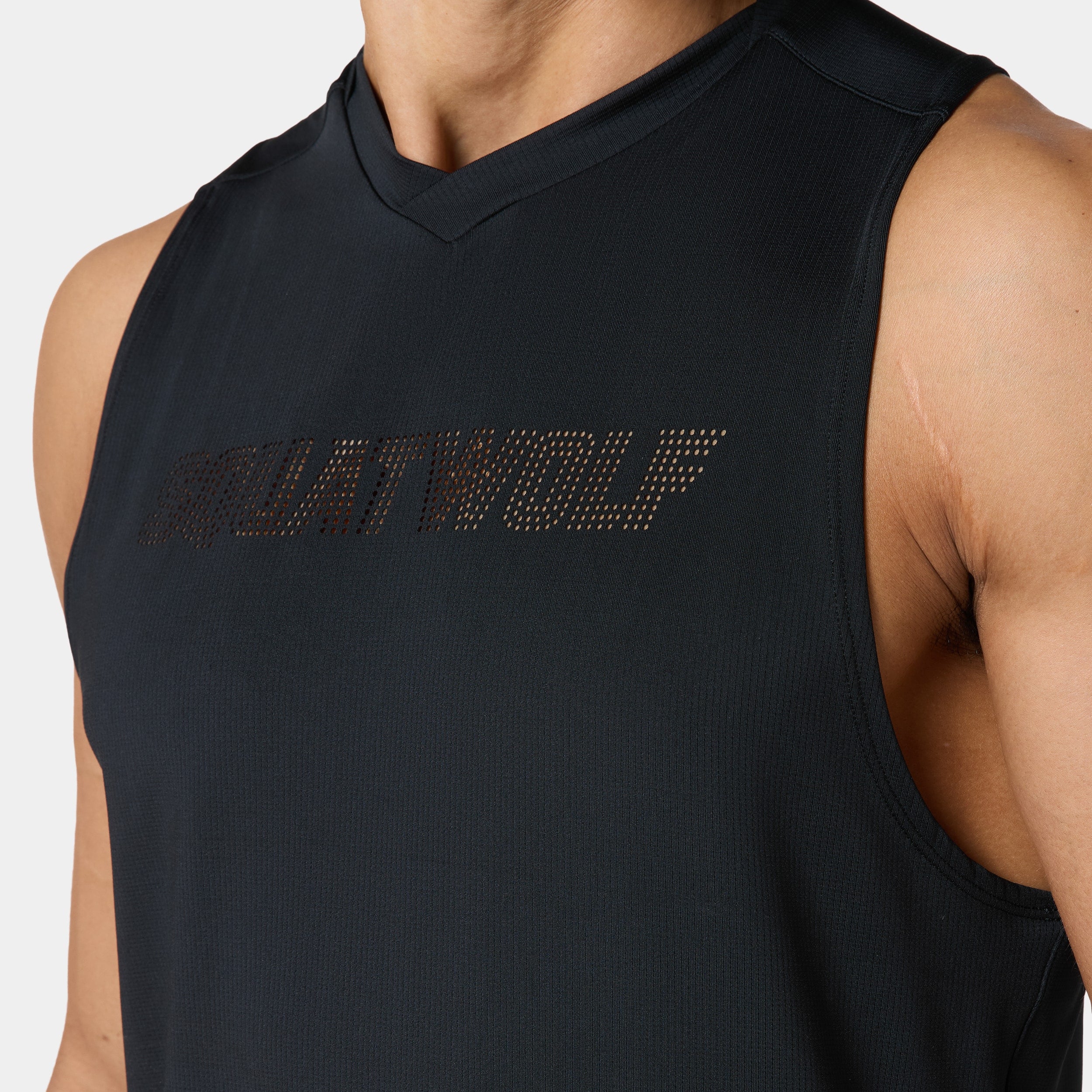 Self-fabric V-neckline with a wrap-over design for a clean, minimal look Forward shoulder seams for a flattering fit Muscle back design with panel detailing for added structure Back neck buggy for extra comfort Dropped back hem for better coverage ACTDRY® technology to keep you cool and dry Icon logo placed on the back neck Laser-perforated wordmark logo on the front chest for a subtle finish Athletic fit Model Wearing Large: Height 6'2" / 187 cm // Chest: 44" // Waist: 32.5"