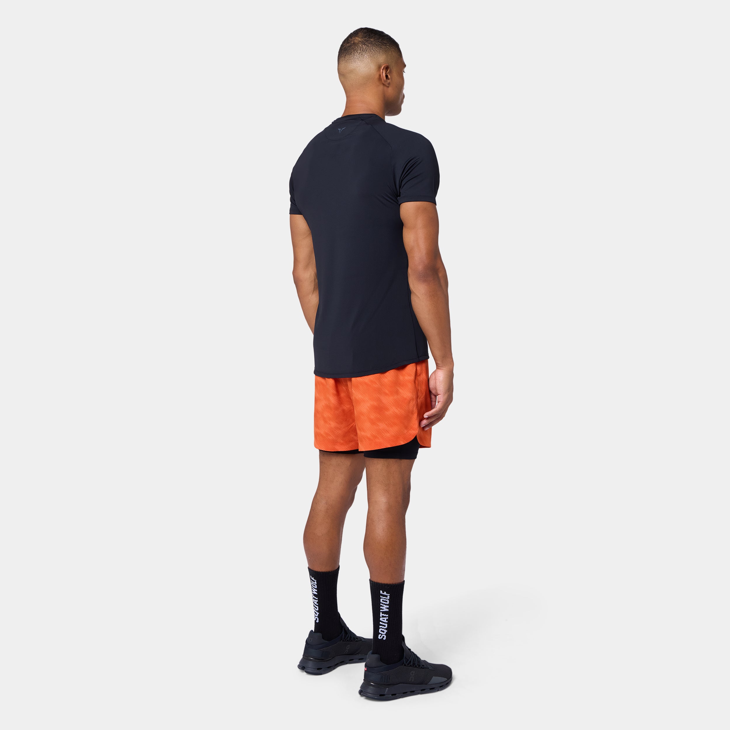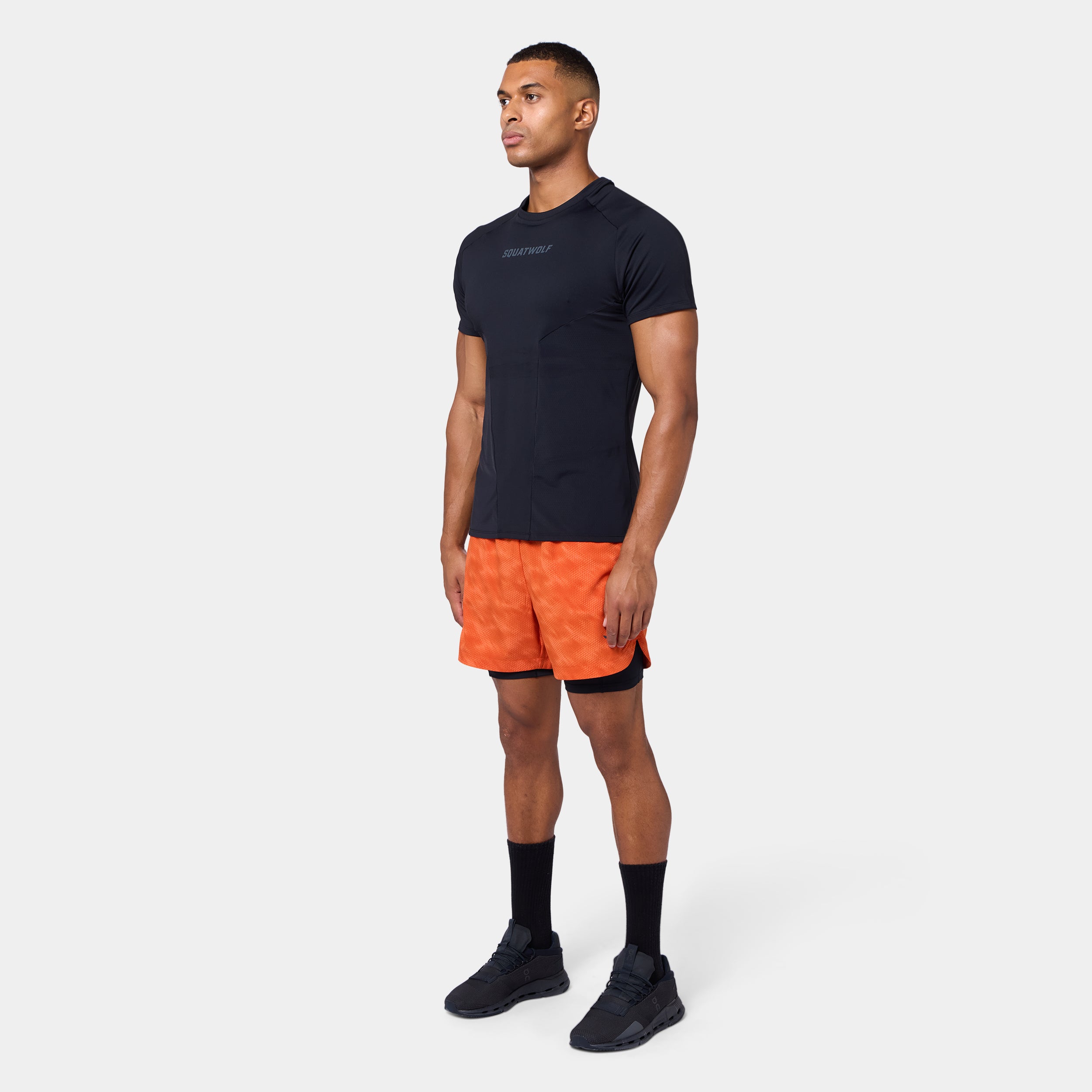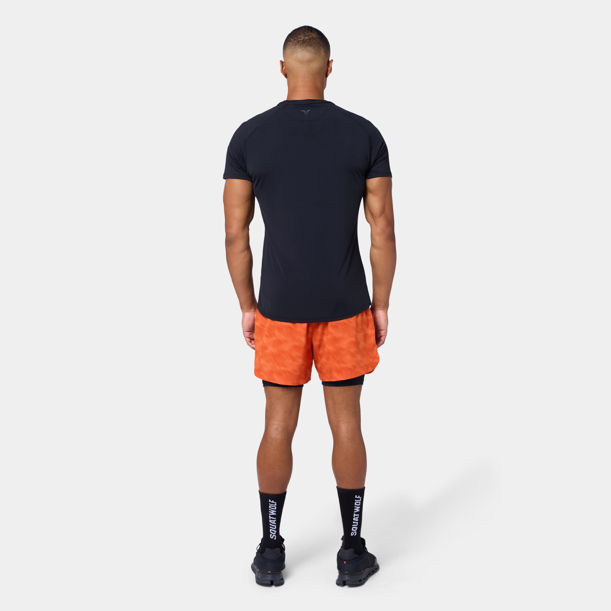 Perforated mesh fabric for quicker drying, breathability, and comfort.