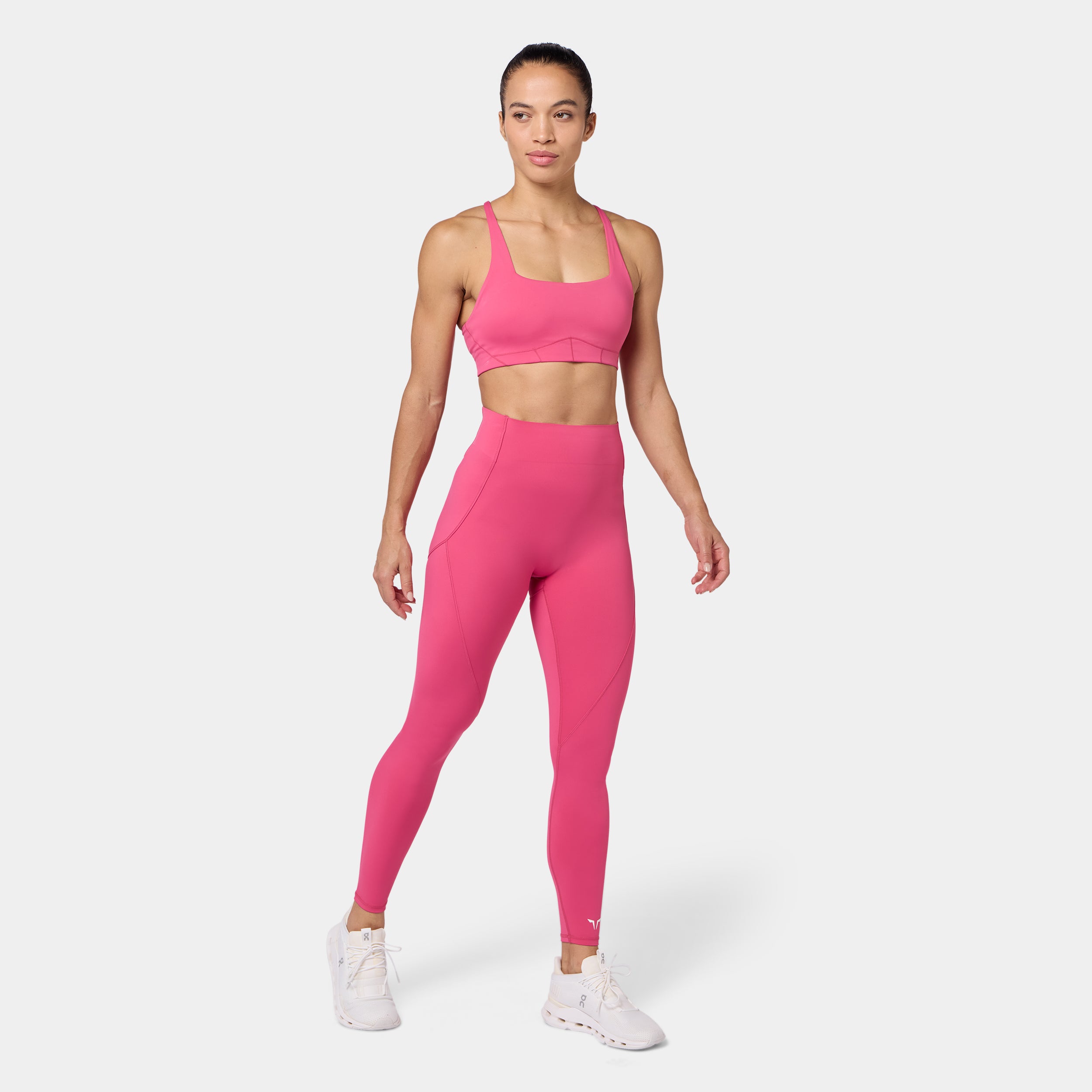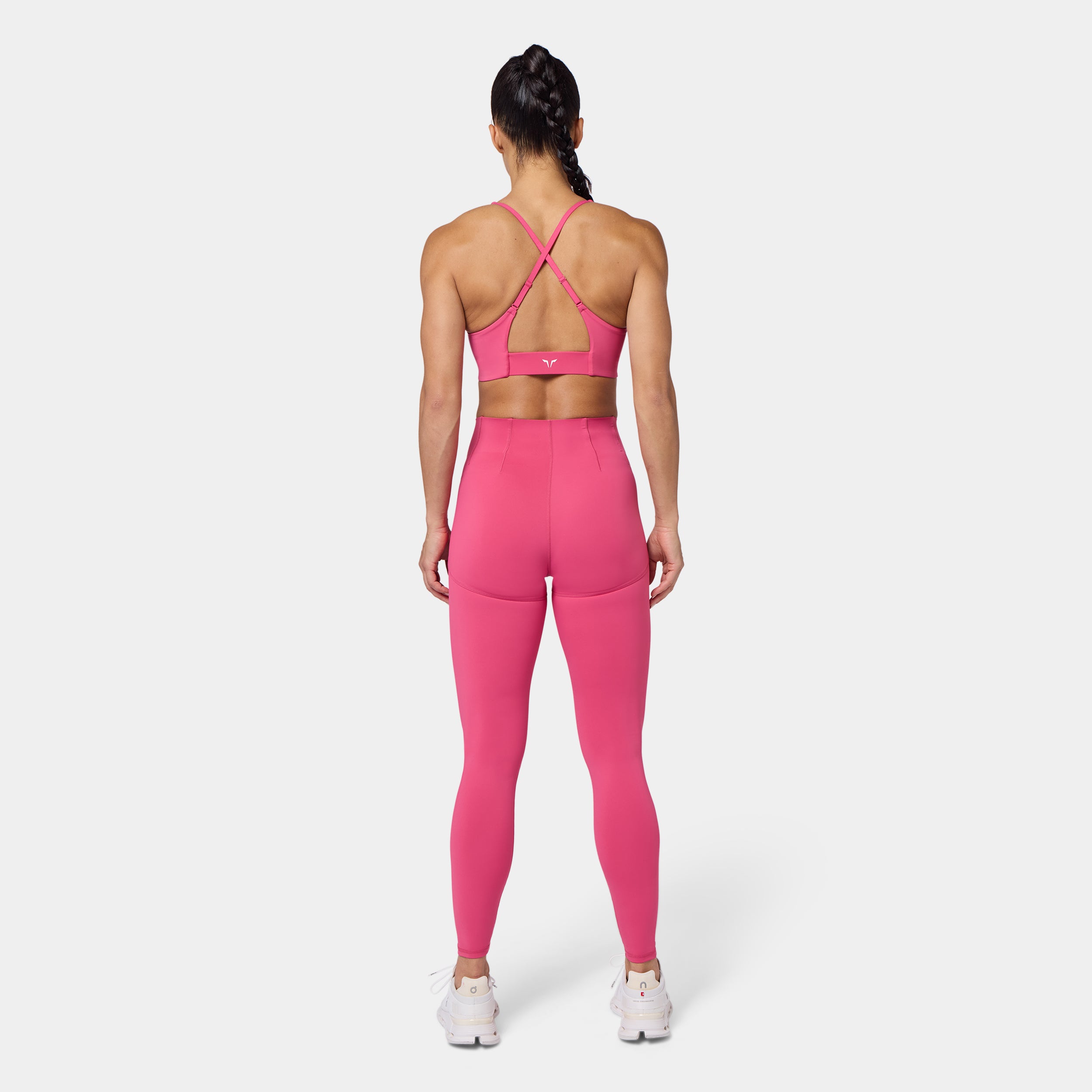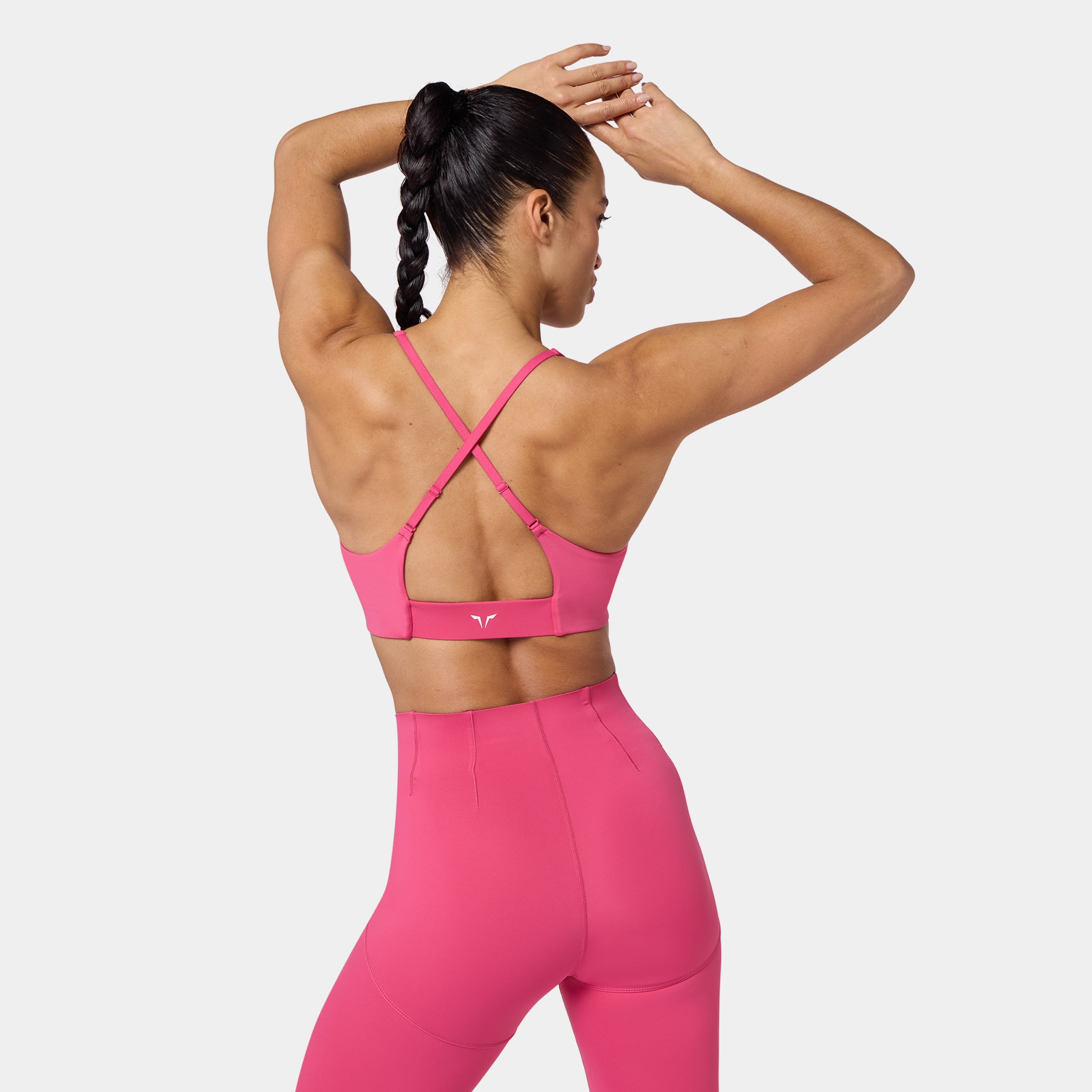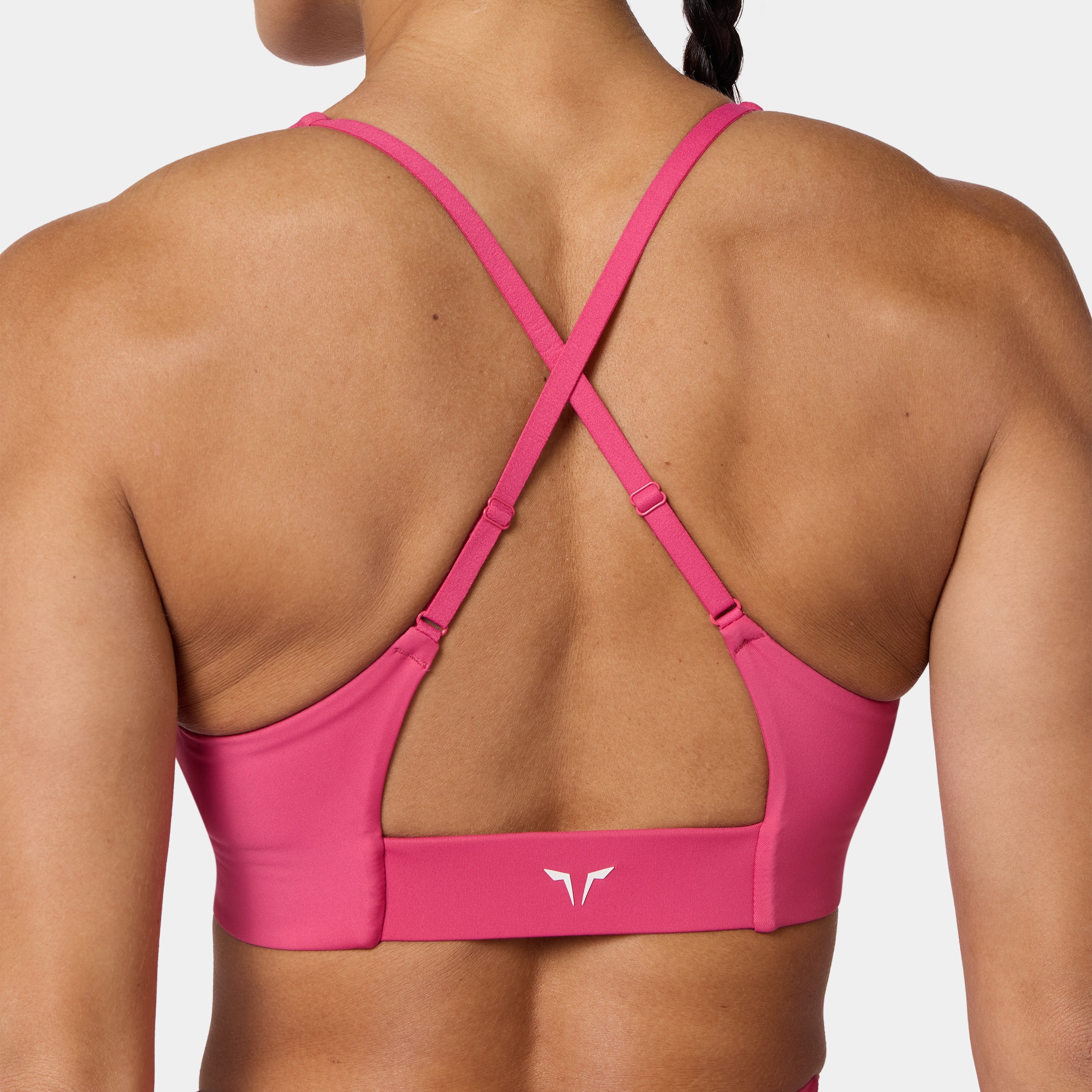 Square neckline for a bold, modern look Contour seam detailing for a sculpted fit Removable cups for customizable support Cross-back design for added style and flexibility Adjustable straps for a personalised fit Icon logo in silicone heat transfer on the back band Low coverage A/B cup Model Wearing Small: Height 5'8" / 174 cm // Bust: 33.5" // Waist: 26.5" // Hips: 38"