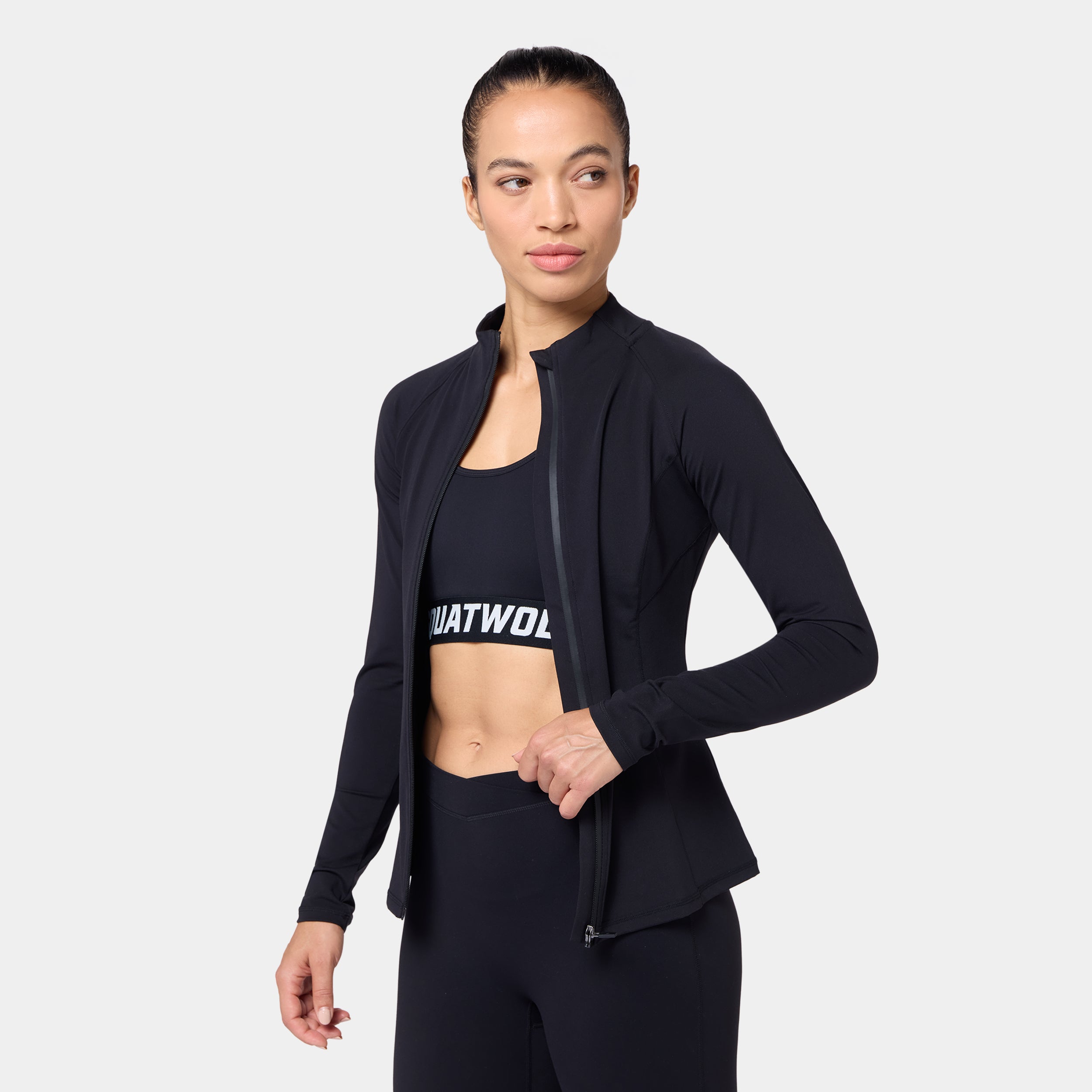 Grown-on (integrated) front neckline for a smooth, seamless look Raglan long sleeves for easy movement Full PU-coated zip front closure for a sleek finish Bonded internal zip guard for added comfort Contour seam detailing throughout for a sculpted fit Icon logo in silicone heat transfer on the back neck Athletic fit Model Wearing Small: Height 5'8" / 174 cm // Bust: 33.5" // Waist: 26.5" // Hips: 38"