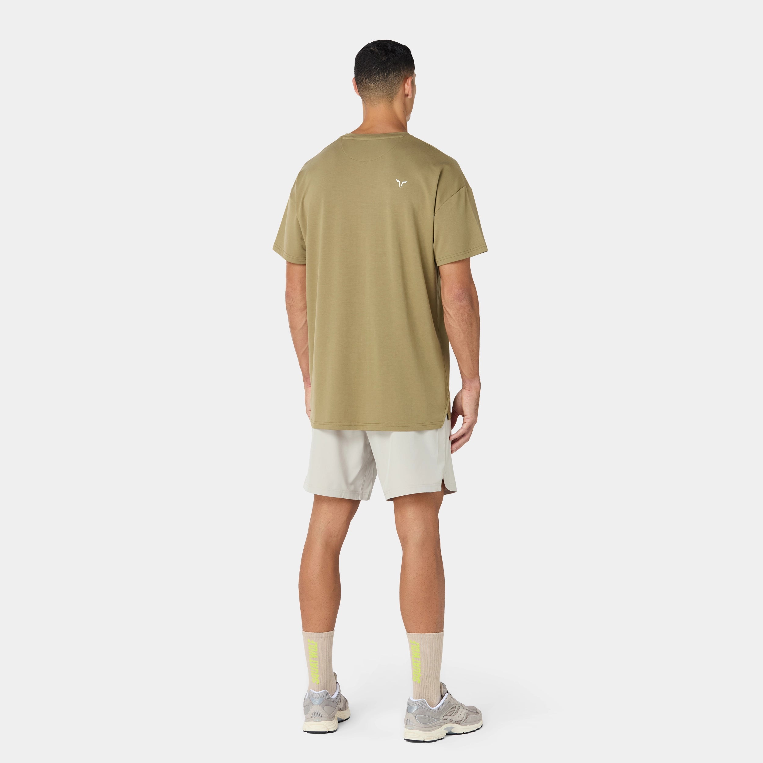 Lightweight, breathable fabric Set-in short sleeves with dropped shoulders Back neck panel for added structure Icon logo on back shoulder Vertical wordmark on left sleeve Angled side vents for easy movement Slightly longer back hem for added coverage Oversized fit Model Wearing Medium: Height 6'2" / 190 cm // Chest: 41.5″ // Waist: 33″