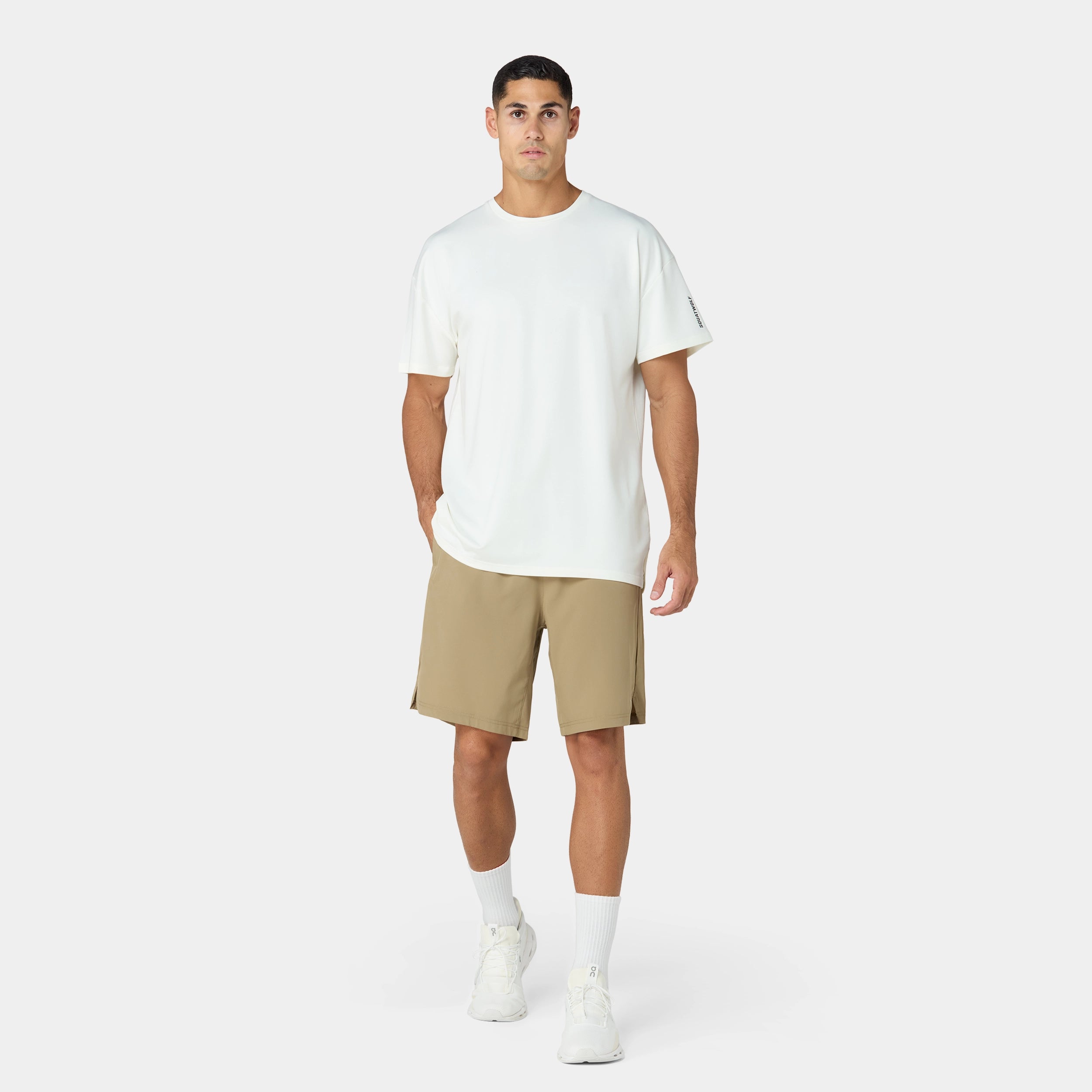 Lightweight, breathable fabric Set-in short sleeves with dropped shoulders Back neck panel for added structure Icon logo on back shoulder Vertical wordmark on left sleeve Angled side vents for easy movement Slightly longer back hem for added coverage Oversized fit Model Wearing Medium: Height 6'2" / 190 cm // Chest: 41.5″ // Waist: 33″