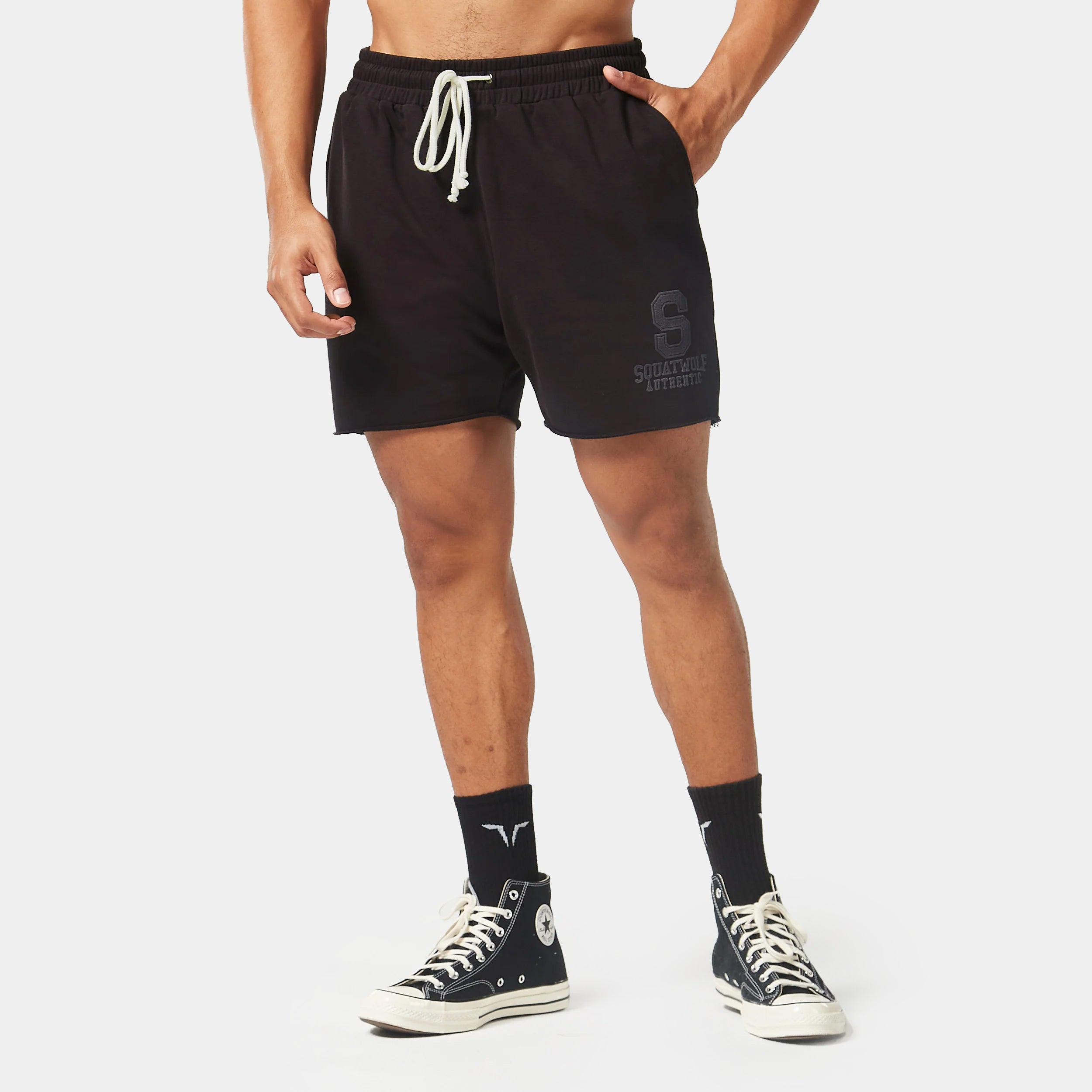 2-way stretch Moisture-wicking Soft hand feel Washed finish Elasticated waistband with drawcord for adjustability Side & patched back pockets for storage Raw edge hem to give vintage look and feel lock distressed logo detail at the front leg Jock tag detail to the CB Regular Fit Model Wearing Extra Large: Height 6’0” / 184 cm // Chest: 43” // Waist: 33” Garment measurements: Waist width: S - 72 cm Waist width: M - 77 cm Waist width: L - 82 cm Waist width: XL - 87 cm Waist width: XXL - 92 cm Inseam length on outer shorts for all sizes: 12.5 cm Inseam length on inner shorts for all sizes: 9 cm