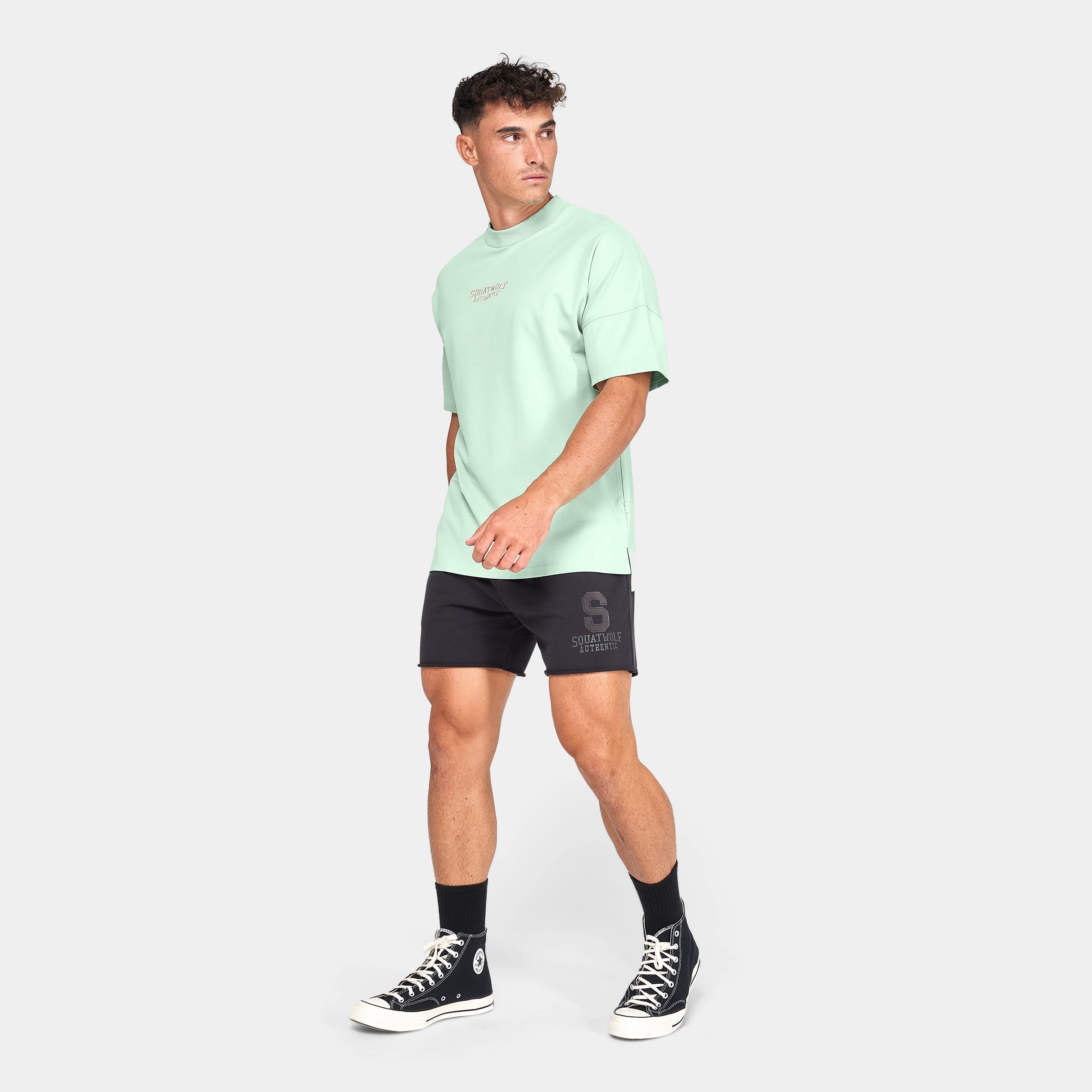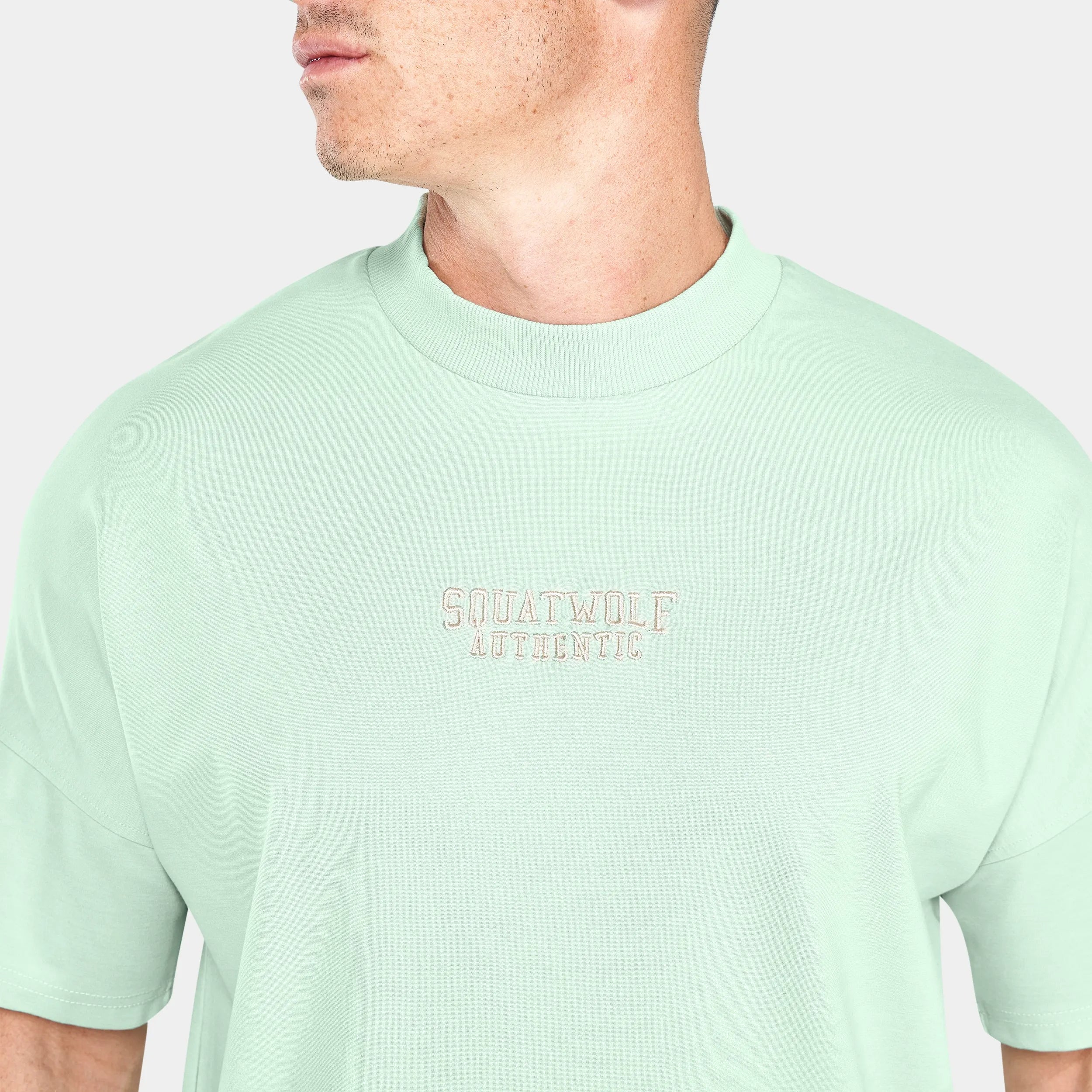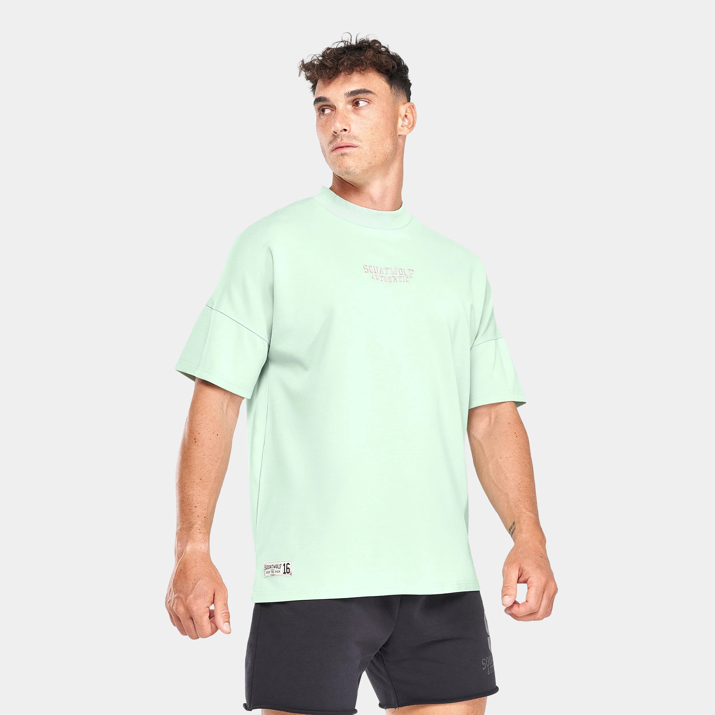 Soft hand feel Ribbed neckline for comfort Side vents Dropped hem Dropped shoulders Jock tag to centre front Washed-in look for retro aesthetic SQUATWOLF Authentic embroidered to the front Oversized fit Model Wearing Extra Large: Height 6’0″ / 184 cm // Chest: 43″ // Waist: 33″