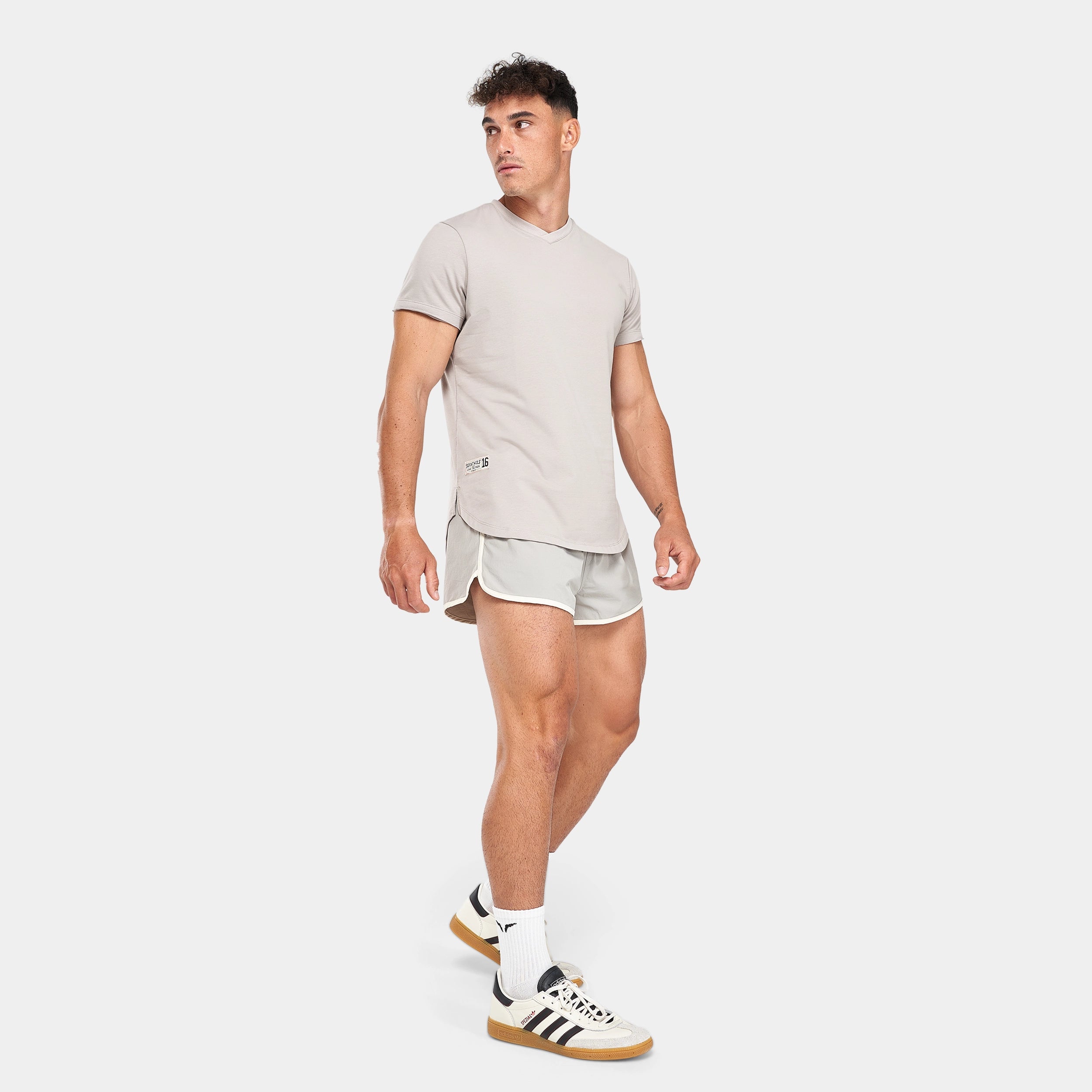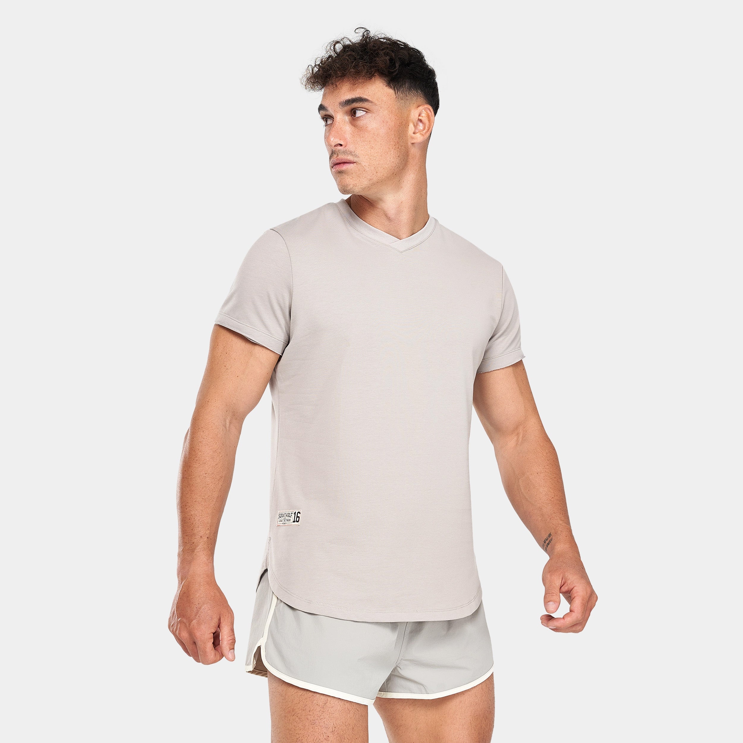 Moisture-wicking Split hems for mobility Dropped rear hem for coverage Overlapped V-neck Distressed flock logo Athletic fit Model Wearing Extra Large: Height 6’0″ / 184 cm // Chest: 43″ // Waist: 33″ Garment measurements: Chest width: S - 101 cm Chest width: M - 107 cm Chest width: L - 113 cm Chest width: XL - 119 cm Chest width: XXL - 125 cm Front body length from shoulder to hem: S - 71 cm M - 73 cm L - 75 cm XL - 77 cm XXL - 79 cm