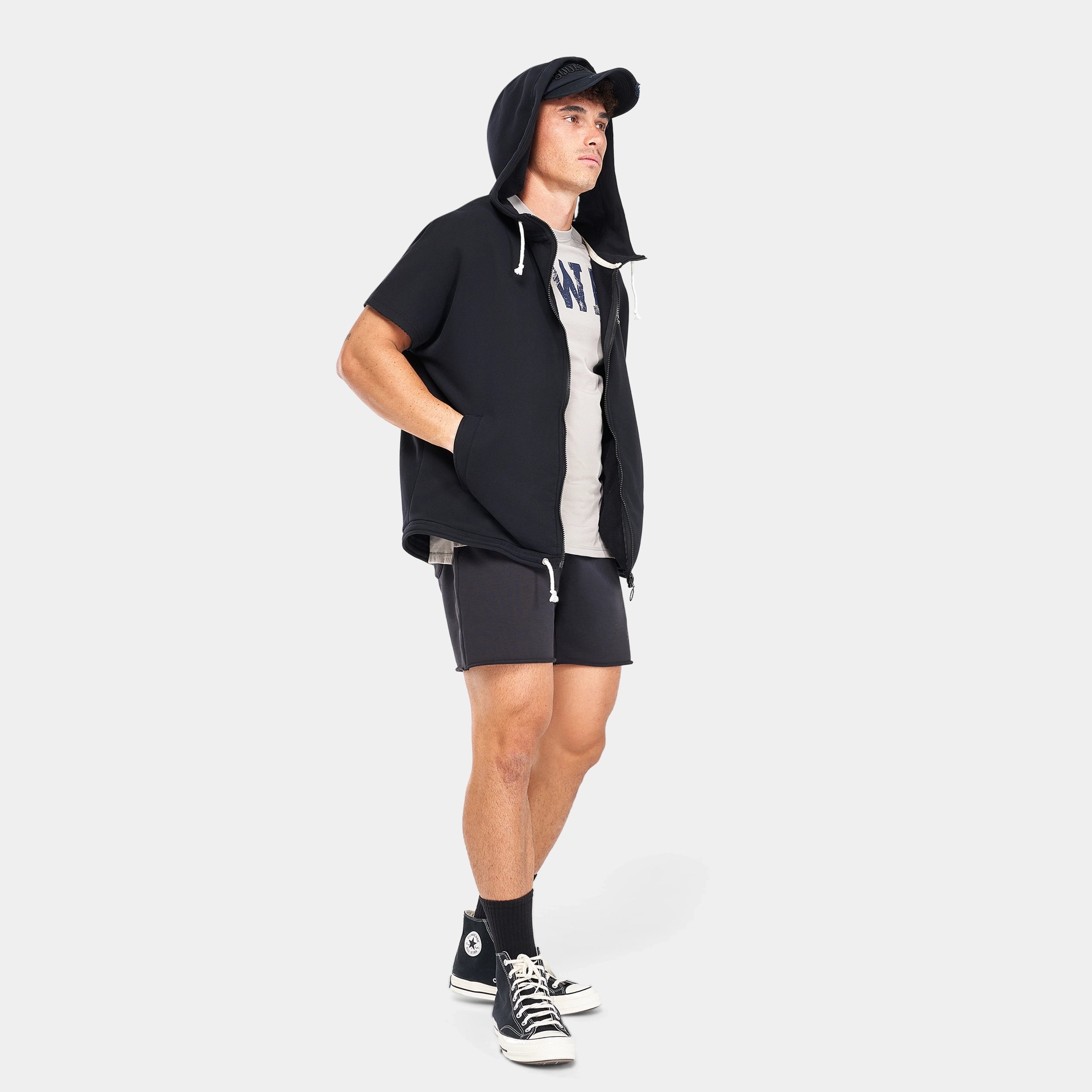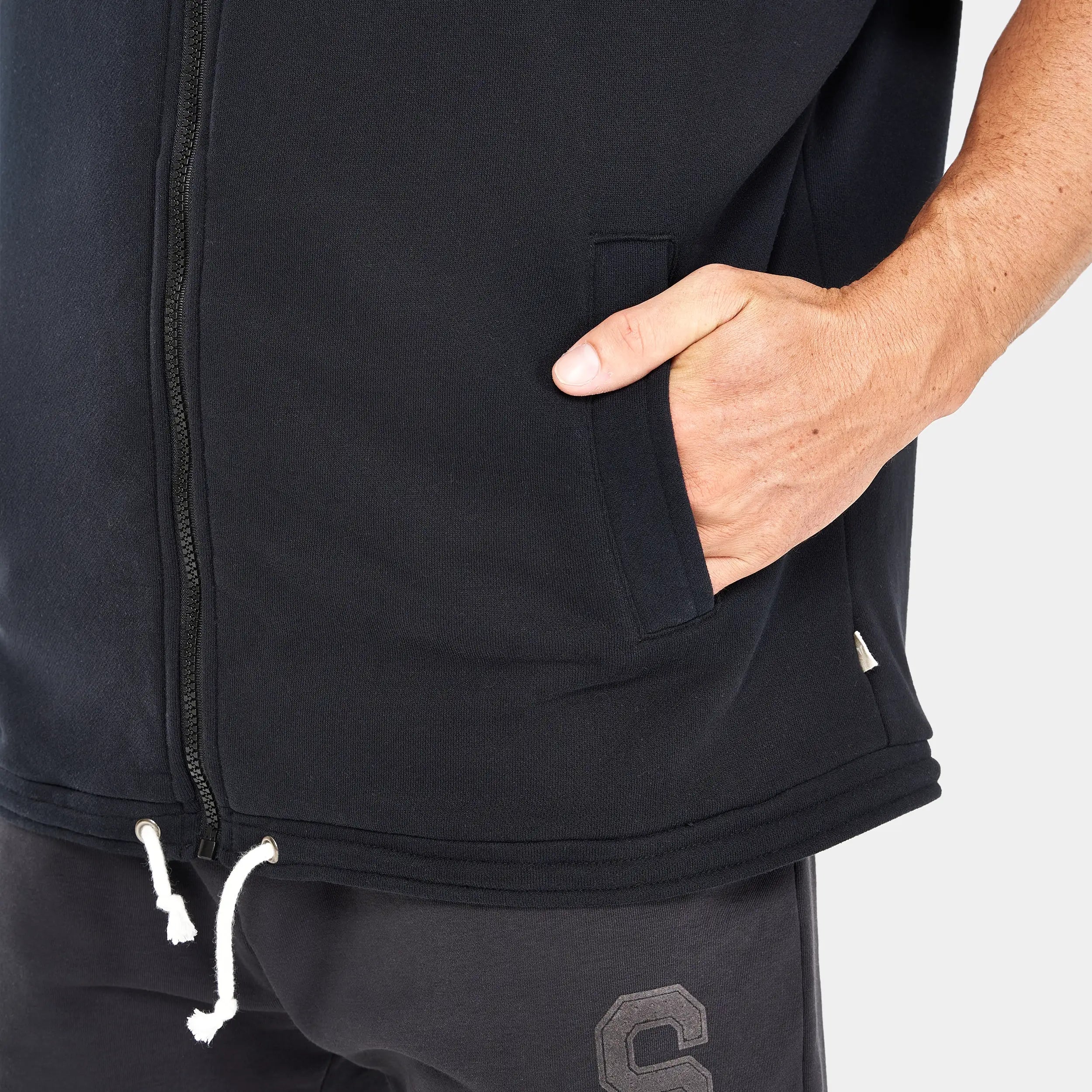 Soft loopback sweat fabric in a cotton/polyester blend, designed to keep you cool and comfortable during your workout and beyond.