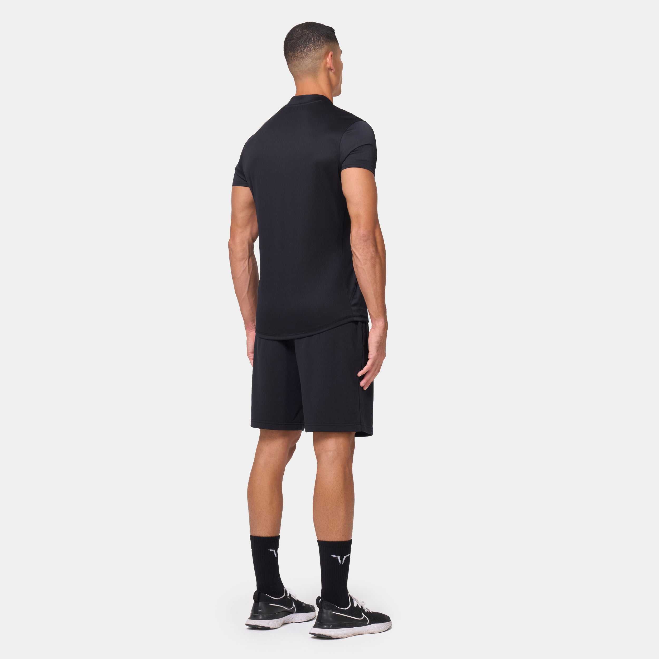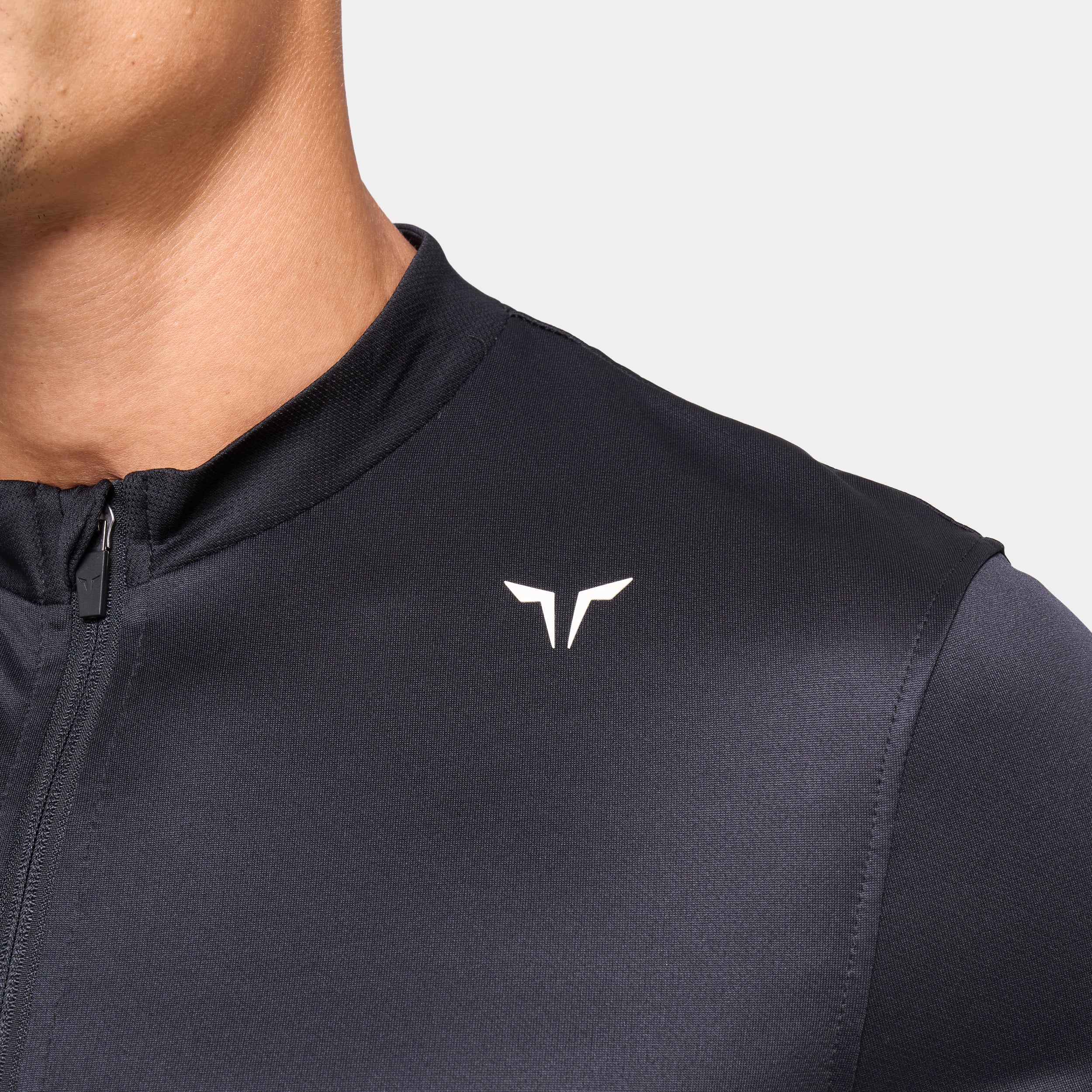 Set-in short sleeves with a modern turtle neckline Quarter zip for adjustable coverage Dual-texture fabric for a subtle contrast look Angled side seam panels for a sculpted fit Dropped back hem for added coverage Icon logo on front left chest Athletic fit Model Wearing Medium: Height 6'2" / 190 cm // Chest: 41.5″ // Waist: 33″