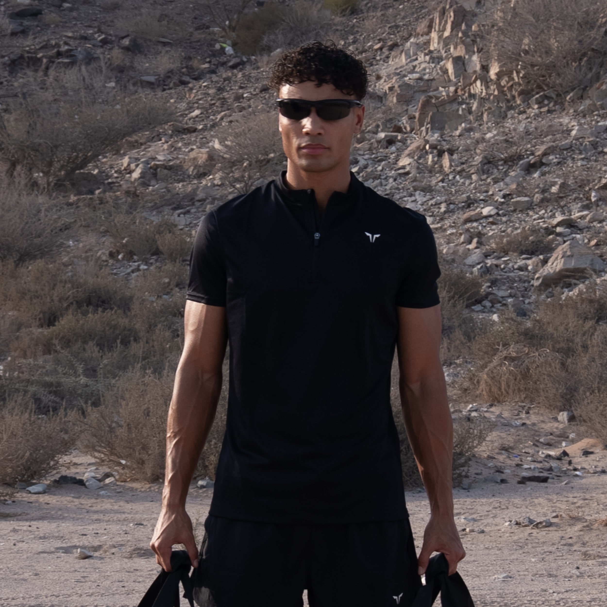 - Lightweight Quarter Zip T-shirt - Black