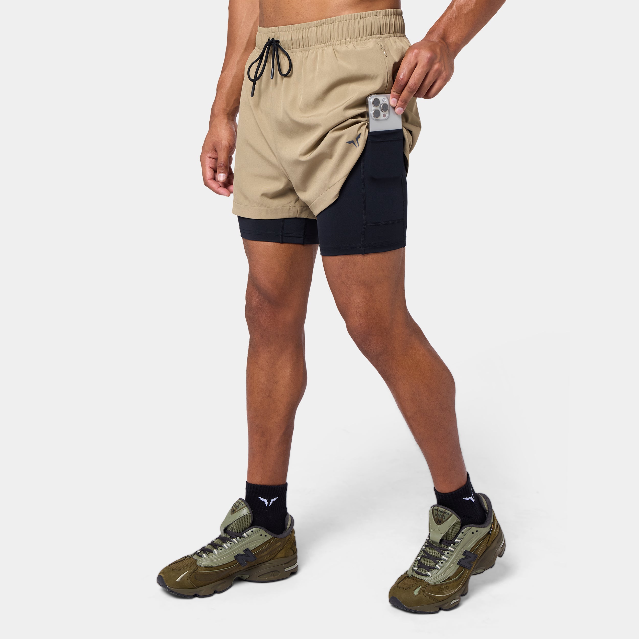 Elasticated waistband with a drawcord for an adjustable fit Side seam pockets with concealed zips for secure storage Inner shorts with a slip pocket on the thigh for added convenience Icon logo on the front left hem Regular fit Model Wearing Medium: Height 6'2" / 187 cm // Chest: 44" // Waist: 32.5" Inseam length for outer short: 3" Inseam length for inner short: 5"