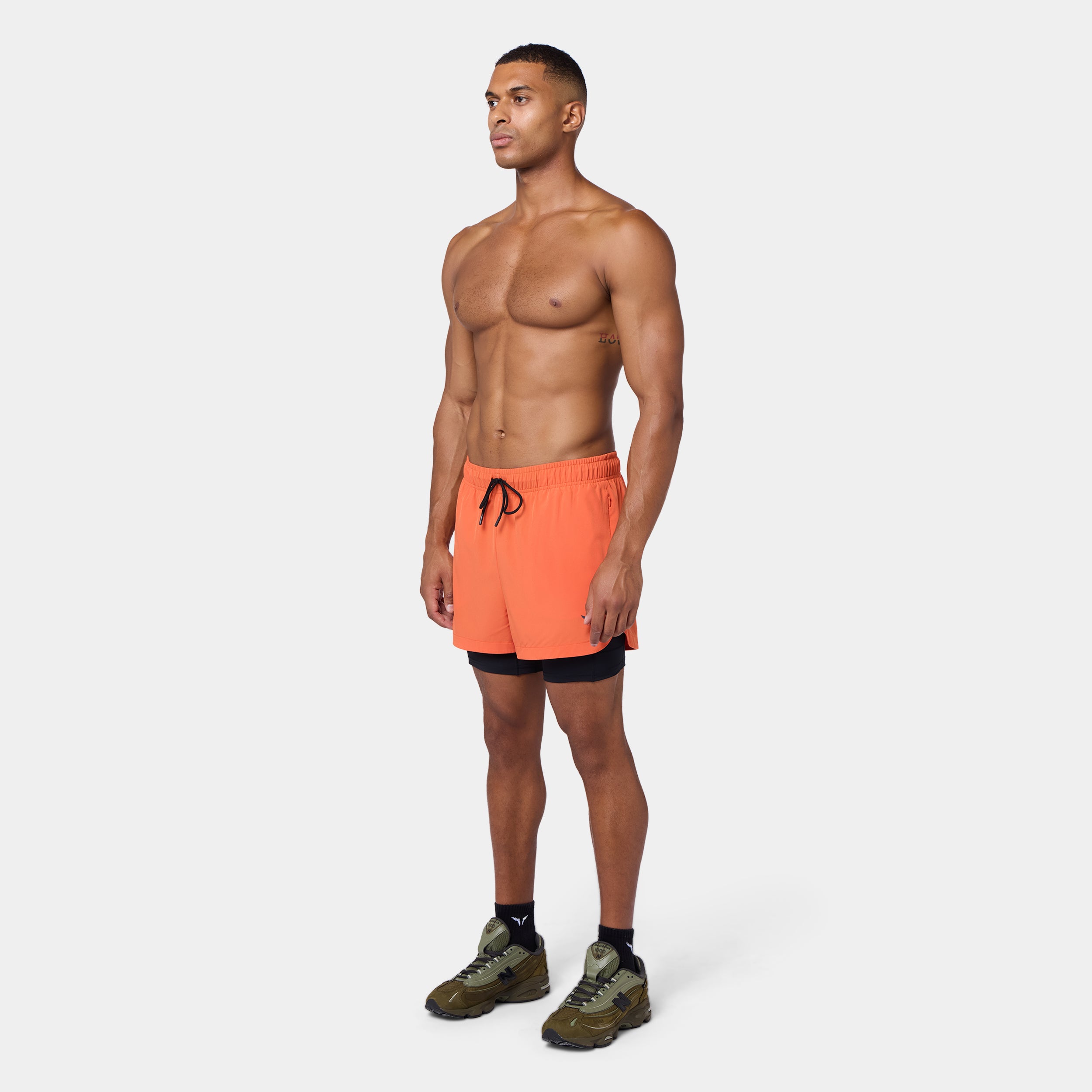 Elasticated waistband with a drawcord for an adjustable fit Side seam pockets with concealed zips for secure storage Inner shorts with a slip pocket on the thigh for added convenience Icon logo on the front left hem Regular fit Model Wearing Medium: Height 6'2" / 187 cm // Chest: 44" // Waist: 32.5" Inseam length for outer short: 3" Inseam length for inner short: 5"
