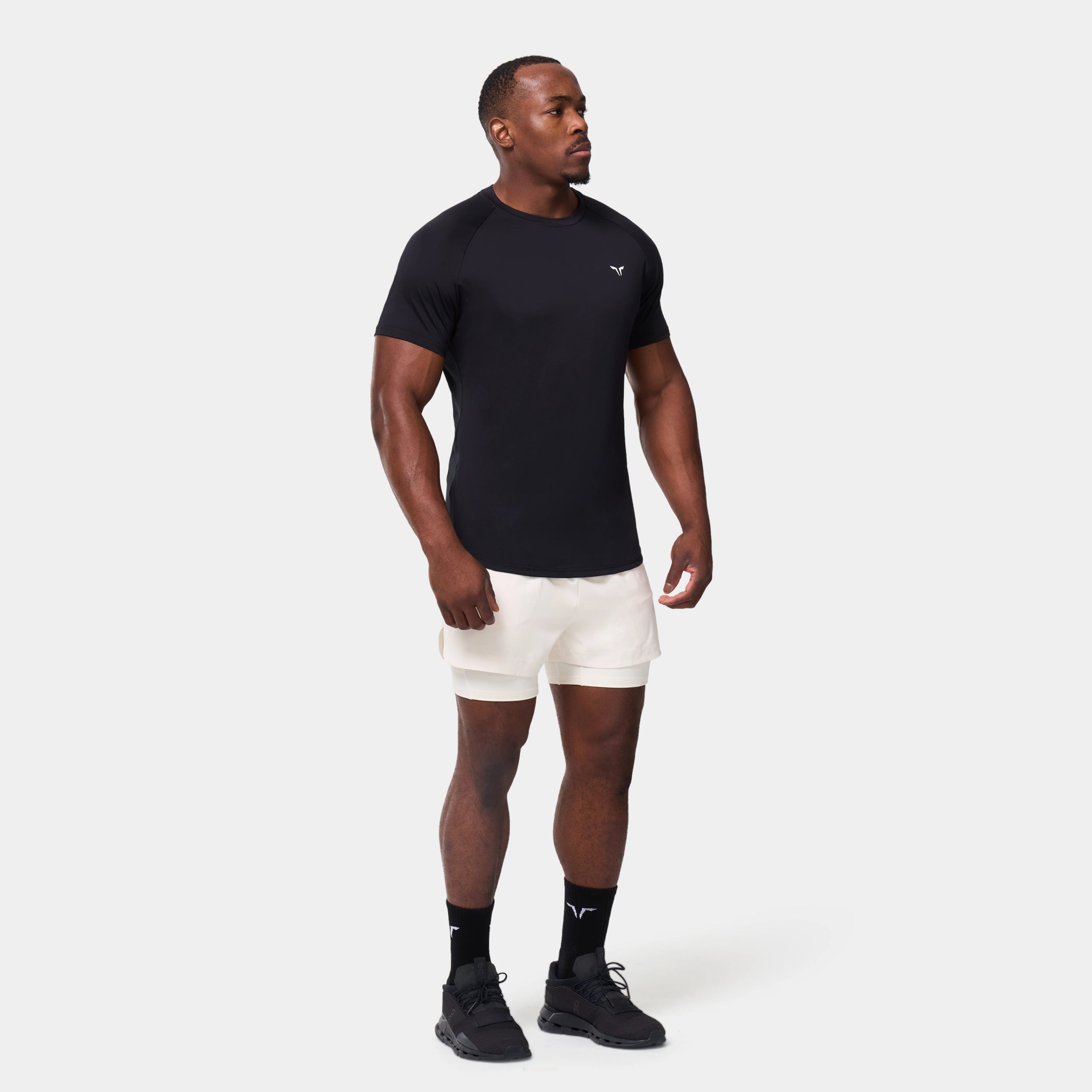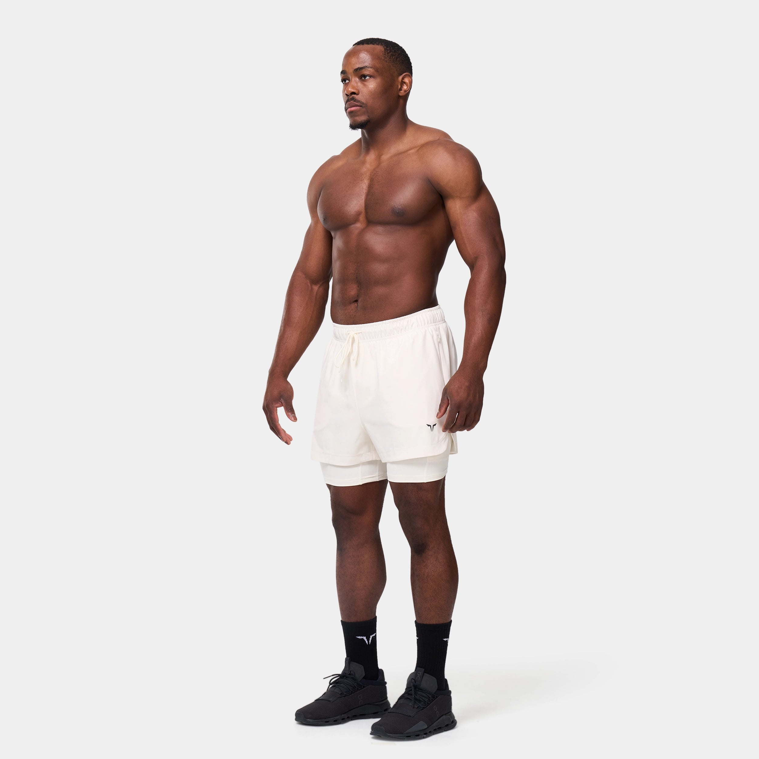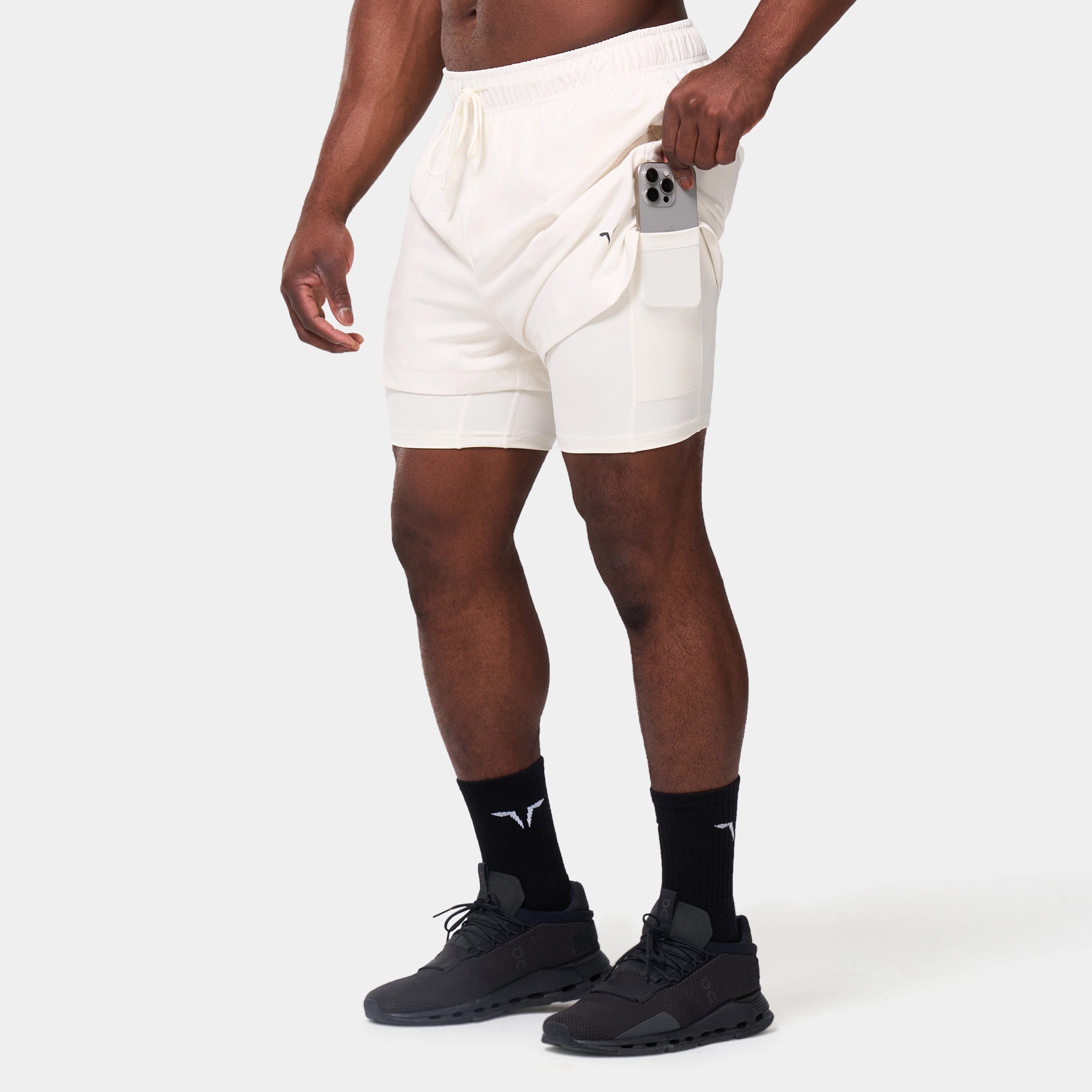Elasticated waistband with a drawcord for an adjustable fit Side seam pockets with concealed zips for secure storage Inner shorts with a slip pocket on the thigh for added convenience Icon logo on the front left hem Regular fit Model Wearing Medium: Height 5'9" / 175 cm // Chest: 39" // Waist: 32" Inseam length for outer short: 3" Inseam length for inner short: 5"