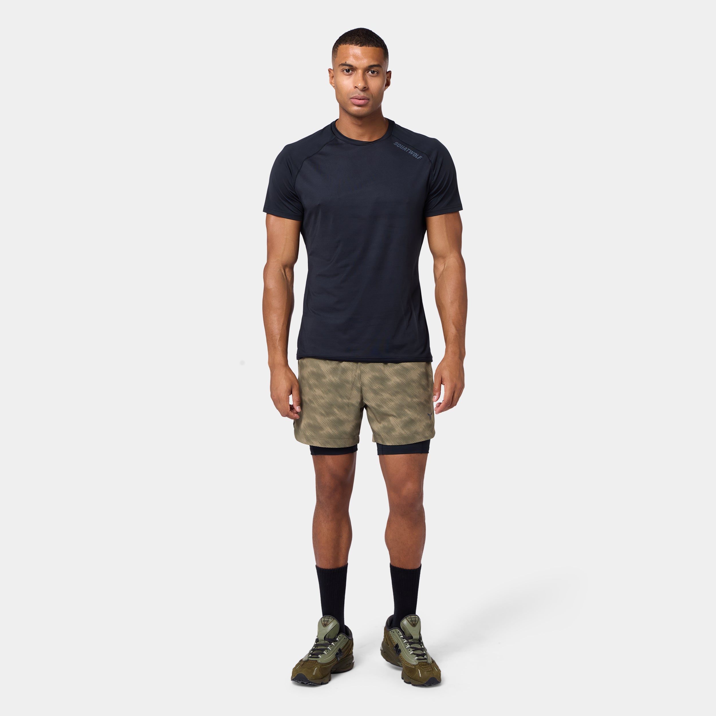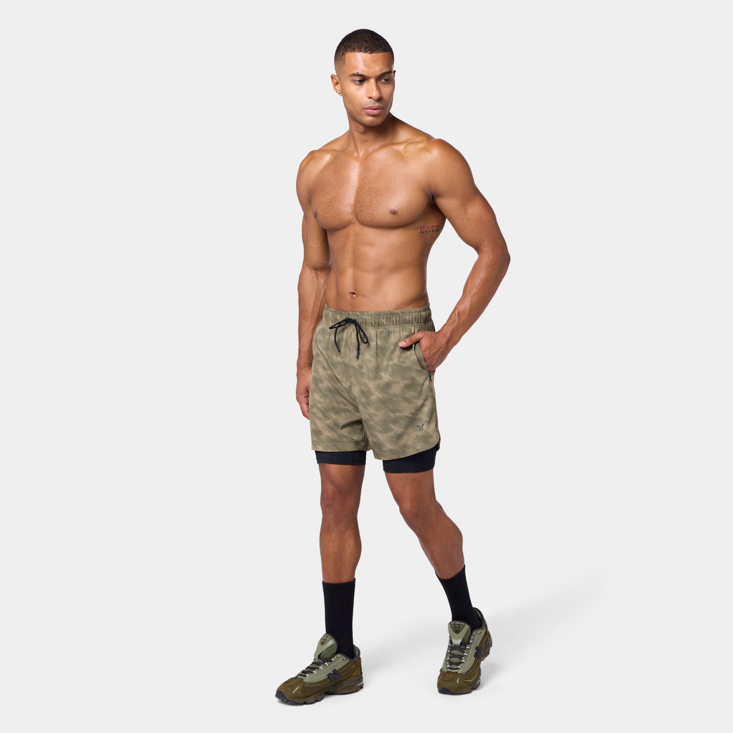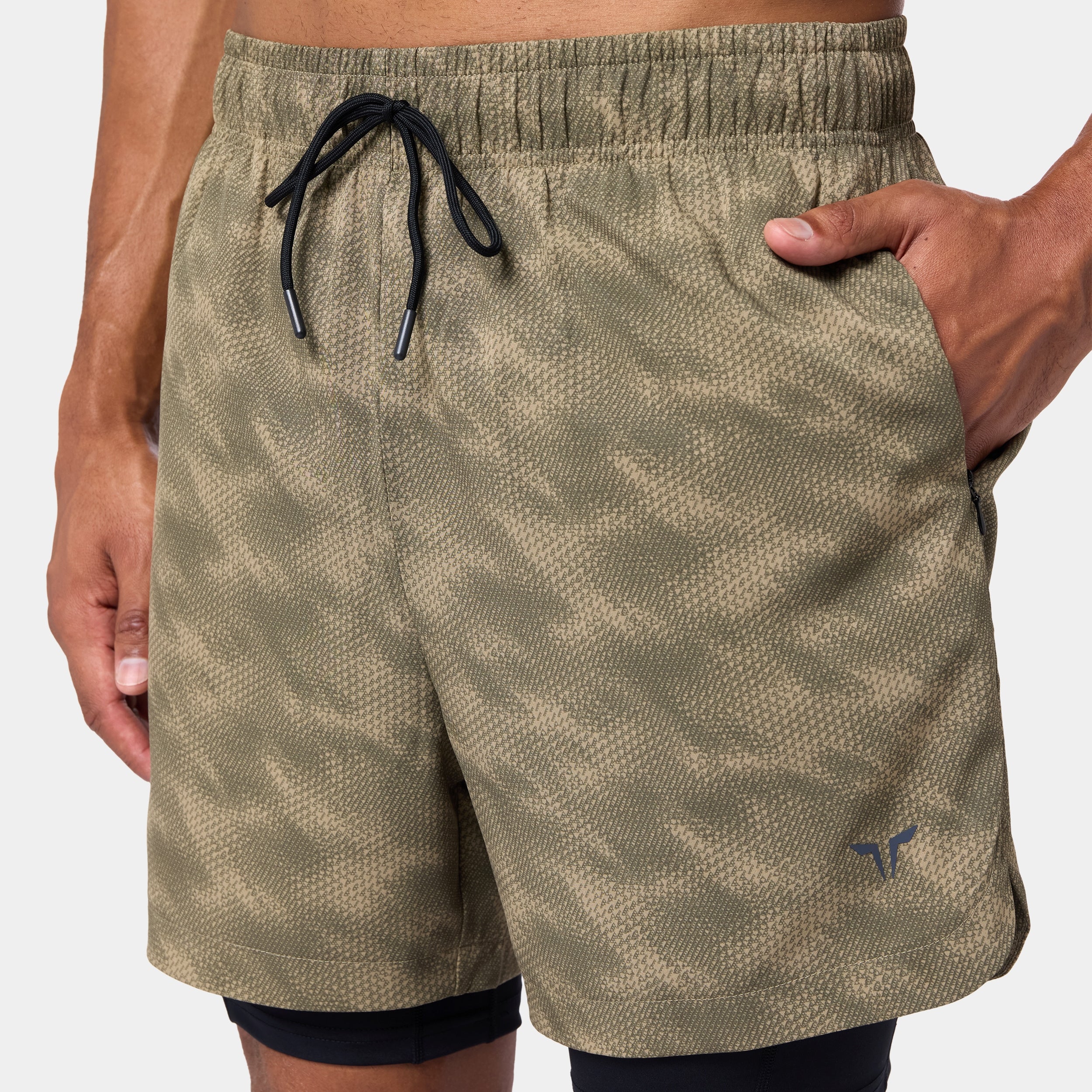 Elasticated waistband with a drawcord for an adjustable fit Side seam pockets with concealed zips for secure storage Inner shorts with a slip pocket on the thigh for added convenience Icon logo on the front left hem All-over print available on selected colourways Regular fit Model Wearing Medium: Height 6'2" / 187 cm // Chest: 44" // Waist: 32.5" Inseam length for outer short: 5" Inseam length for inner short: 7"