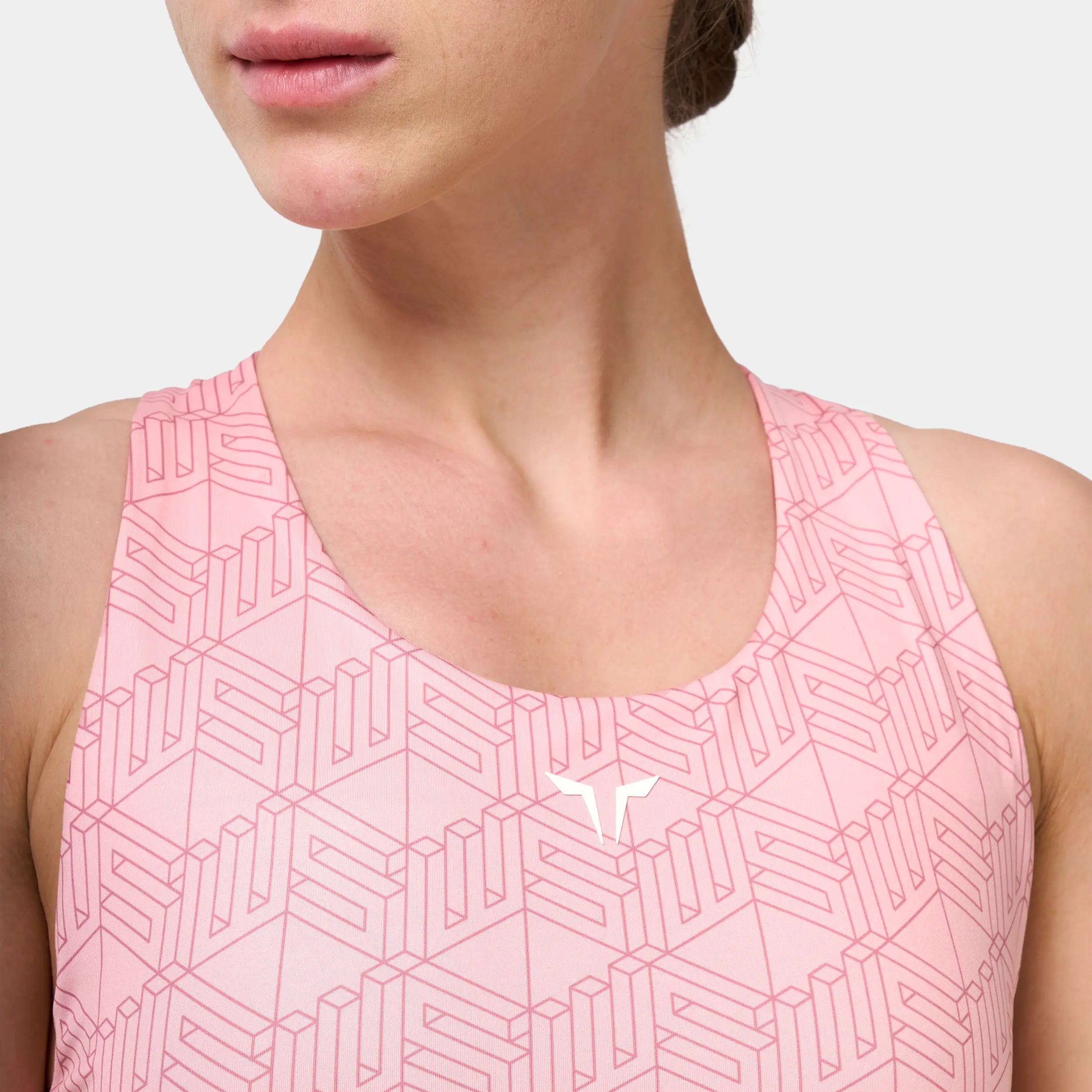 Lightweight 4-way stretch Fabric feels soft against the skin Scooped neckline Built in shelf bra Muscle back shape Brushed elastic in internal bra support All over print design Athletic fit Model Wearing Small: Height 5'7" / 171 cm // Bust: 34" // Waist: 26" // Hips: 38.5" Garment measurements: Chest width (bust): XS - 58 cm Chest width (bust): S - 64.5 cm Chest width (bust): M - 71 cm Chest width (bust): L - 77.5 cm Chest width (bust): XL - 84 cm Body length from shoulder to hem: XS - 34 cm S - 35 cm M - 36 cm L - 37 cm XL - 38 cm