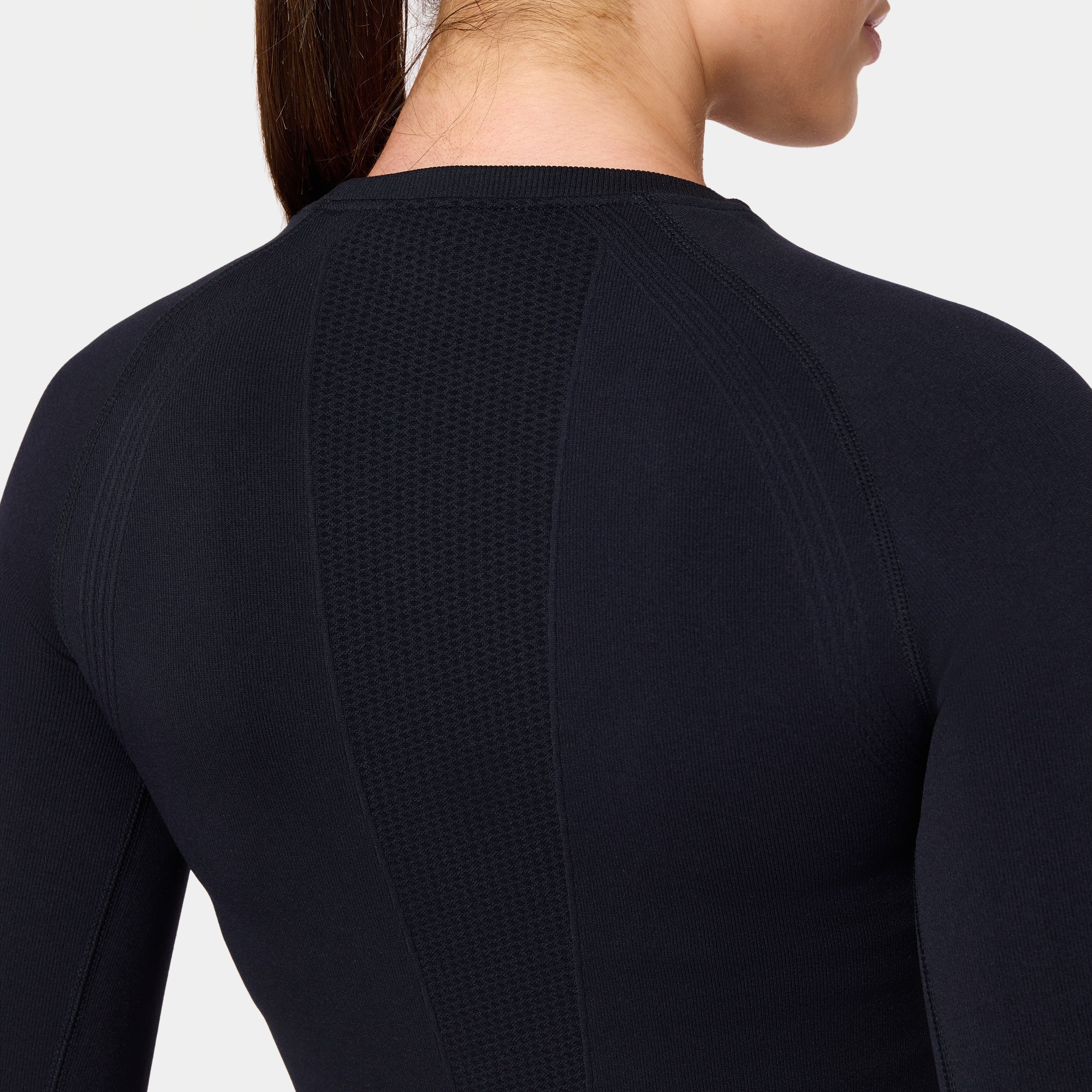 Seamless knit with high stretch, crafted for a smooth, second-skin feel that supports ease of movement and all-day comfort during low-impact workouts.