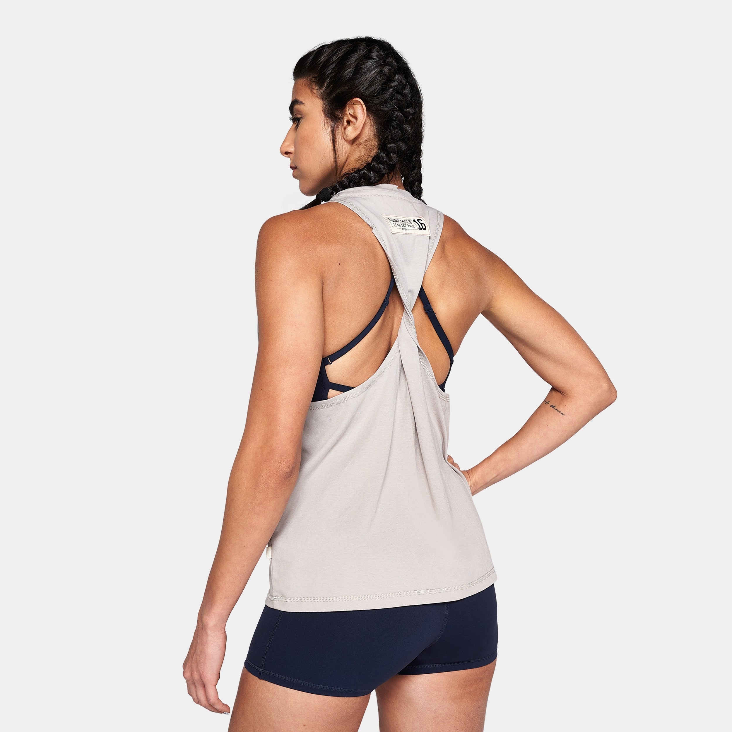 Cotton hand-feel Fabric feels soft against the skin 2- Way Stretch Crew neckline with v-shaped rib insert Extreme dropped armhole Distresssed edge design detail Muscle back twist at back Regular fit Model Wearing Extra Small: Height 5'9" / 174 cm // Bust: 33.5″ // Waist: 27″ // Hips: 38″