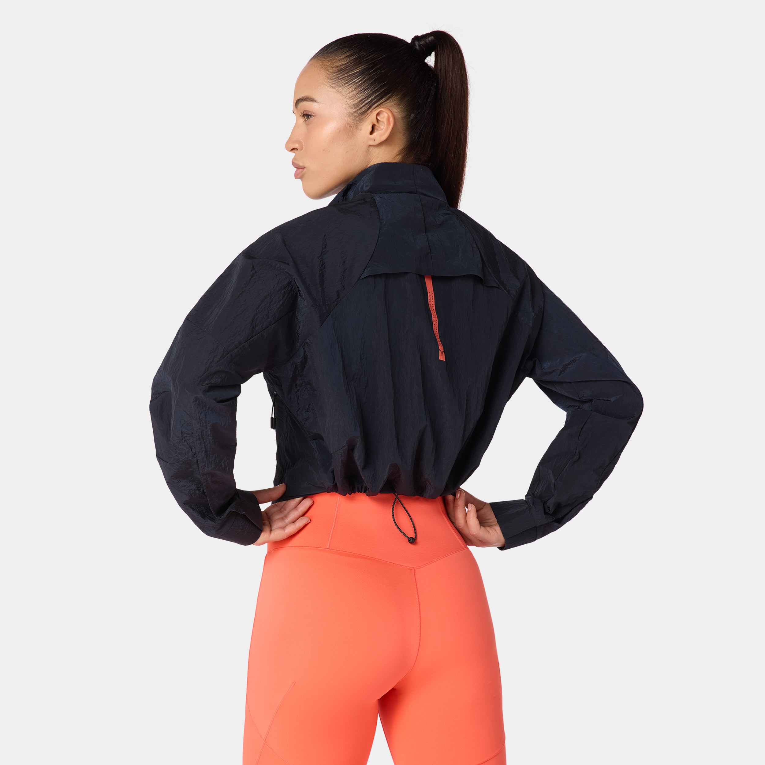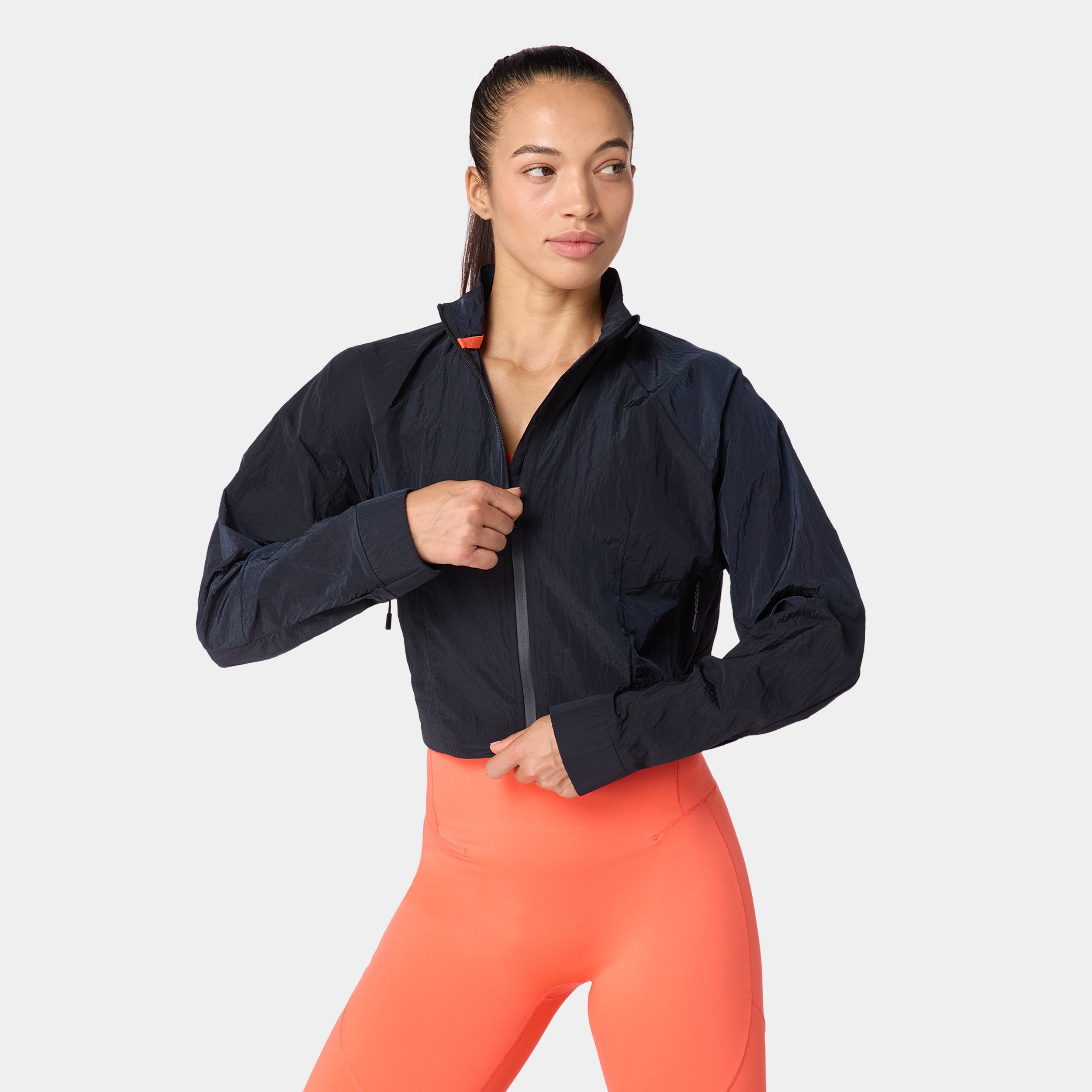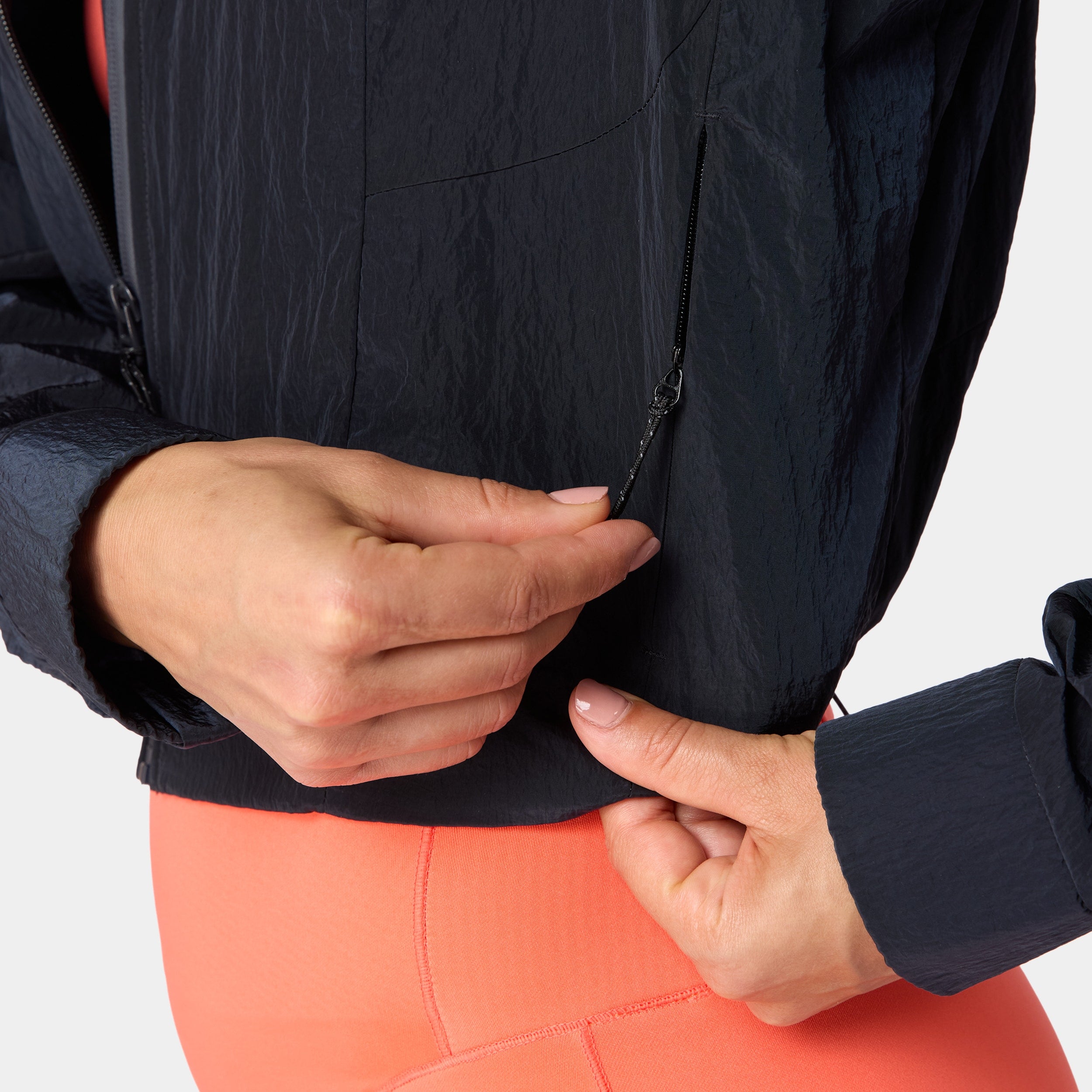 Lightweight fabric for all-day comfort Grown-on front neckline with darted seam construction at the back for a clean fit Full front zip closure with a bonded zip guard for a smooth finish Pivot armhole panel to enhance range of motion Shaping darts throughout for a flattering fit Front dart seams with concealed zip pockets for secure storage Vented back yoke with a bonded finish for breathability Adjustable bungee cord at the hemline for a custom fit Elastic extension at the cuffs for added flexibility Bonded hemline for a sleek look Reflective rubber heat transfer graphic at the upper back for visibility Regular fit Model Wearing Small: Height 5'8" / 174 cm // Bust: 33.5" // Waist: 26.5" // Hips: 38"