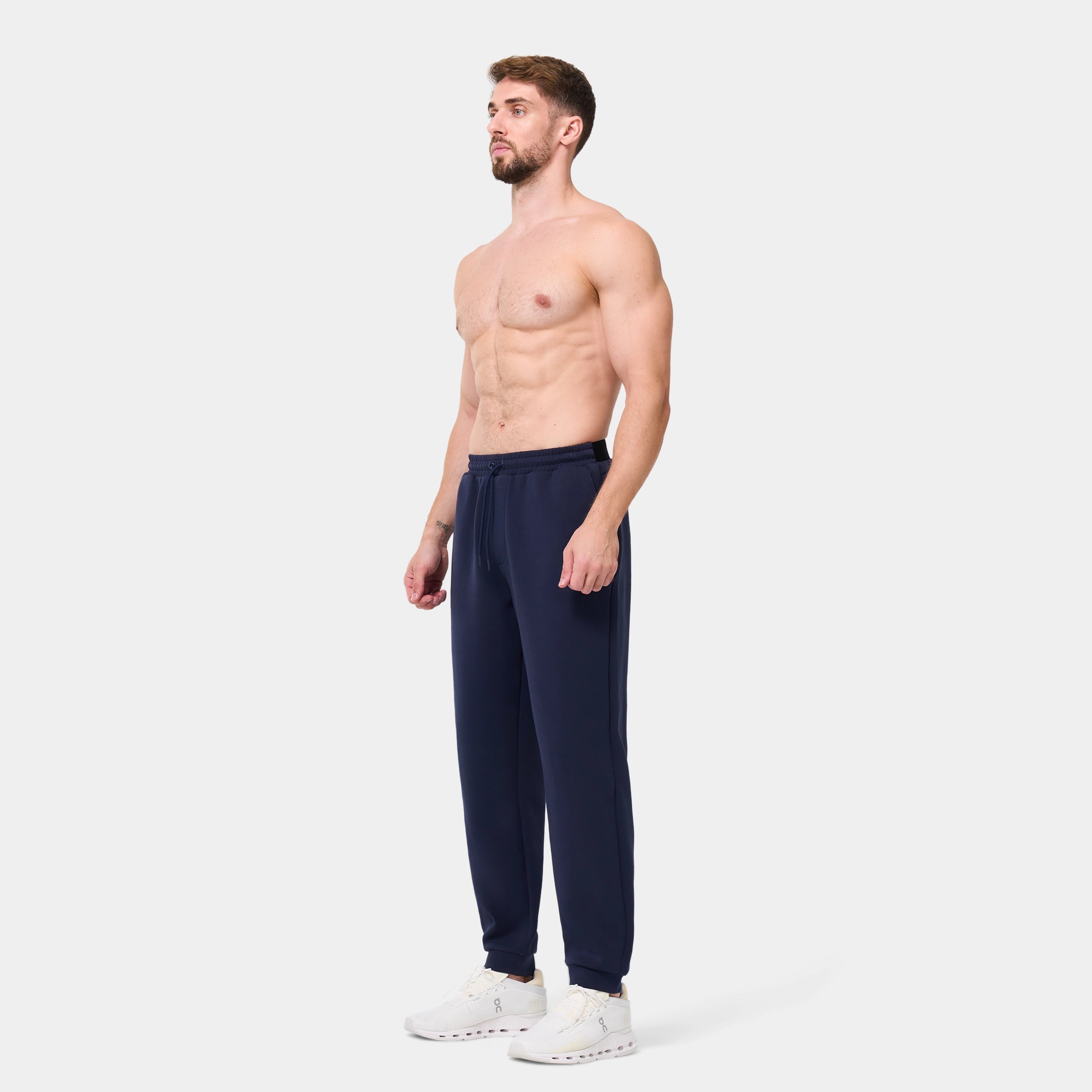 Fabric feels soft against the skin 4-way stretch fabric Elasticated waistband with external drawcord Open side slip pockets Wordmark elastic back waistabnd Back yoke with concealed zip pocket Cuffed Regular fit Model Wearing Medium: Height 6'1" / 186 cm // Chest: 38″ // Waist: 36″