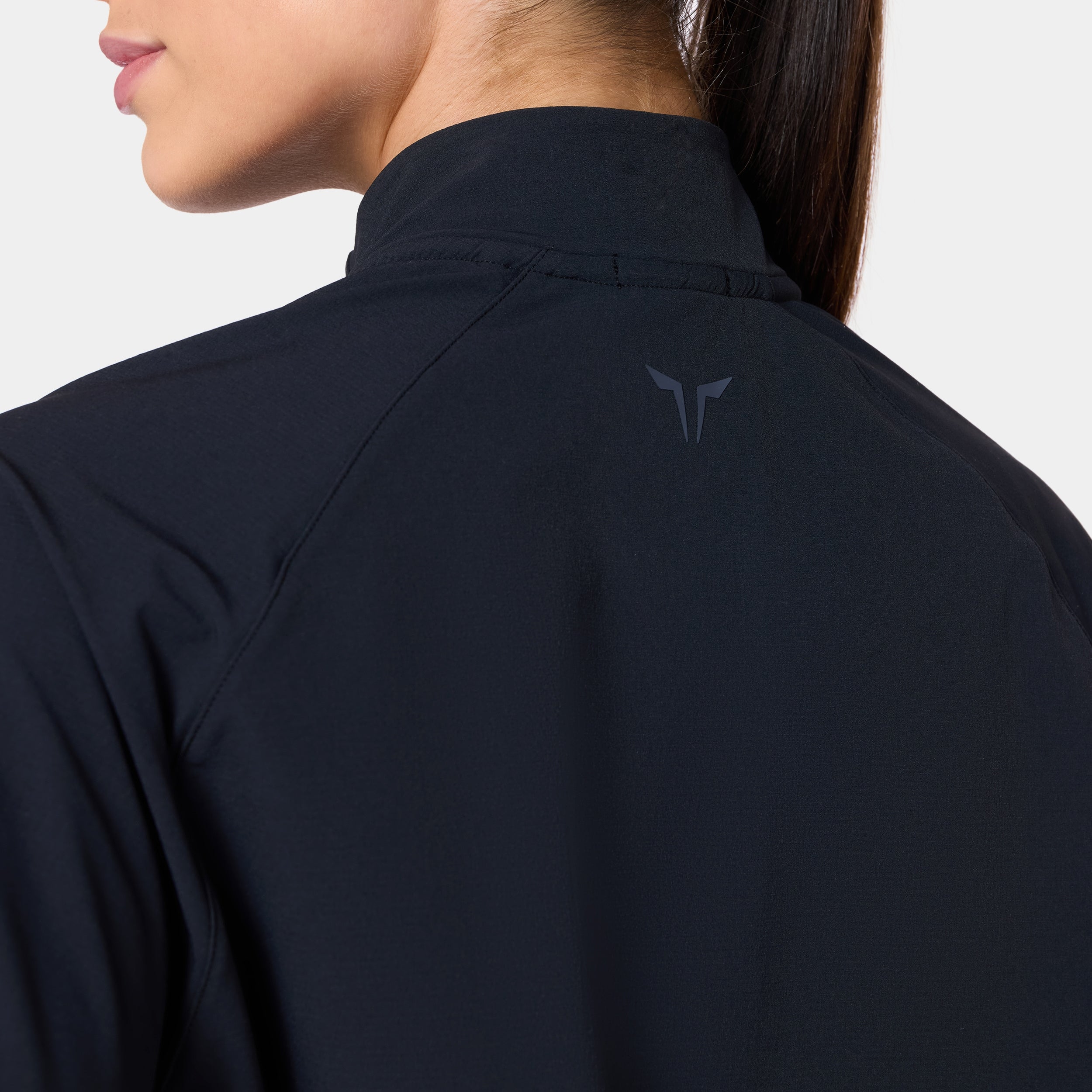 Grown-on front neckline for a smooth, clean finish Raglan long sleeves for easy movement Full PU-coated zip front closure for a sleek look Bonded bar tacks at the slip pocket opening for extra durability Exposed flat knit elastic detail at the cuff for a snug fit Icon logo in silicone heat transfer on the back neck Athletic fit Model Wearing Extra Small: Height 5'10" / 177 cm // Bust: 32" // Waist: 25.5" // Hips: 37.5"