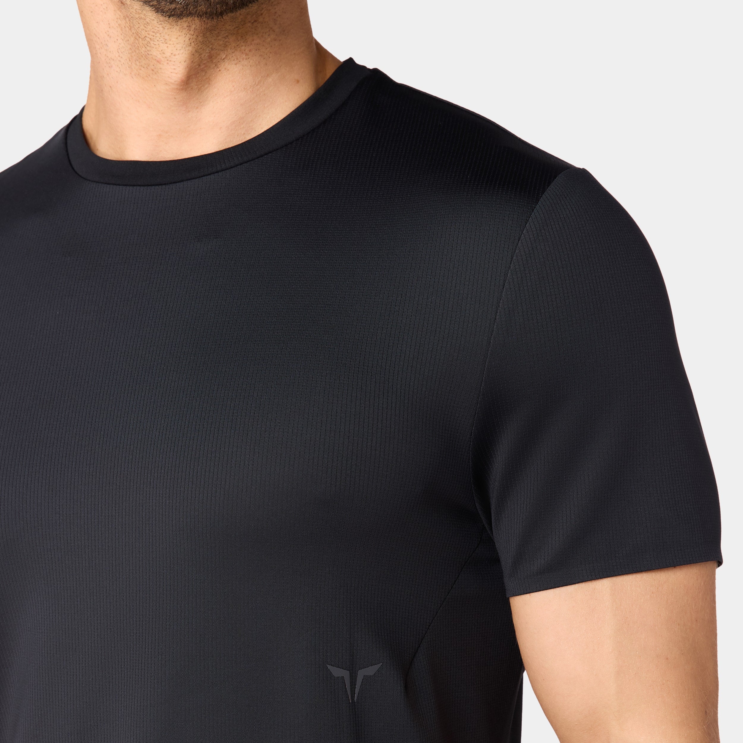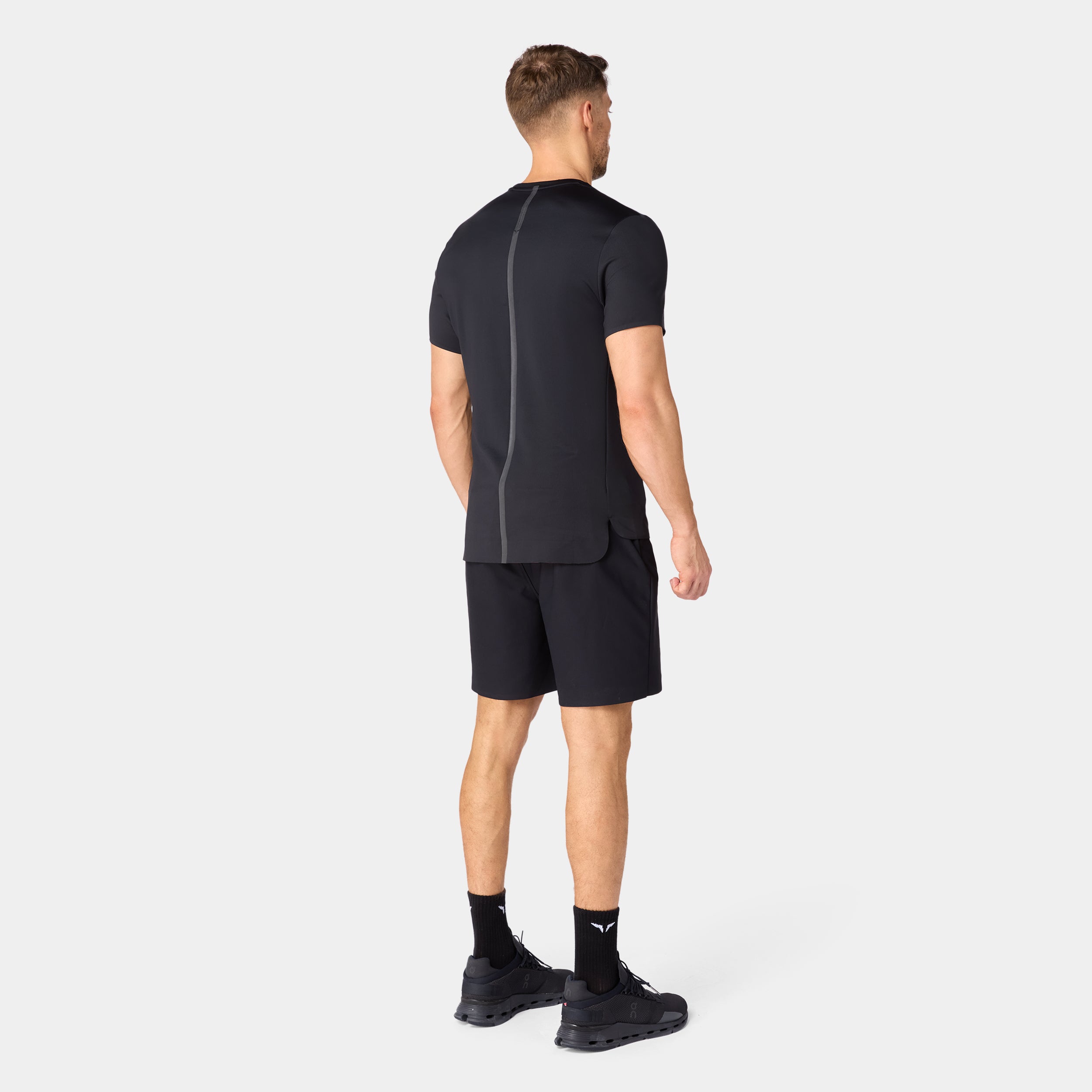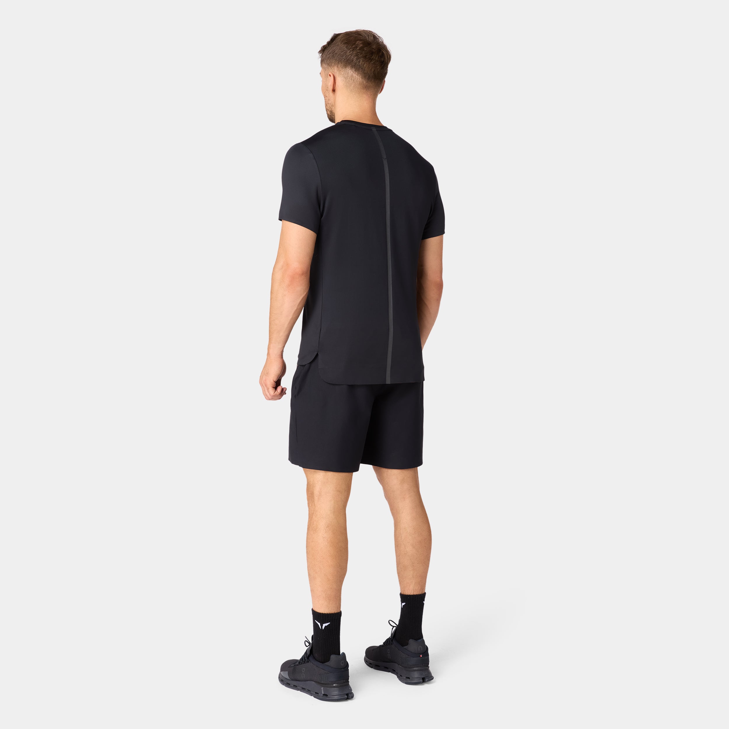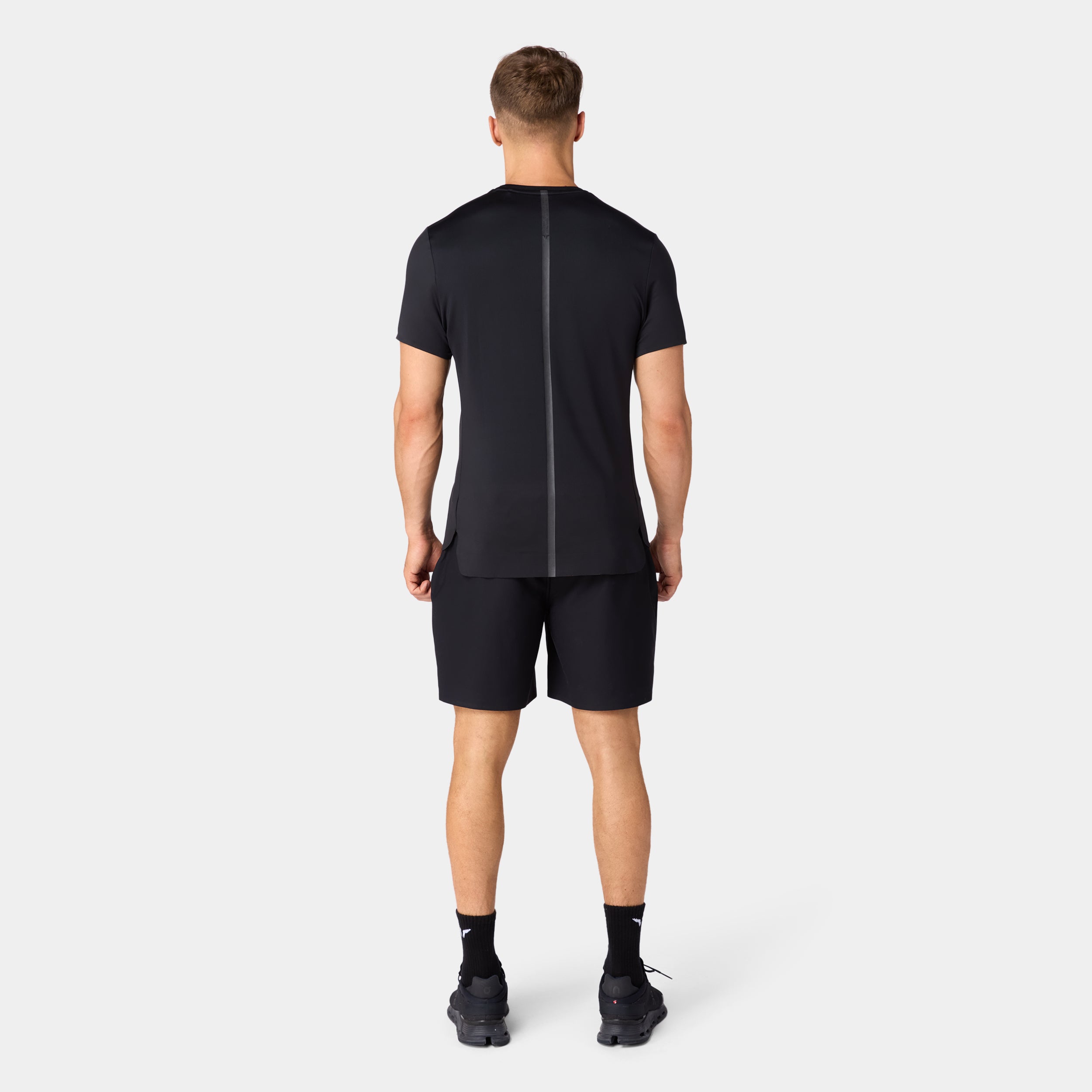 ACTDry® technology to keep you cool and dry Articulated chest panel for a structured fit Bonded short sleeves and hemline for a clean finish Bonded side vent for better movement Internal silicone gripper tape at the back hem to keep it in place Icon logo in reflective silicone heat transfer on the front left side Reflective rubber heat transfer graphic across the full back for visibility Athletic fit Model Wearing Medium: Height 6'1" / 186 cm // Chest: 38" // Waist: 36"