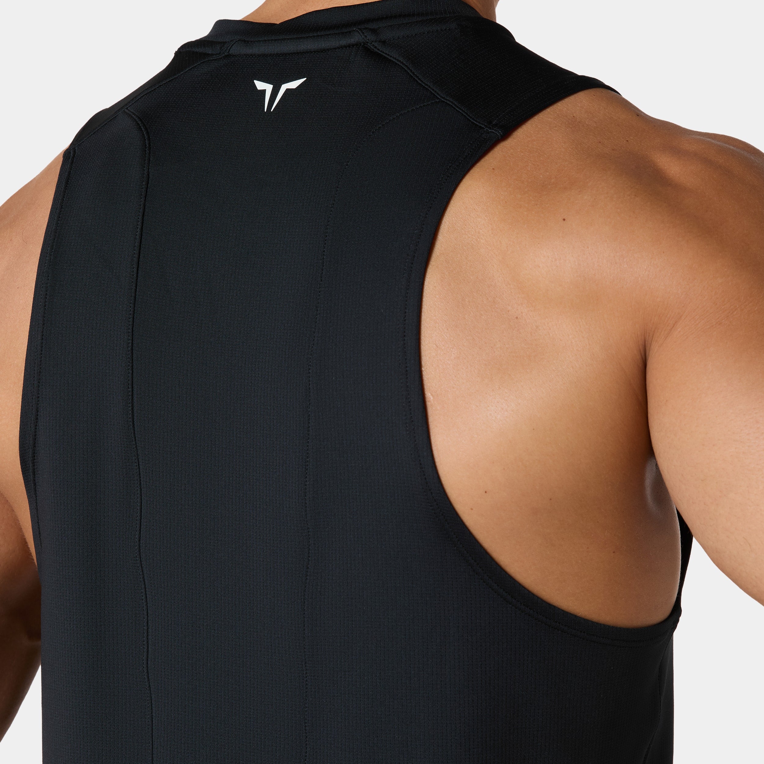 Self-fabric V-neckline with a wrap-over design for a clean, minimal look Forward shoulder seams for a flattering fit Muscle back design with panel detailing for added structure Back neck buggy for extra comfort Dropped back hem for better coverage ACTDRY® technology to keep you cool and dry Icon logo placed on the back neck Laser-perforated wordmark logo on the front chest for a subtle finish Athletic fit Model Wearing Large: Height 6'2" / 187 cm // Chest: 44" // Waist: 32.5"