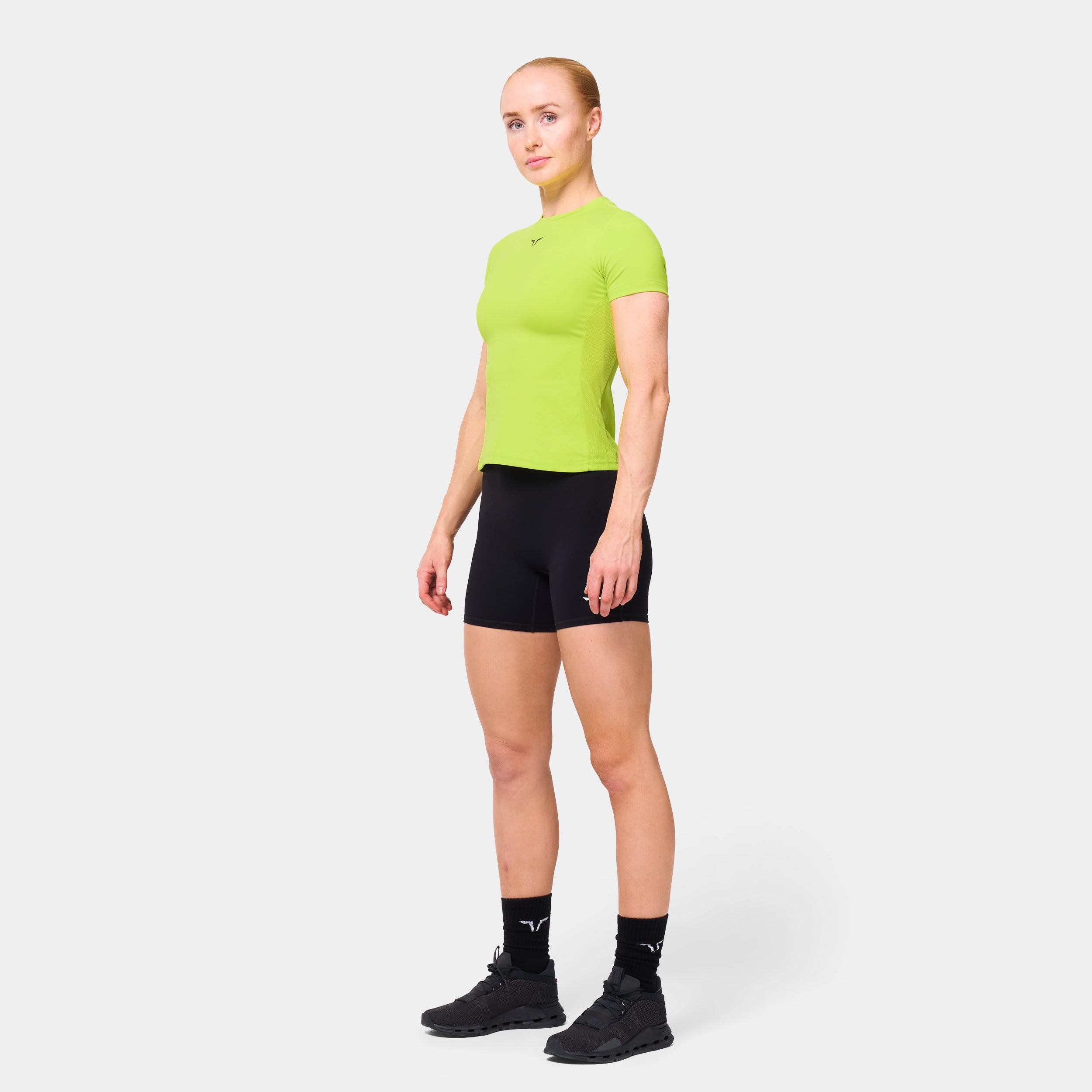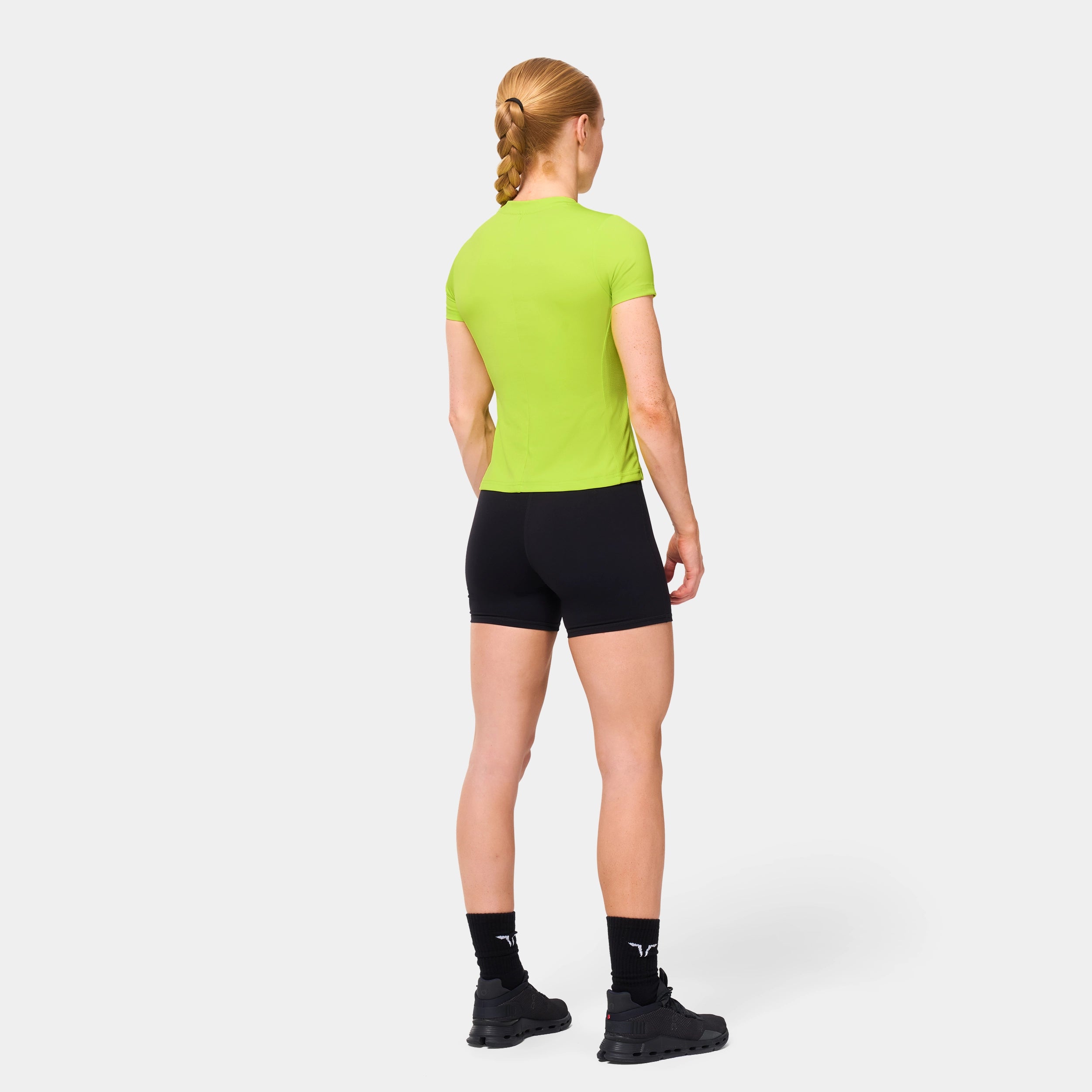 Ultra comfortable Soft hand feel 4-way stretch High hip Crew neckline Short set-in sleeve Side seam insert with mock eyelet fabric for increased breathability and mobility Athletic fit Model Wearing Extra Small: Height 5'6" / 167 cm // Bust: 33.5″ // Waist: 26″ // Hips: 35.5″ Garment measurements: Chest width (bust): XS - 65.5 cm Chest width (bust): S - 72 cm Chest width (bust): M - 78cm Chest width (bust): L - 85 cm Chest width (bust): XL -91 cm Body length: XS - 52 cm Body length: S - 53 cm Body length: M - 54 cm Body length: L - 55 cm Body length: XL - 56 cm