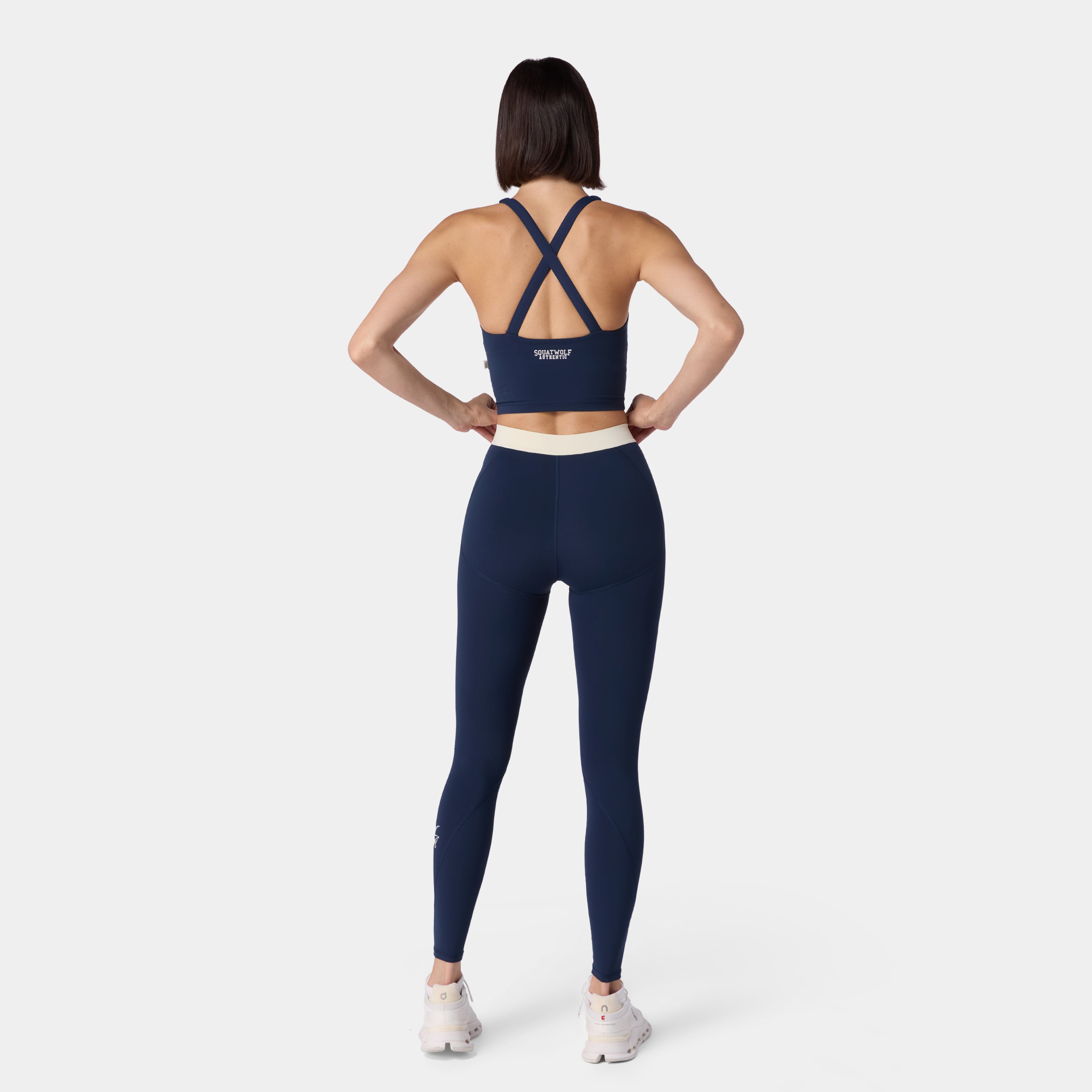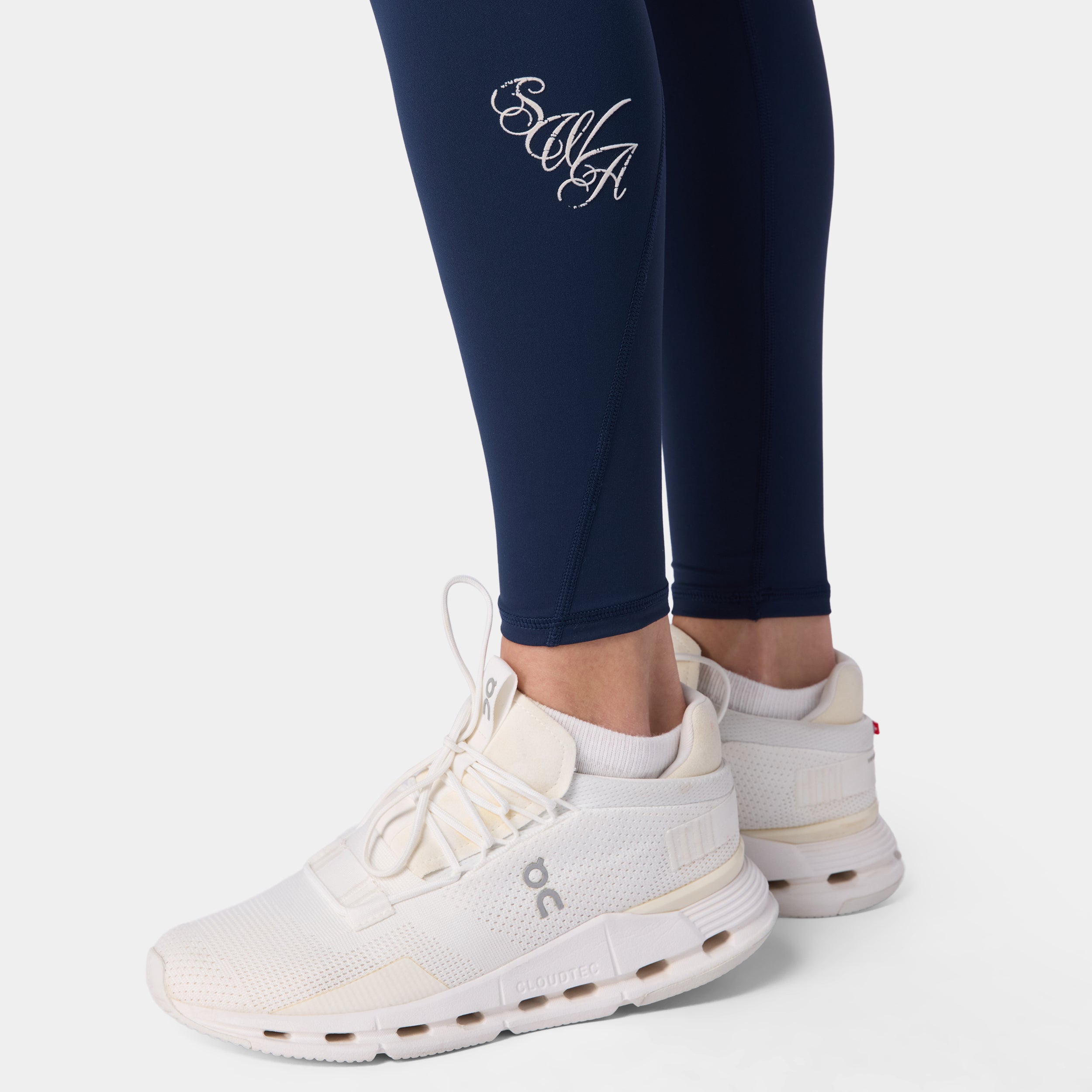 Bonded waistband for a smooth, secure fit Baby flatlock contour seams for a sculpted look and reduced friction Built-in gusset for added comfort and flexibility Flatlock hem for a clean, durable finish SWA script distressed flock print on the back left calf Athletic fit Model wearing Extra Small: Height 5'10" / 177 cm // Bust: 32" // Waist: 25" // Hips: 38" Inseam length for all sizes: 27"