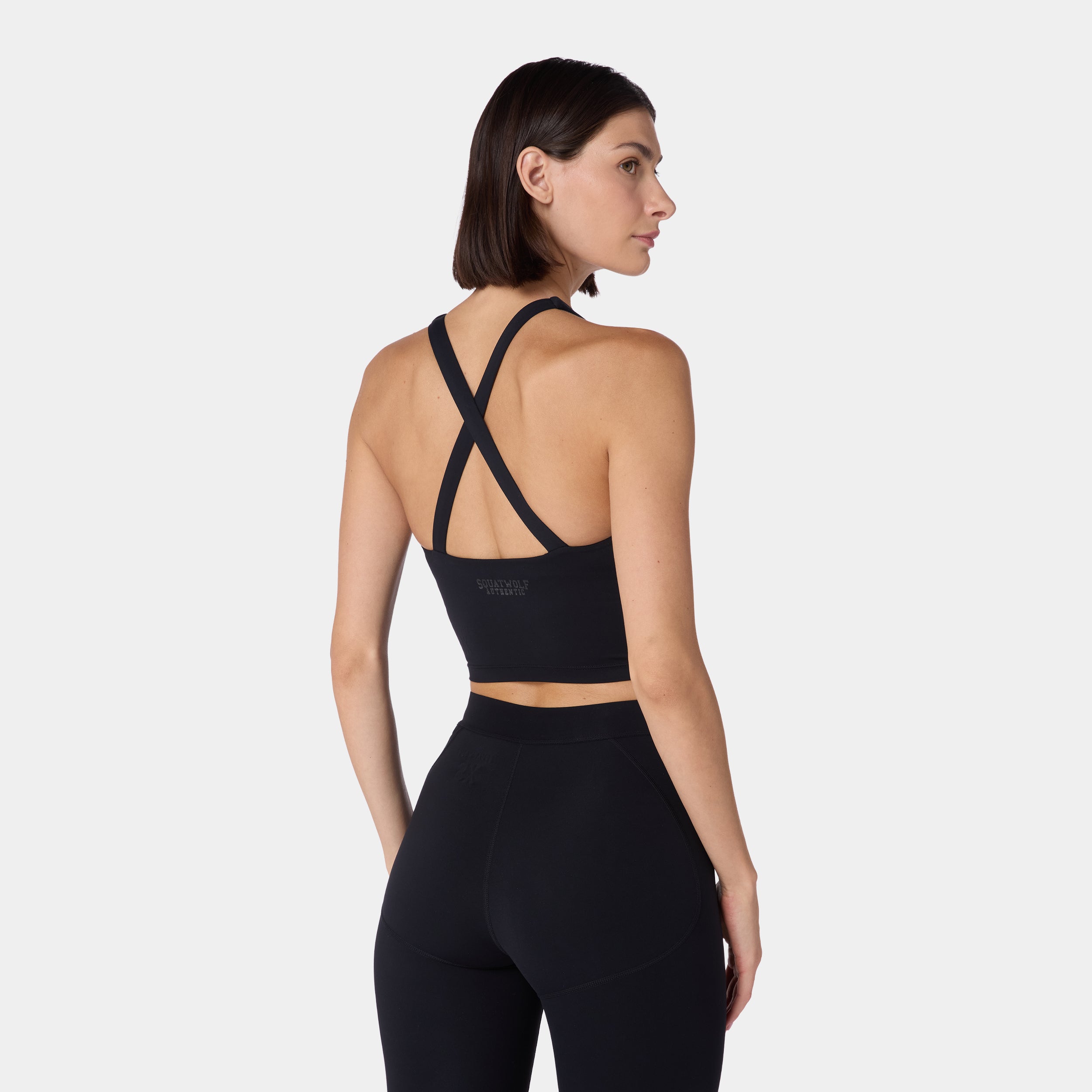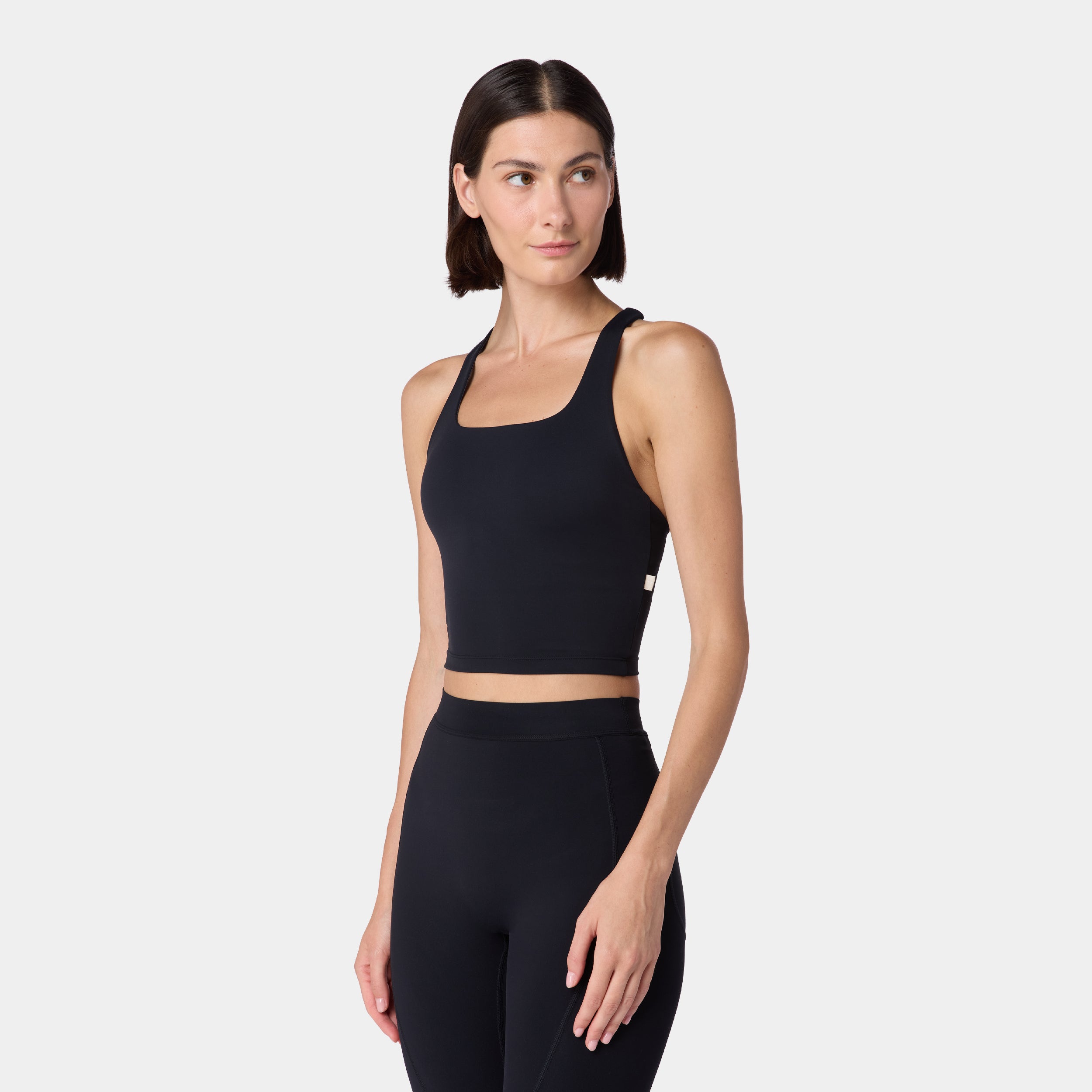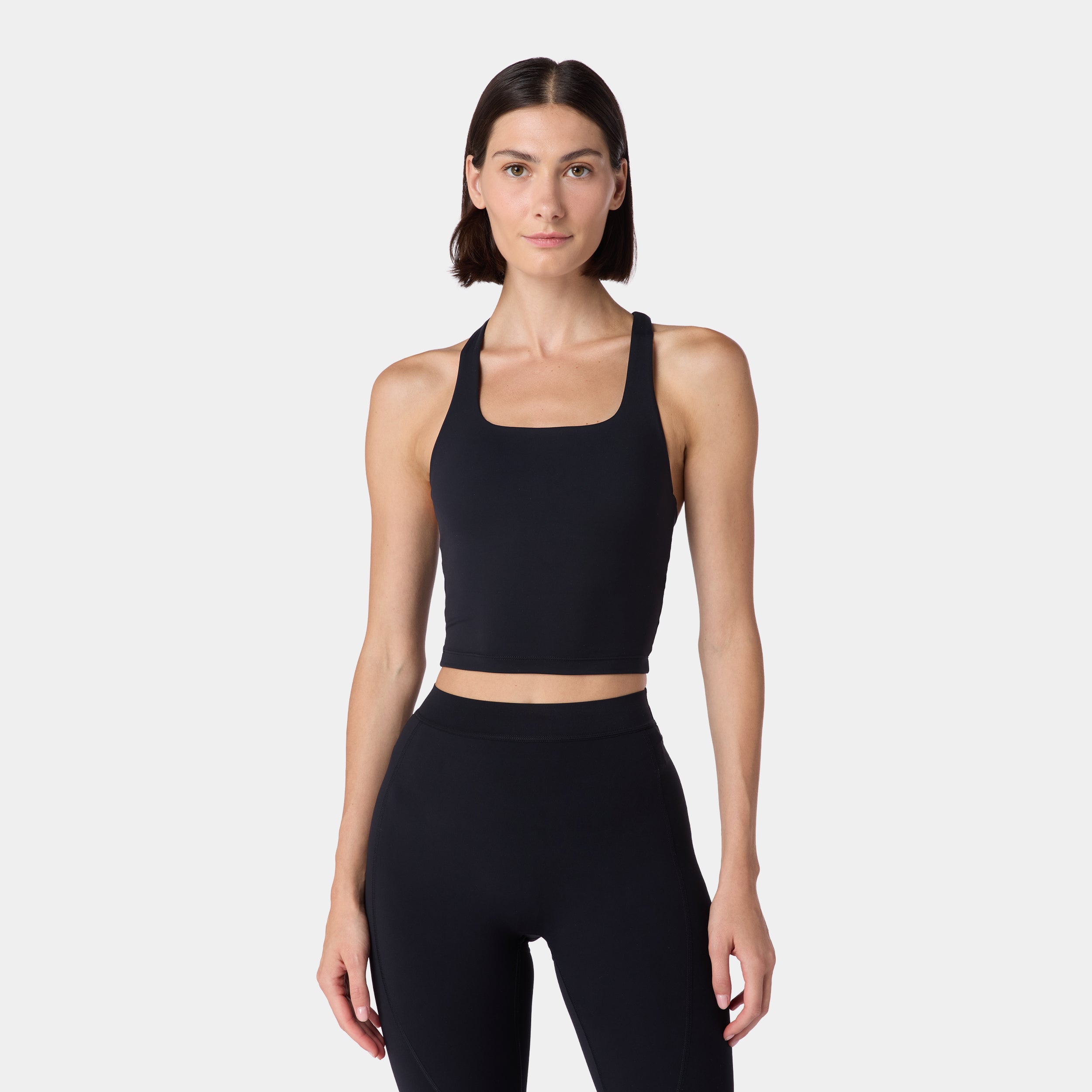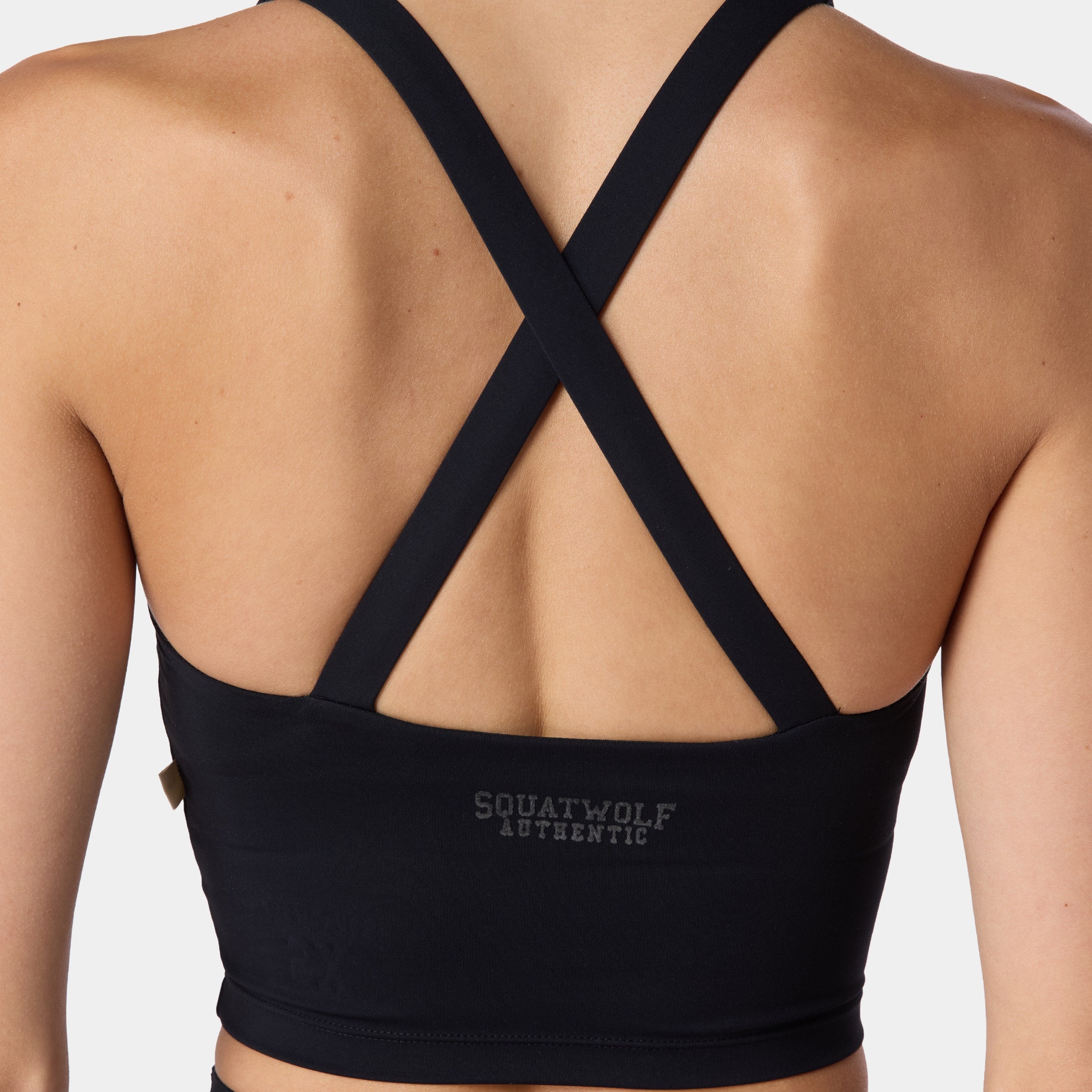 Square neckline for a clean, structured look Bagged-out neckline and armholes for a smooth finish Internal shelf bra for built-in support ACTDry® removable cups for comfort and moisture control Cross-back detail for added style and flexibility SQUATWOLF Authentic distressed flock print on the back Signature Icon side tab on the left side seam Mid coverage Model wearing Extra Small: Height 5'10" / 177 cm // Bust: 32" // Waist: 25" // Hips: 38"