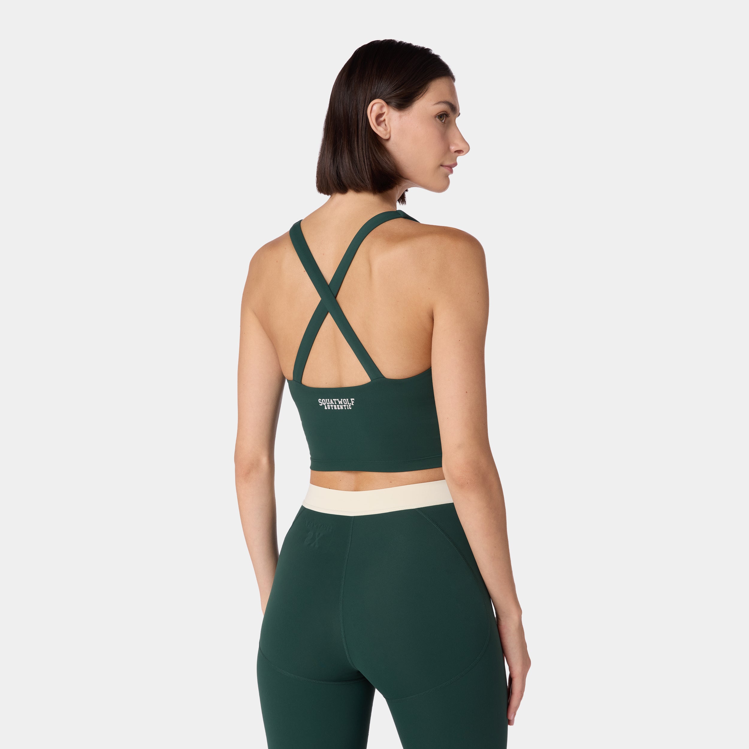 Square neckline for a clean, structured look Bagged-out neckline and armholes for a smooth finish Internal shelf bra for built-in support ACTDry® removable cups for comfort and moisture control Cross-back detail for added style and flexibility SQUATWOLF Authentic distressed flock print on the back Signature Icon side tab on the left side seam Mid coverage Model wearing Extra Small: Height 5'10" / 177 cm // Bust: 32" // Waist: 25" // Hips: 38"