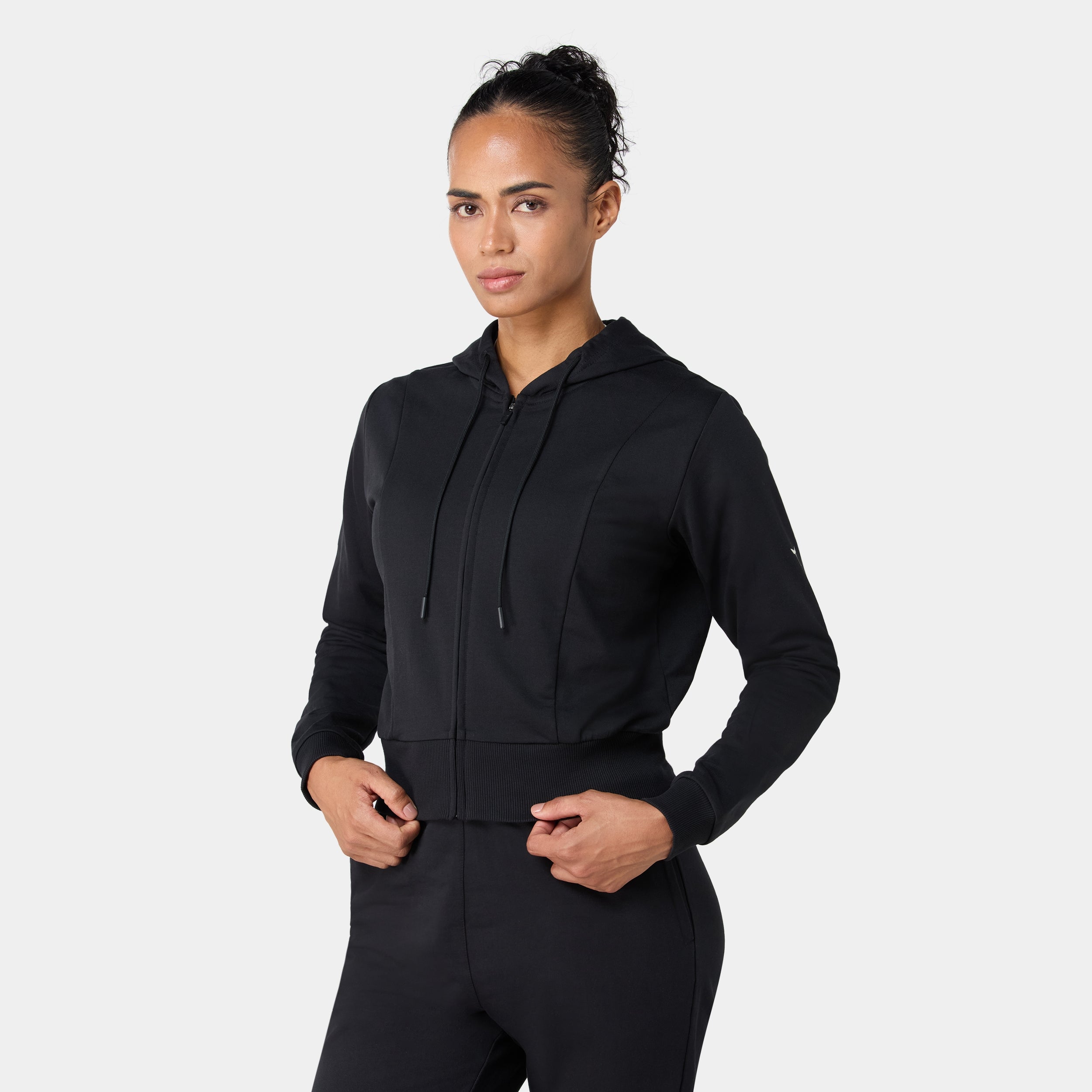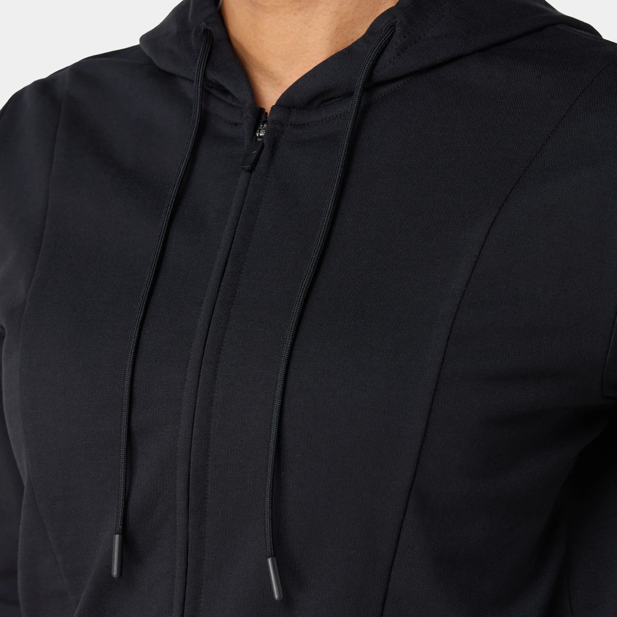 Three-piece hood with adjustable drawcord Full zip front with panel detailing for structure Set-in sleeves and ribbed hem and cuffs Soft loopback fabric with a smooth hand-feel Icon logo on left sleeve Athletic fit Model Wearing Small: Height 5'7" / 170.18 cm // Bust: 34" // Waist: 31" // Hips: 40"