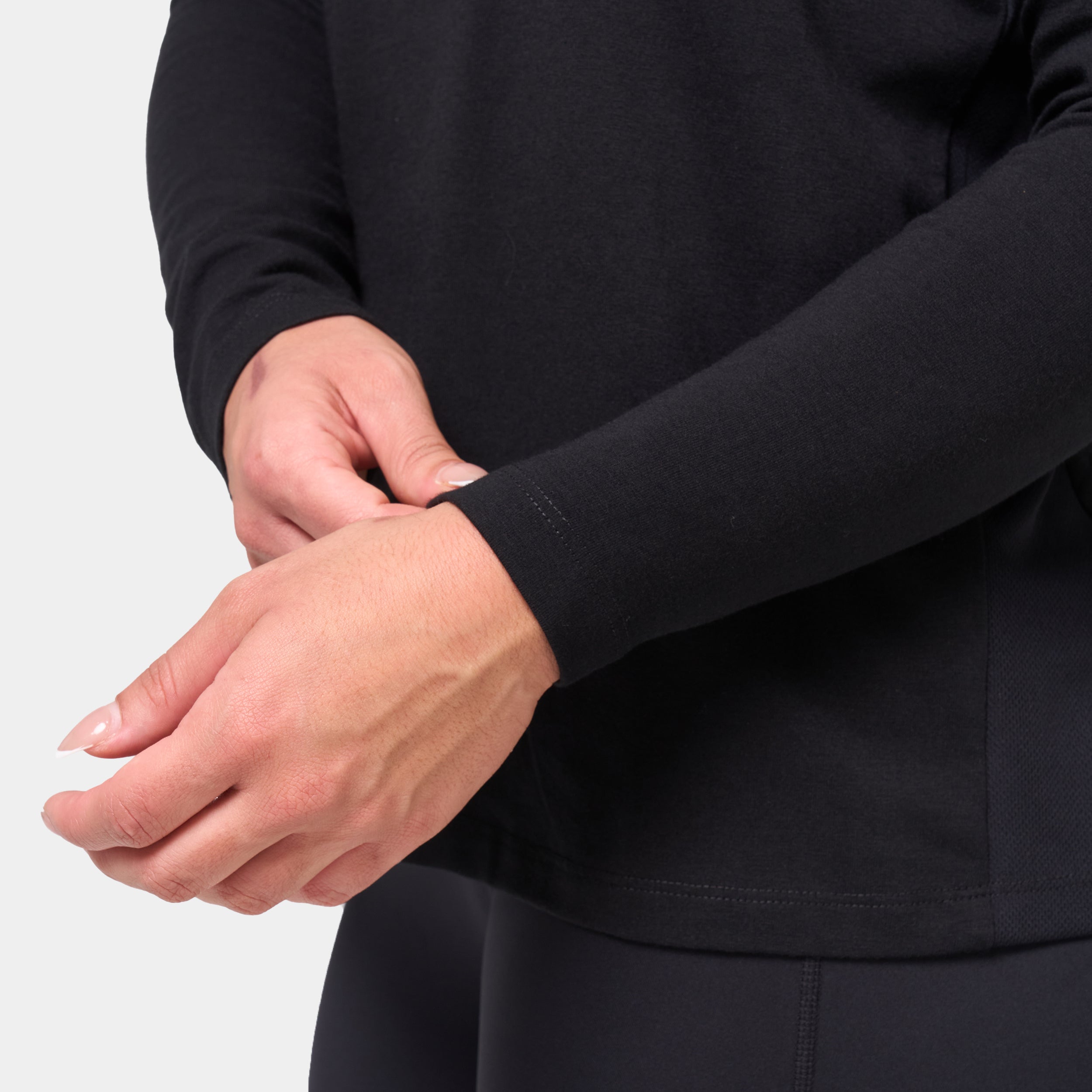 Breathable 2-way stretch Fabric feels soft against the skin Crew neckline Full length set-in sleeve Targetted panelling design on sleeve and bodice for breathability Regular fit Model Wearing Medium: Height 5'6" / 169 cm // Bust: 36.5" // Waist: 31.5" // Hips: 37.5" Garment measurements: Chest width (bust): XS - 95 cm Chest width (bust): S - 101.5 cm Chest width (bust): M - 108 cm Chest width (bust): L - 114.5 cm Chest width (bust): XL - 121 cm Body length from shoulder to hem: XS - 60.5 cm S - 61.5 cm M - 62.5 cm L - 63.5 cm XL - 64.5 cm