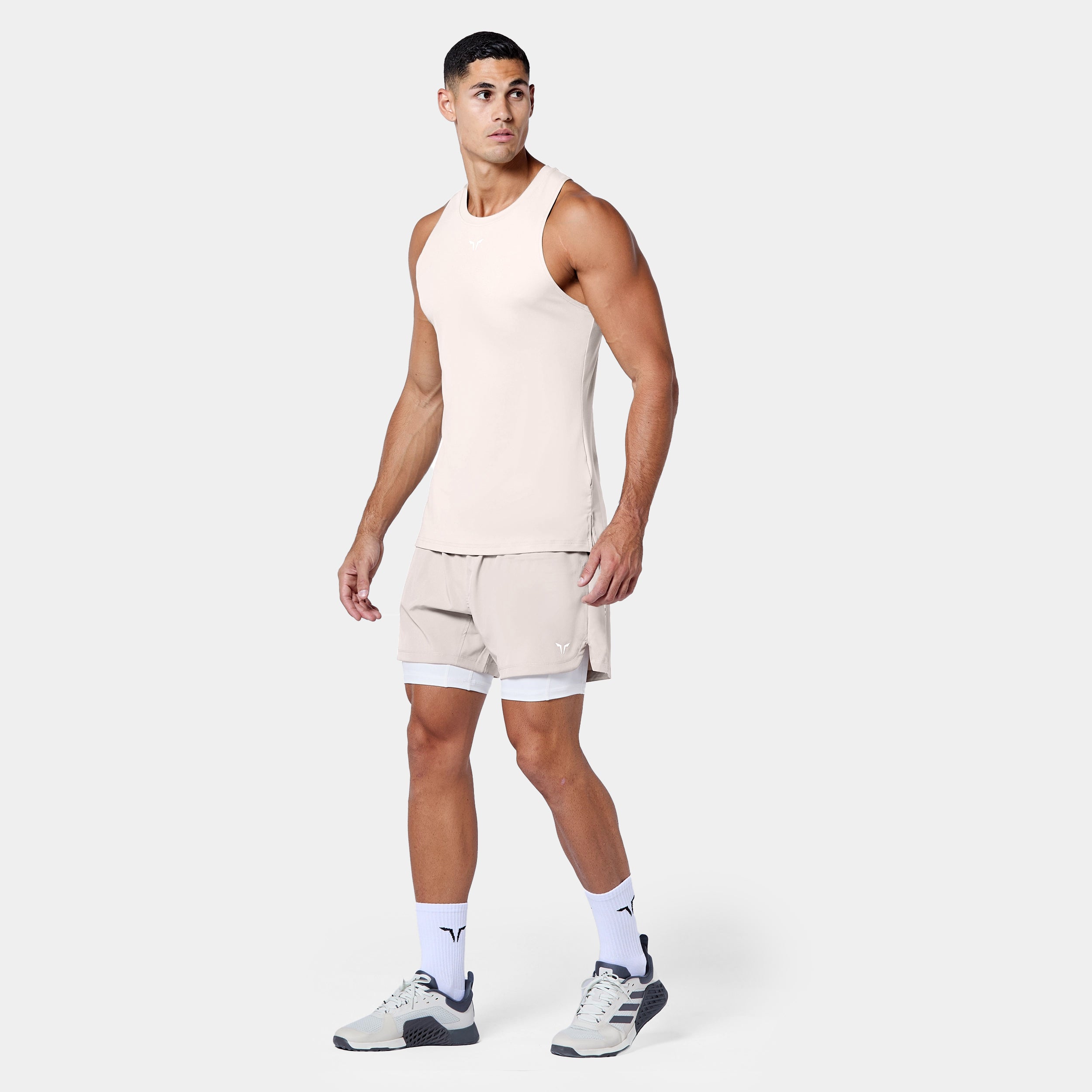 Elasticated waistband with mesh lining drawcord finish Side pocket details Yoke with concealed pockets and towel loop on the back Gusset for extra flexibility Icon logo on front left leg Wordmark logo on back left leg Side hem split for better movement Regular fit Model Wearing Medium: Height 6'2" / 190 cm // Chest: 41.5″ // Waist: 33″ Outer short inseam: 5" Inner short inseam: 6"