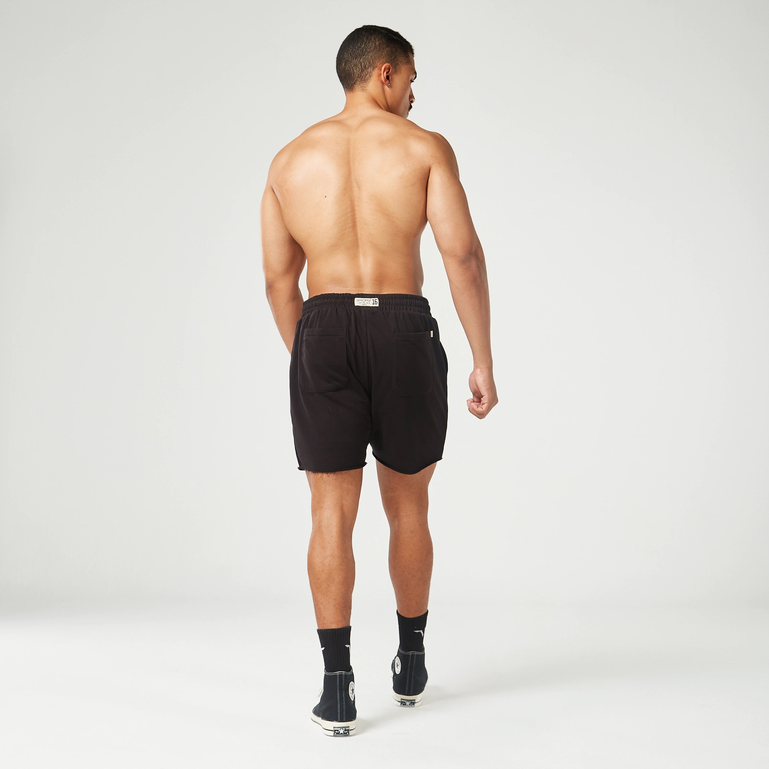 2-way stretch Moisture-wicking Soft hand feel Washed finish Elasticated waistband with drawcord for adjustability Side & patched back pockets for storage Raw edge hem to give vintage look and feel lock distressed logo detail at the front leg Jock tag detail to the CB Regular Fit Model Wearing Extra Large: Height 6’0” / 184 cm // Chest: 43” // Waist: 33” Garment measurements: Waist width: S - 72 cm Waist width: M - 77 cm Waist width: L - 82 cm Waist width: XL - 87 cm Waist width: XXL - 92 cm Inseam length on outer shorts for all sizes: 12.5 cm Inseam length on inner shorts for all sizes: 9 cm