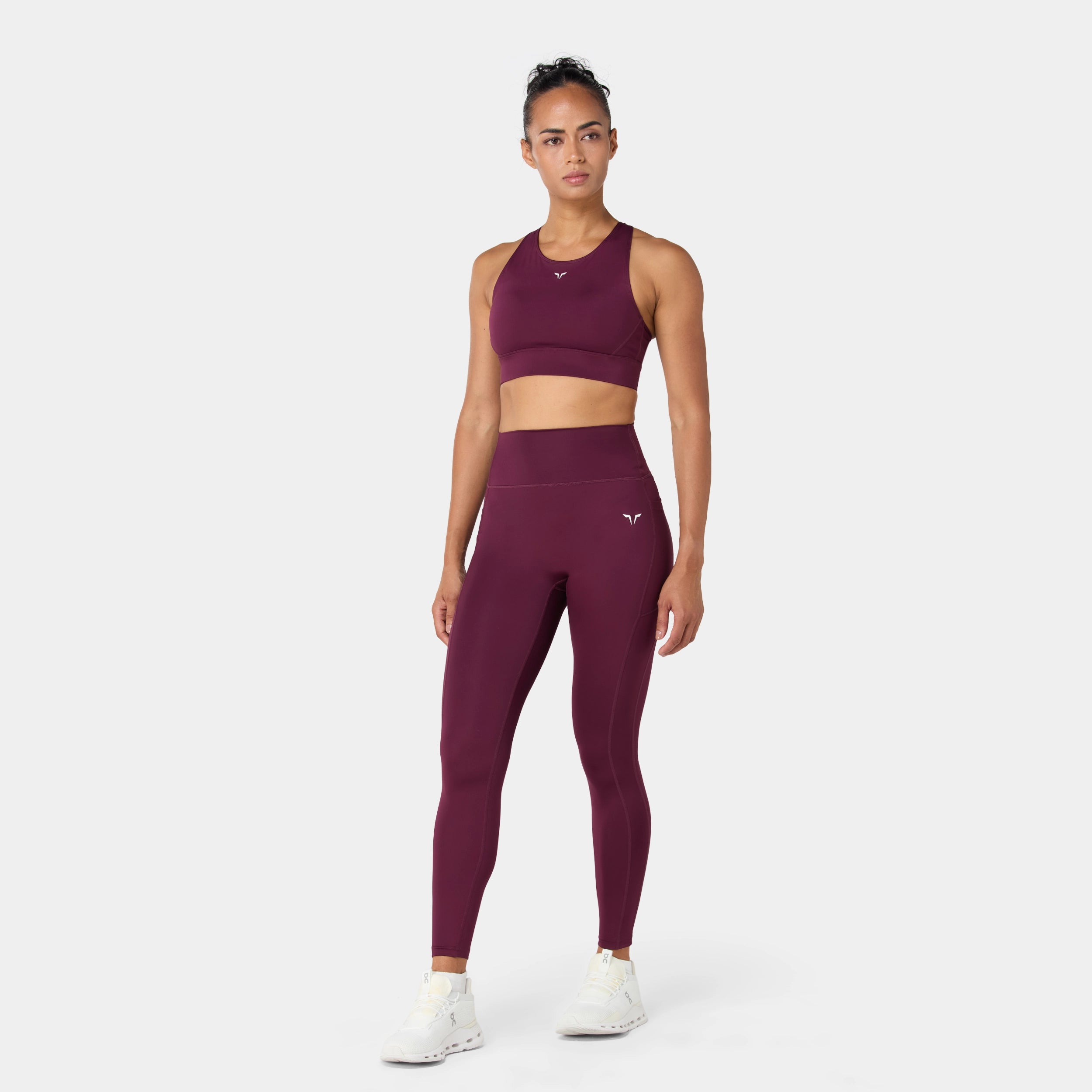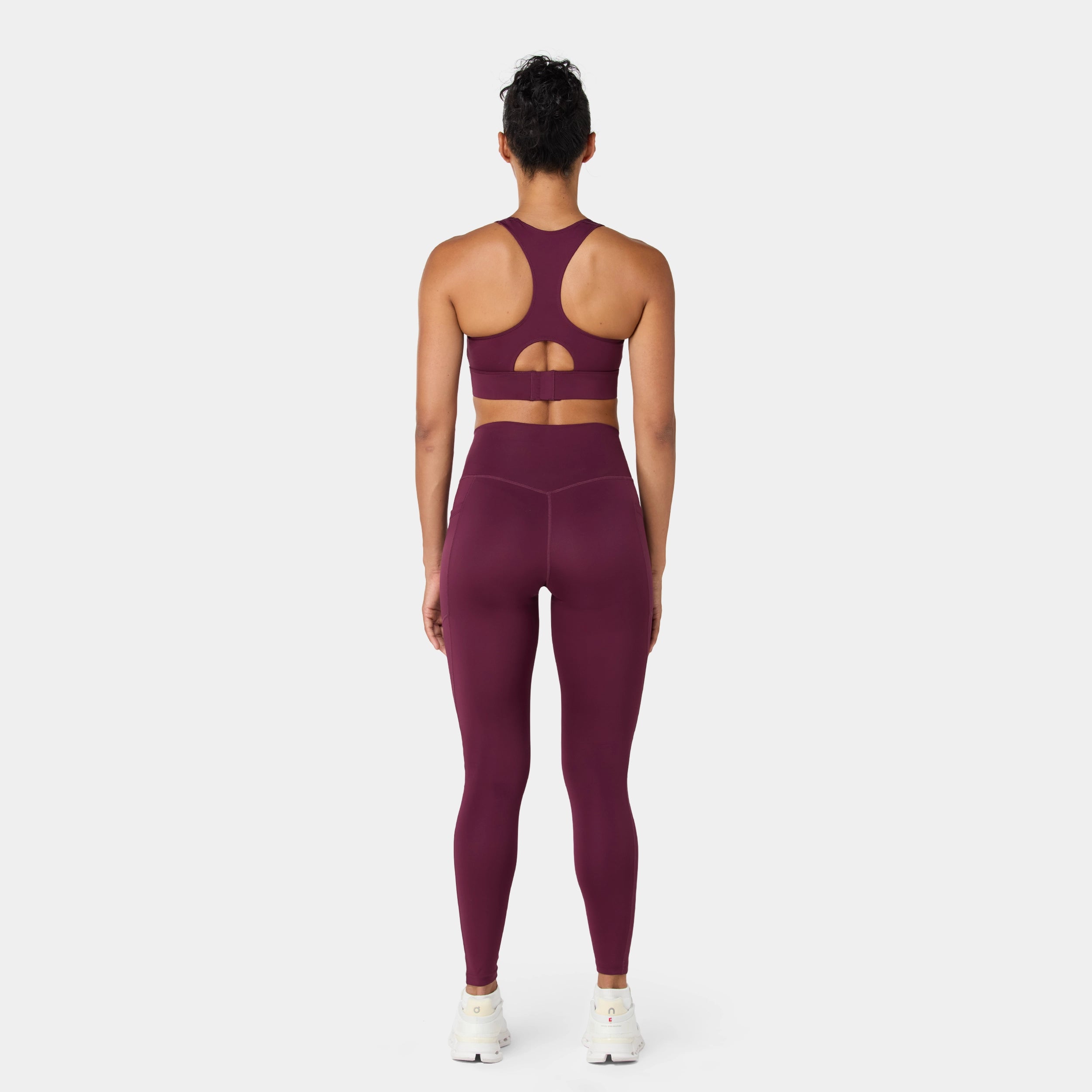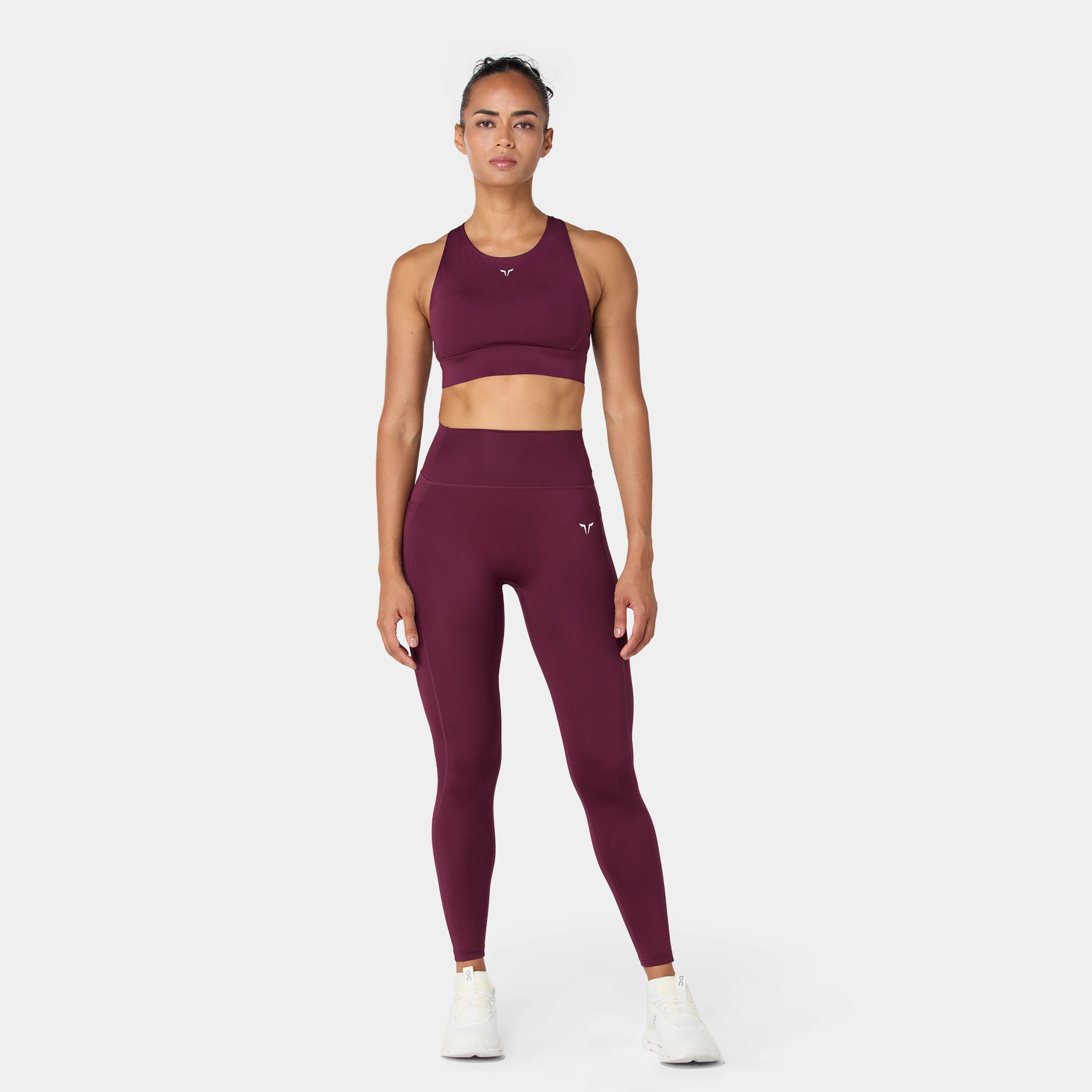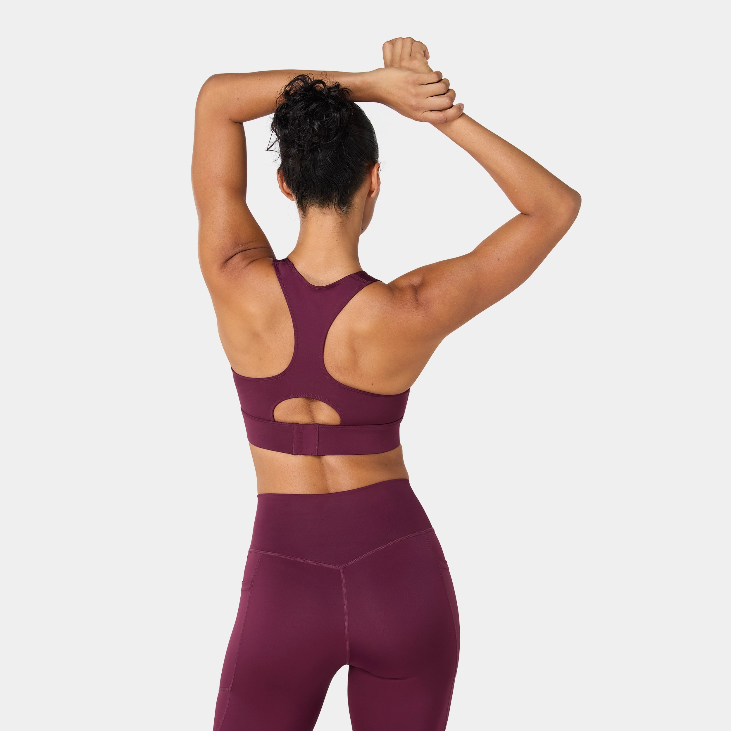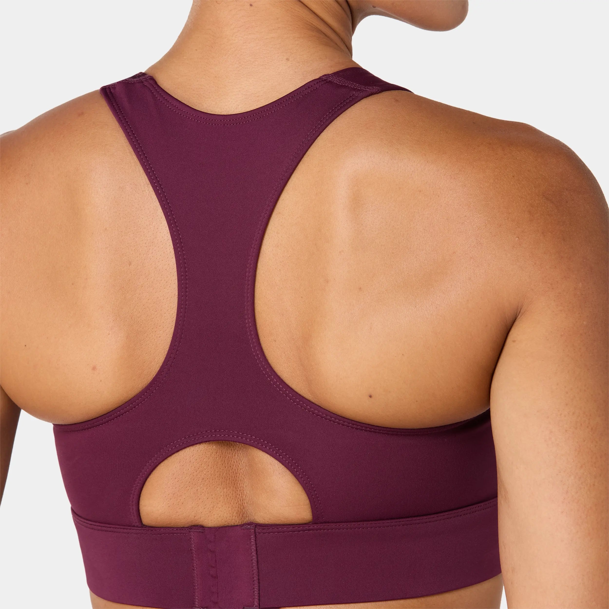 Crew neckline Removable cups for customizable comfort Sculpted muscle-back design Keyhole shape with back closure at bust band Icon logo on front chest Designed for B/C cups High coverage Model Wearing Small: Height 5'7" / 170.18 cm // Bust: 34" // Waist: 31" // Hips: 40"