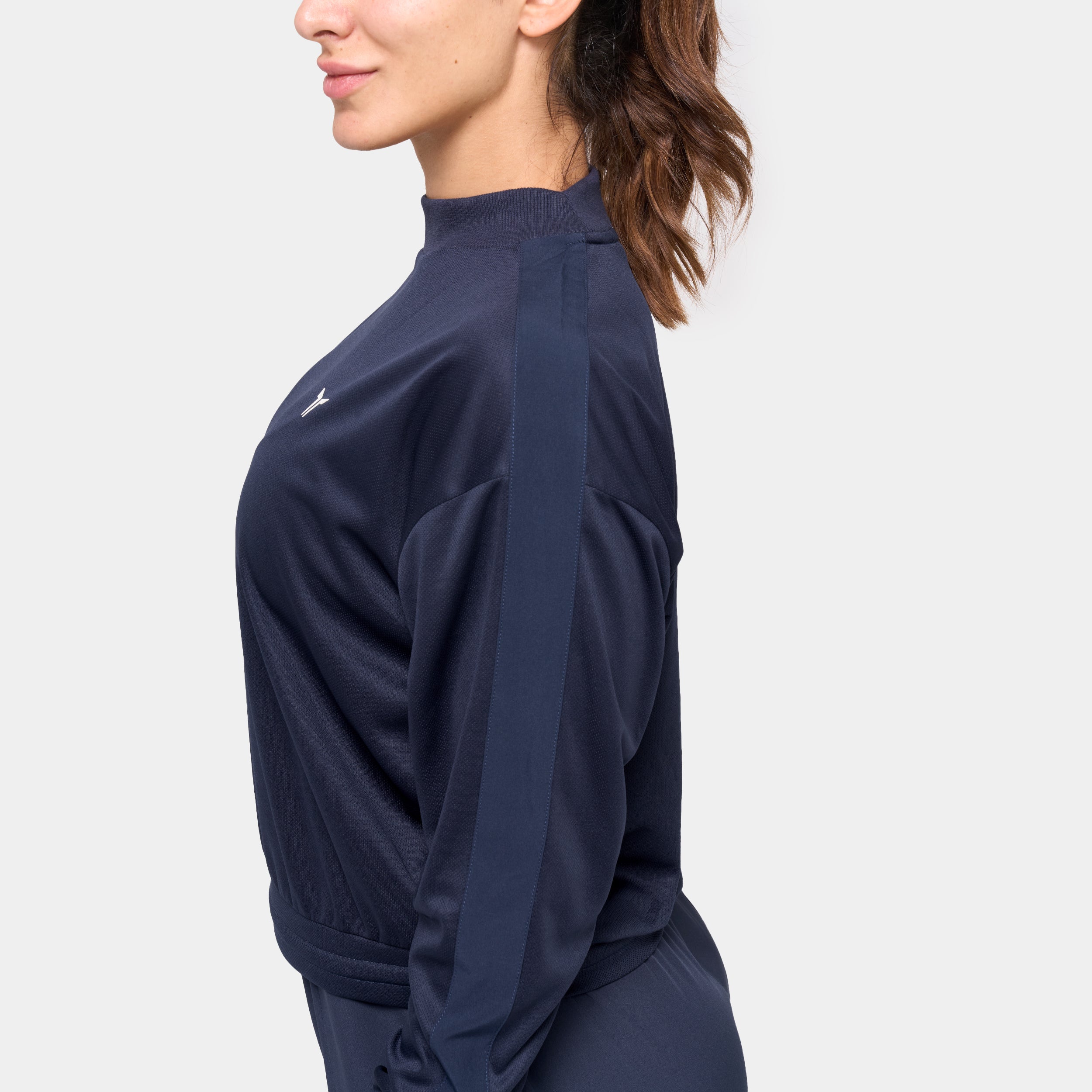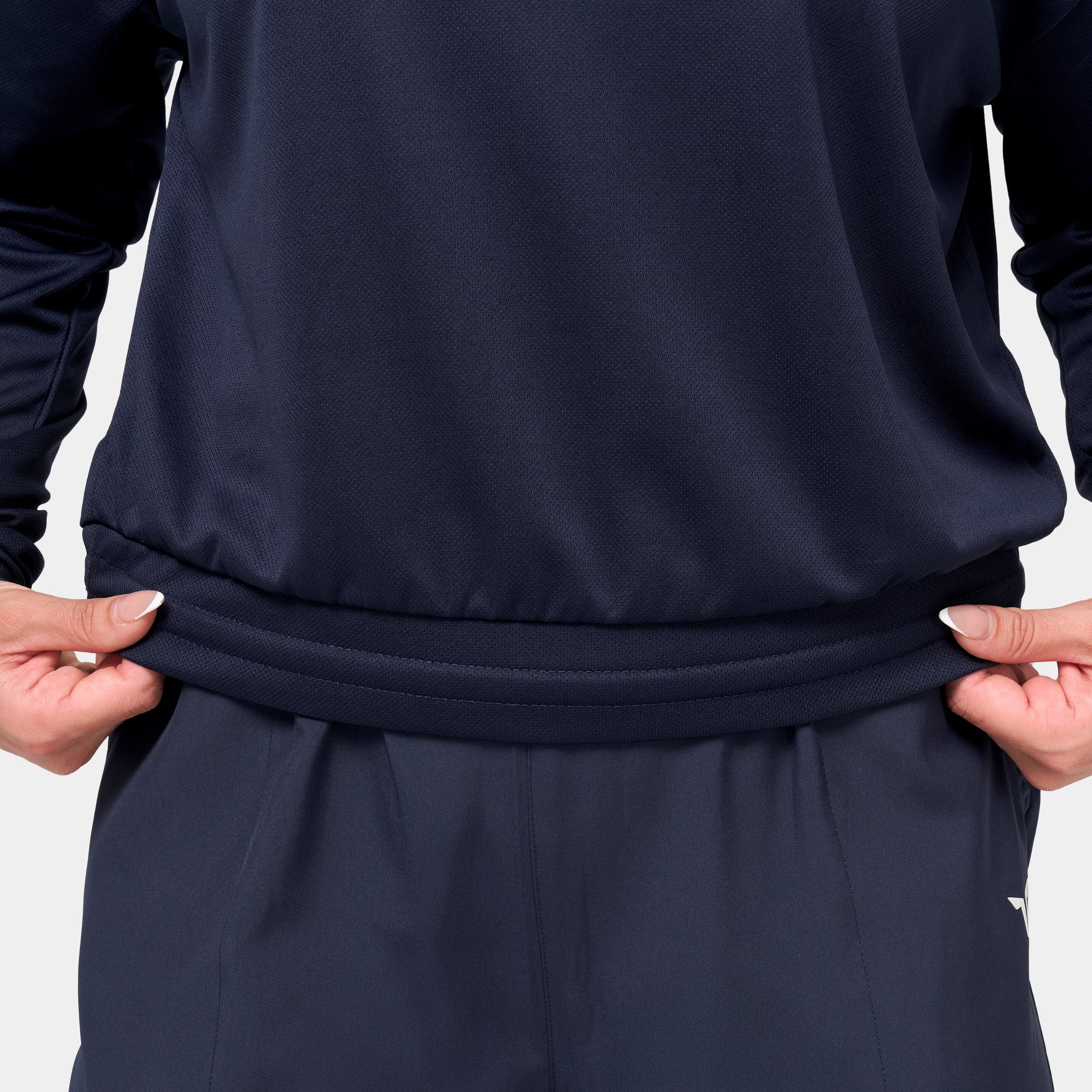 Lightweight Fabric feels soft against the skin Natural stretch Ribbed neckline and cuff Set-in dropped shoulder Long sleeves Woven sleeve panel down shoulder to cuff Adjustable hem with channelled internal drawcord Regular fit Model Wearing Medium: Height 5'6" / 169 cm // Bust: 36.5" // Waist: 31.5" // Hips: 37.5" Garment measurements: Chest width: XS - 103 cm Chest width: S - 109 cm Chest width: M - 115.5 cm Chest width: L - 122 cm Chest width: XL - 128 cm Front body length from side neck point to hem: XS - 53.5 cm S - 54.5 cm M - 55.5 cm L - 56.5 cm XL - 57.5 cm