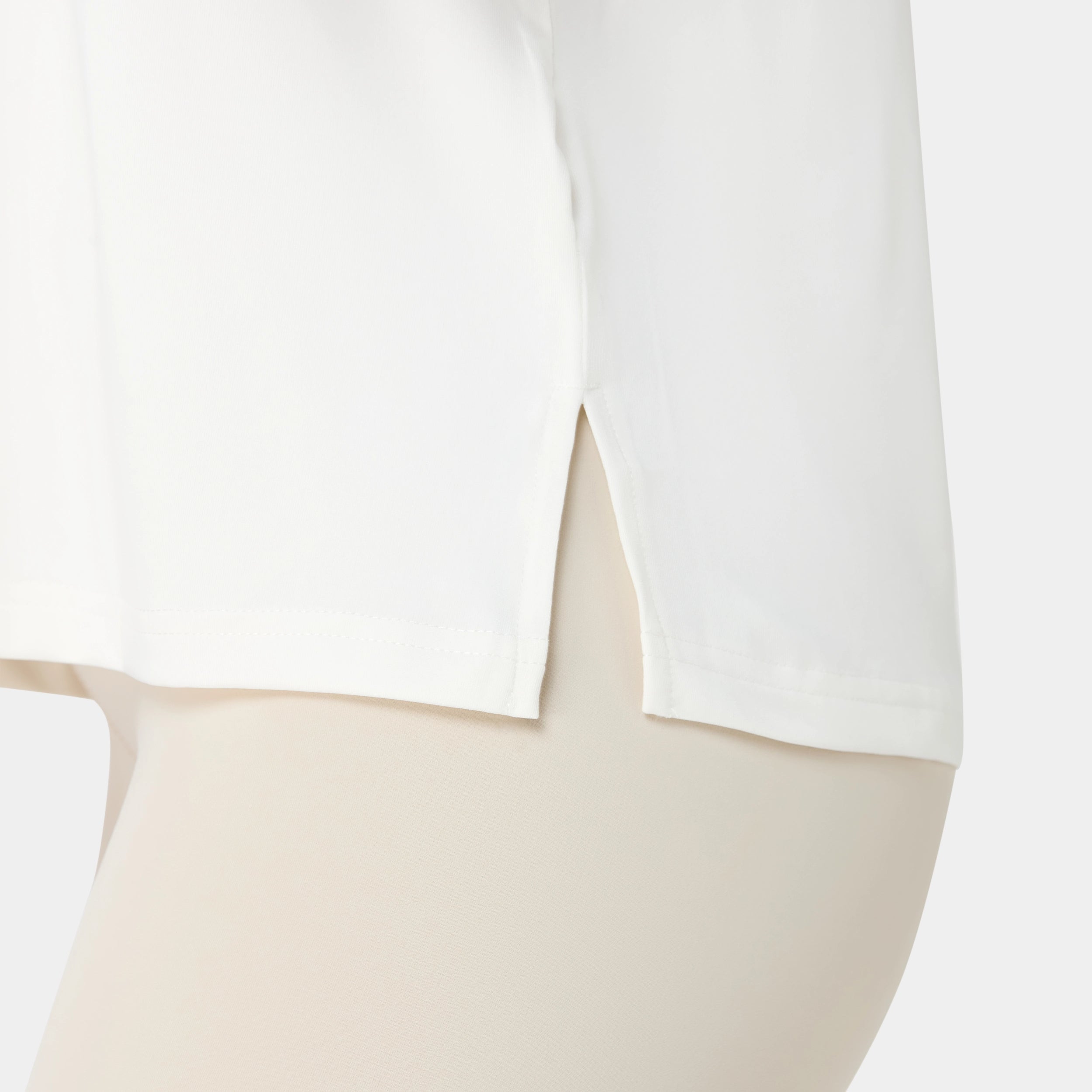 Ribbed binding for a clean, structured finish Crew neckline Parallelogram-shaped side seam insert with mock eyelet fabric Side split hem for ease of movement Icon logo at front chest Regular fit Model Wearing Small: Height 5'7" / 176 cm // Bust: 34" // Waist: 31" // Hips: 40"
