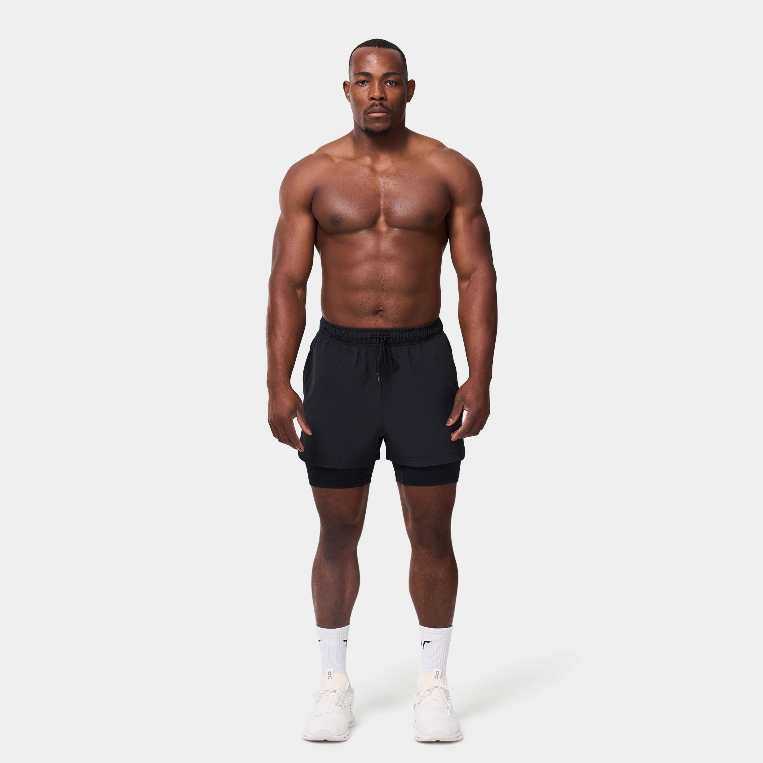 Elasticated waistband with a drawcord for an adjustable fit Side seam pockets with concealed zips for secure storage Inner shorts with a slip pocket on the thigh for added convenience Icon logo on the front left hem Regular fit Model Wearing Medium: Height 5'9" / 175 cm // Chest: 39" // Waist: 32" Inseam length for outer short: 3" Inseam length for inner short: 5"