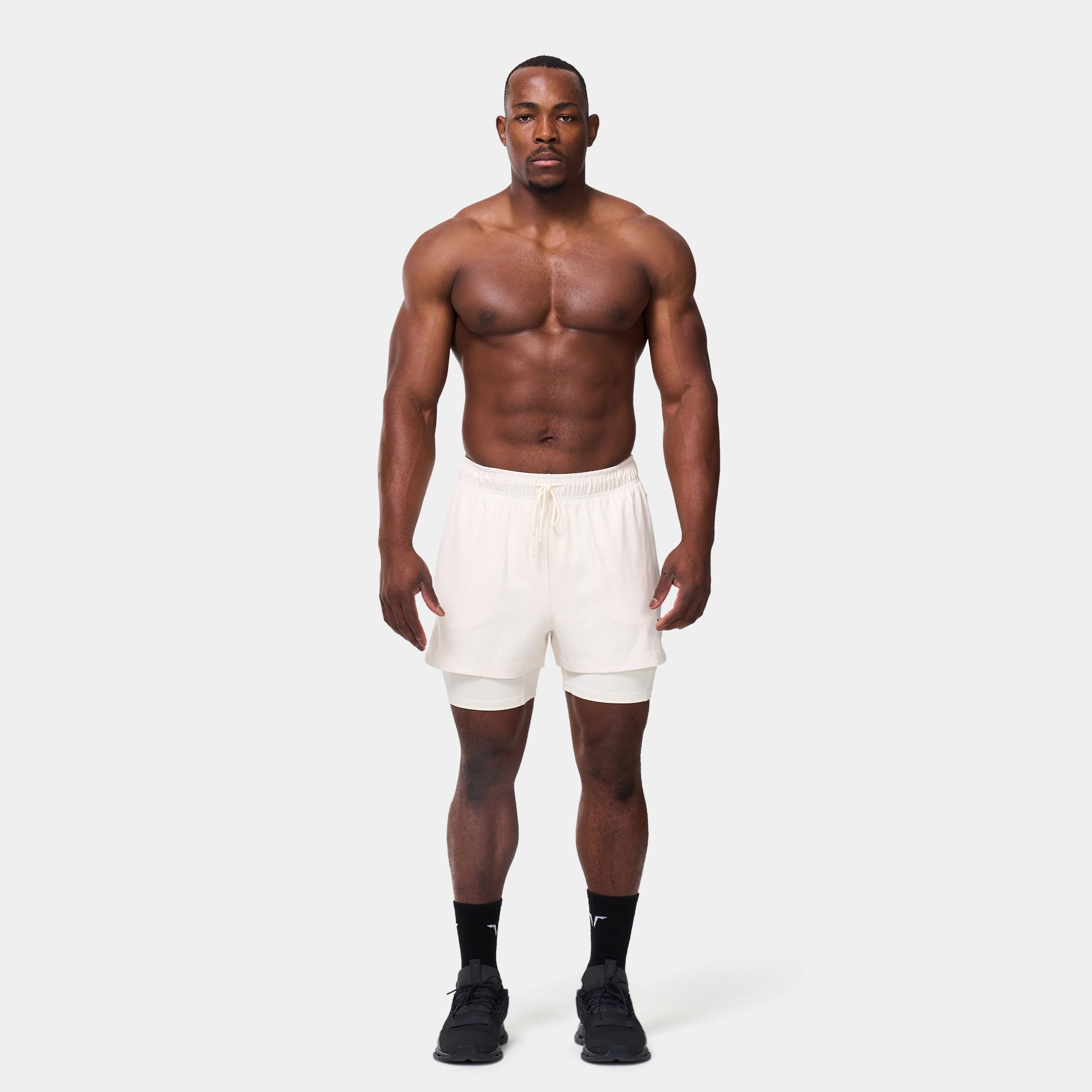Elasticated waistband with a drawcord for an adjustable fit Side seam pockets with concealed zips for secure storage Inner shorts with a slip pocket on the thigh for added convenience Icon logo on the front left hem Regular fit Model Wearing Medium: Height 5'9" / 175 cm // Chest: 39" // Waist: 32" Inseam length for outer short: 3" Inseam length for inner short: 5"