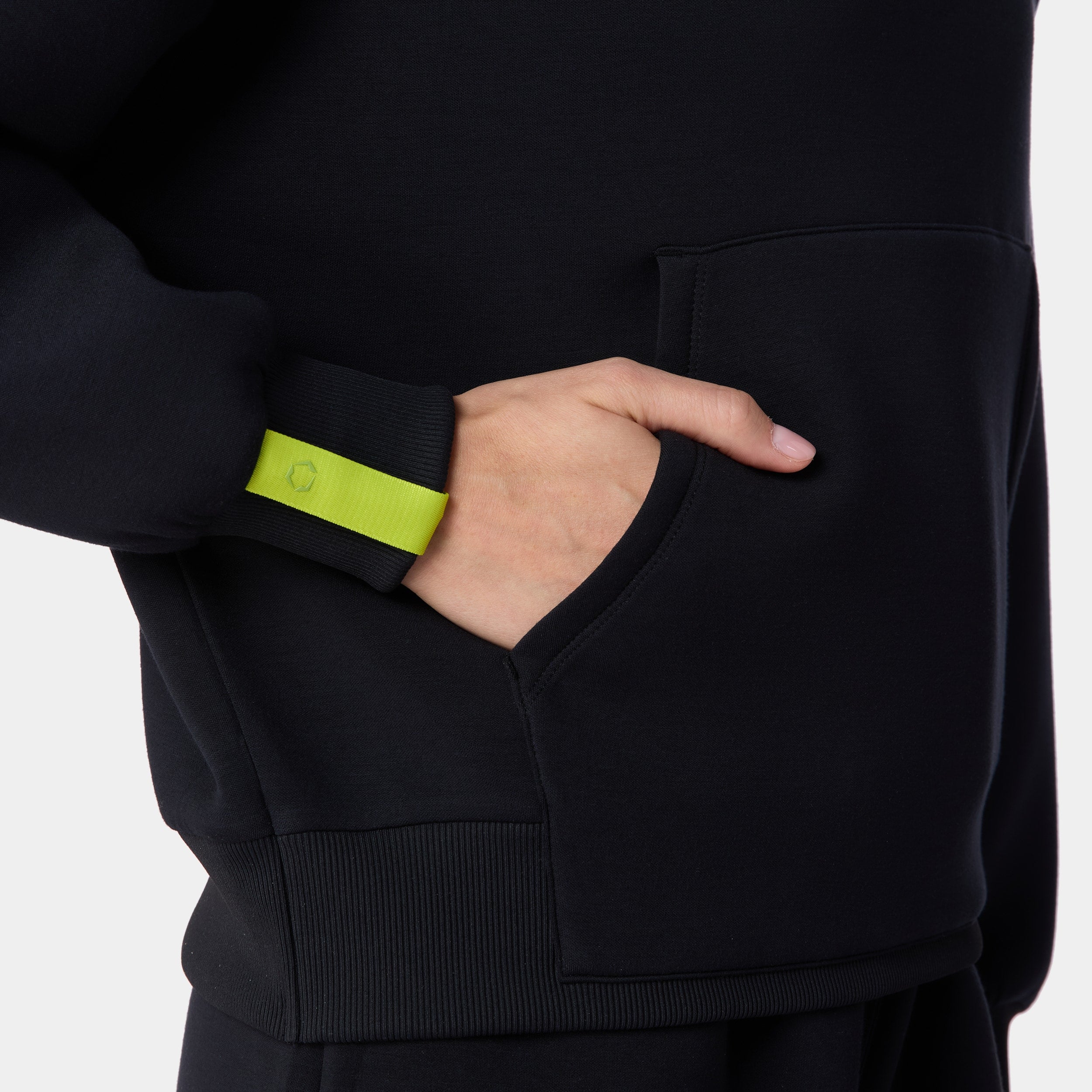 3D wood pulp-based spacer fabric with built-in climate control, breathability, and moisture management Wrap-over detail on a 3-piece hood for a secure fit Dropped shoulders for a relaxed silhouette Kangaroo patch pocket for convenient storage Ribbed cuffs and hem for a snug finish Signature IDP logo tape on the front right sleeve hem 3D bevel icon logo on the top left sleeve Oversized fit Model wearing Extra Small: Height 5'10" / 177 cm // Bust: 32" // Waist: 25" // Hips: 38"