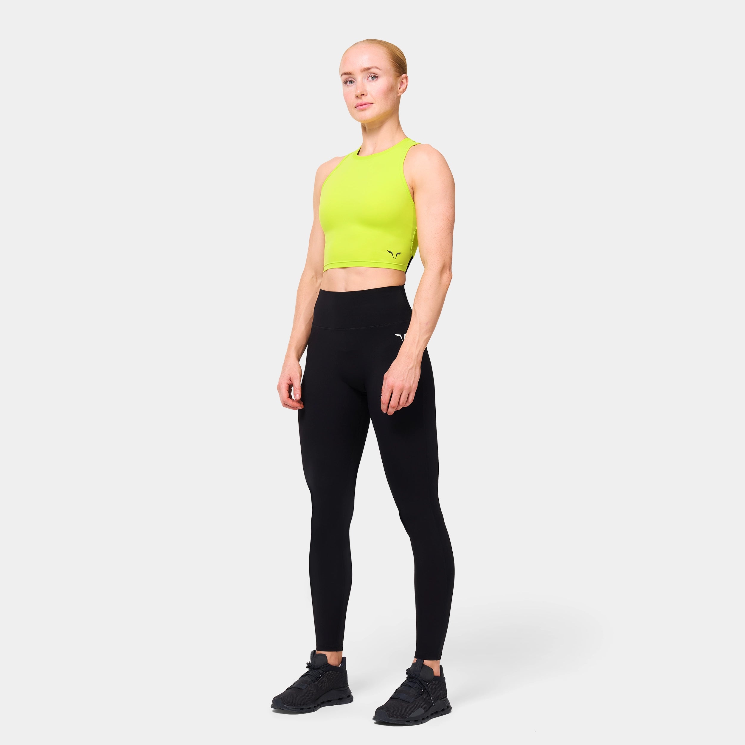 Ultra comfortable Soft brushed hand feel 4-way stretch Ribbed crew neckline Muscle back cut out Wordmark elastic insert at back waist Athletic fit Model Wearing Extra Small: Height 5'6" / 167 cm // Bust: 33.5″ // Waist: 26″ // Hips: 35.5″