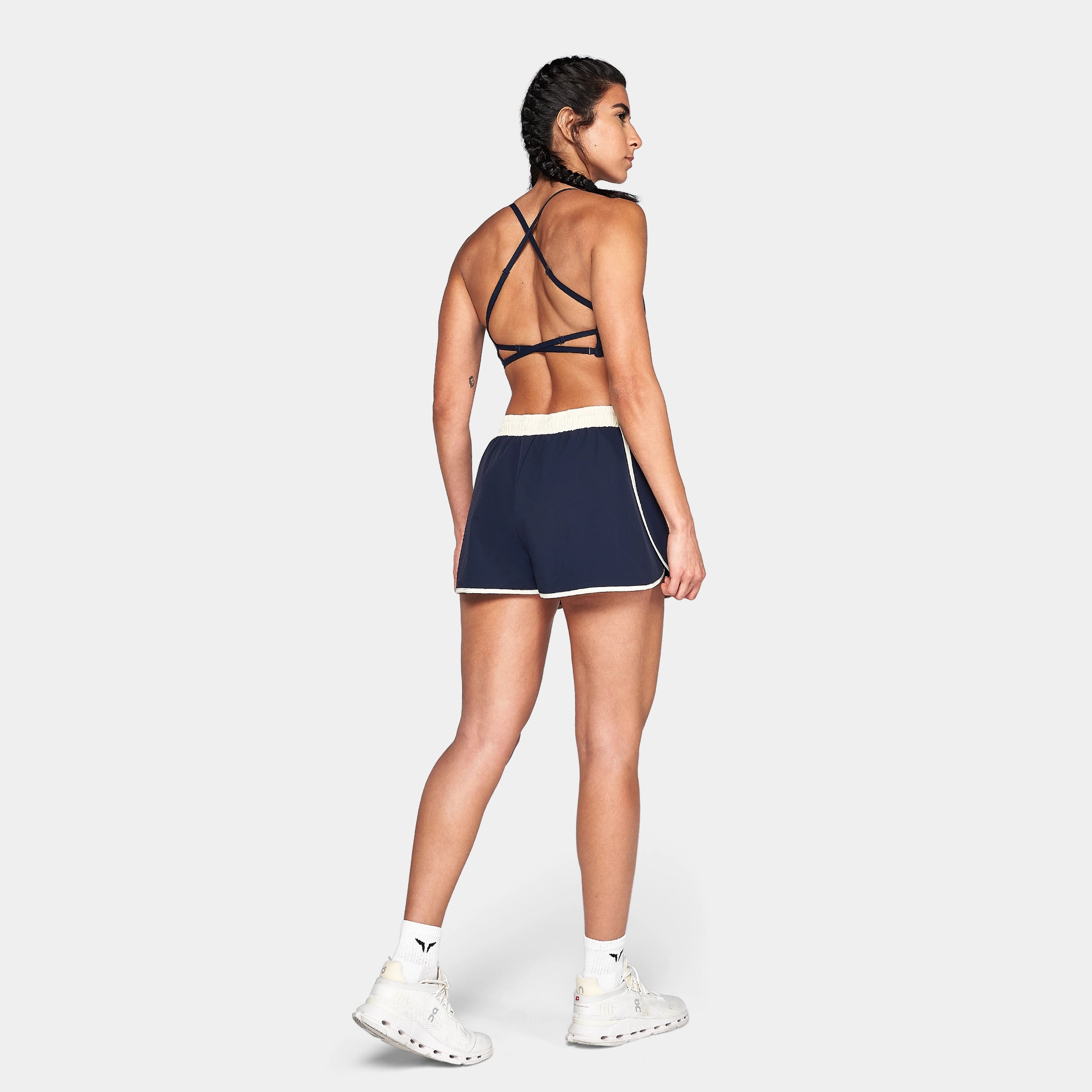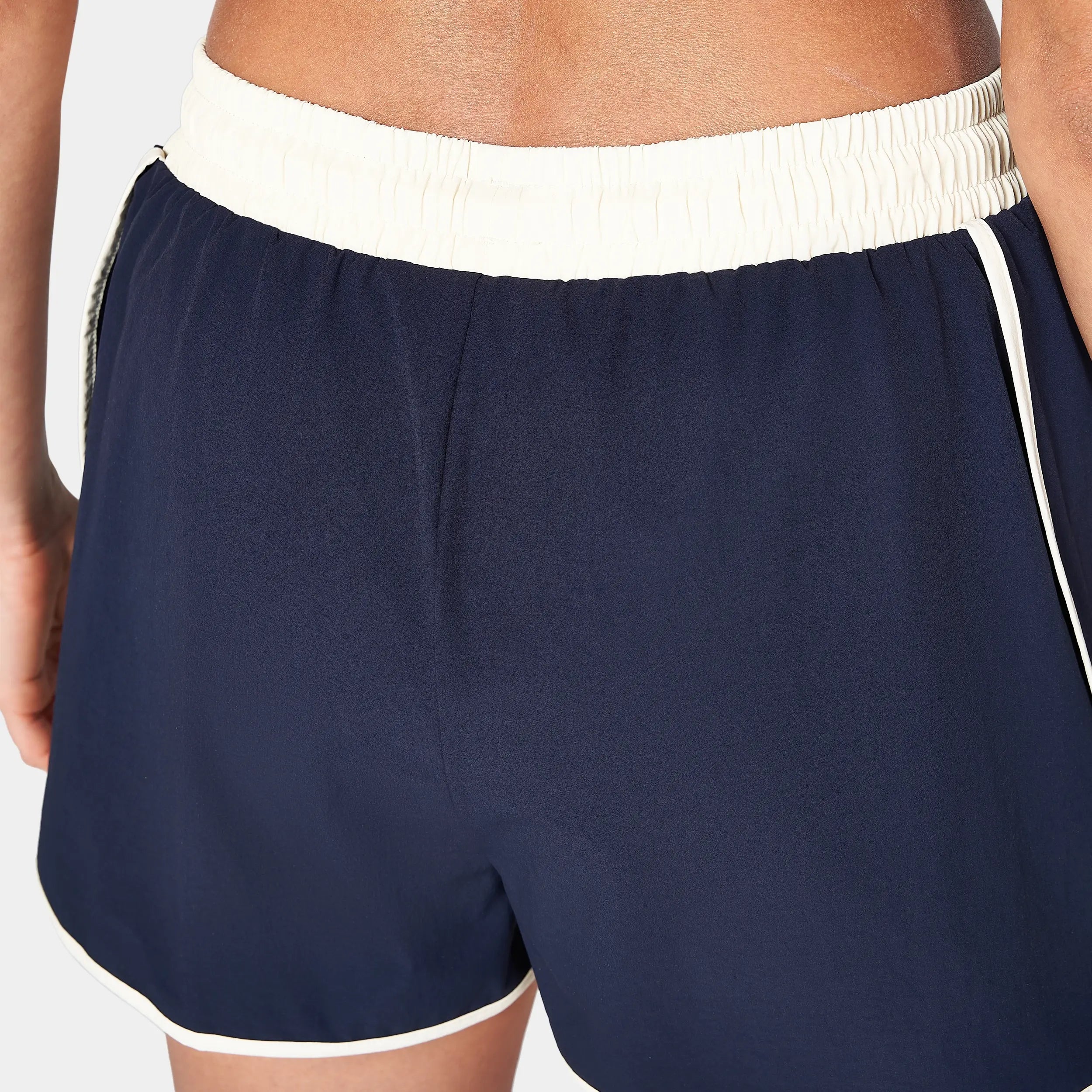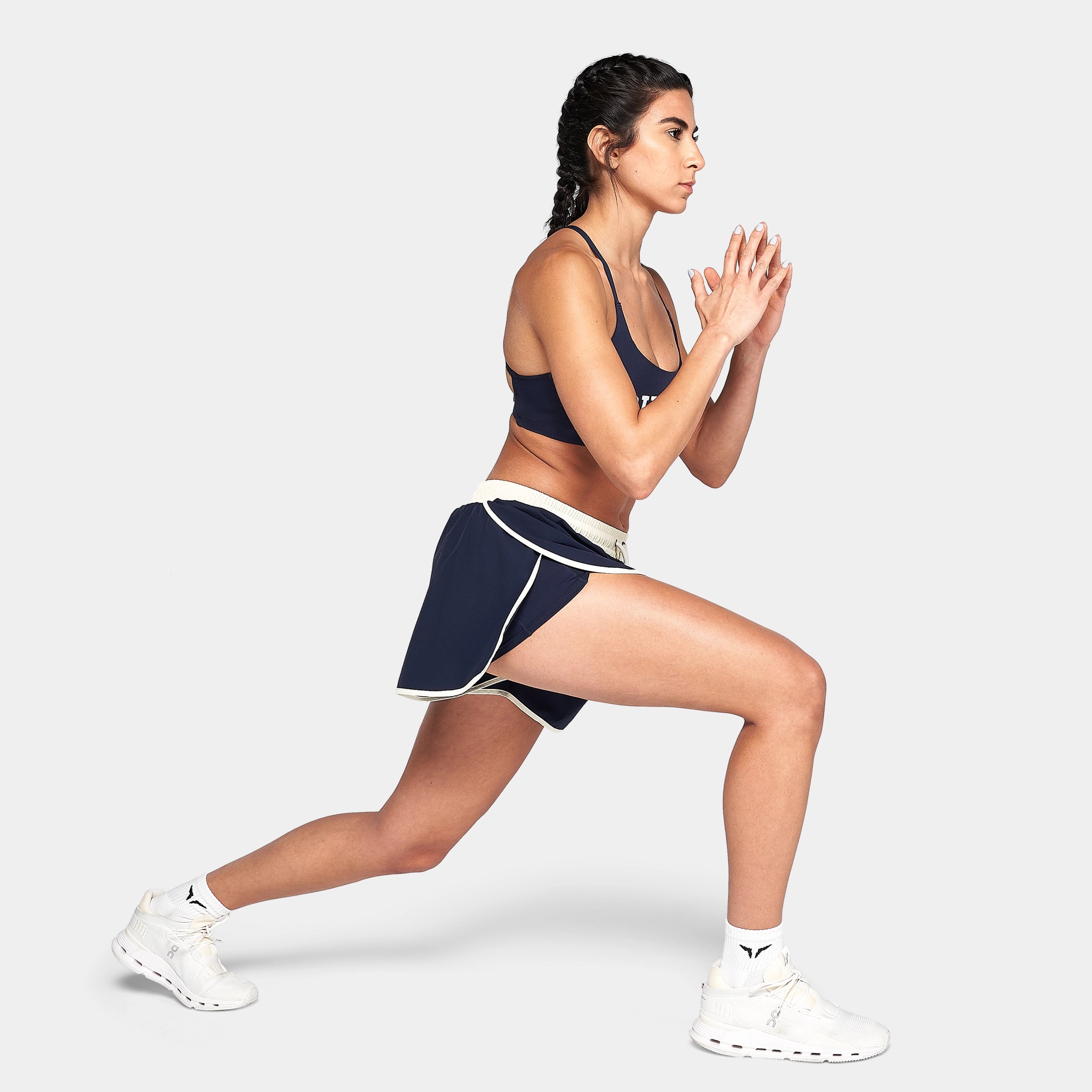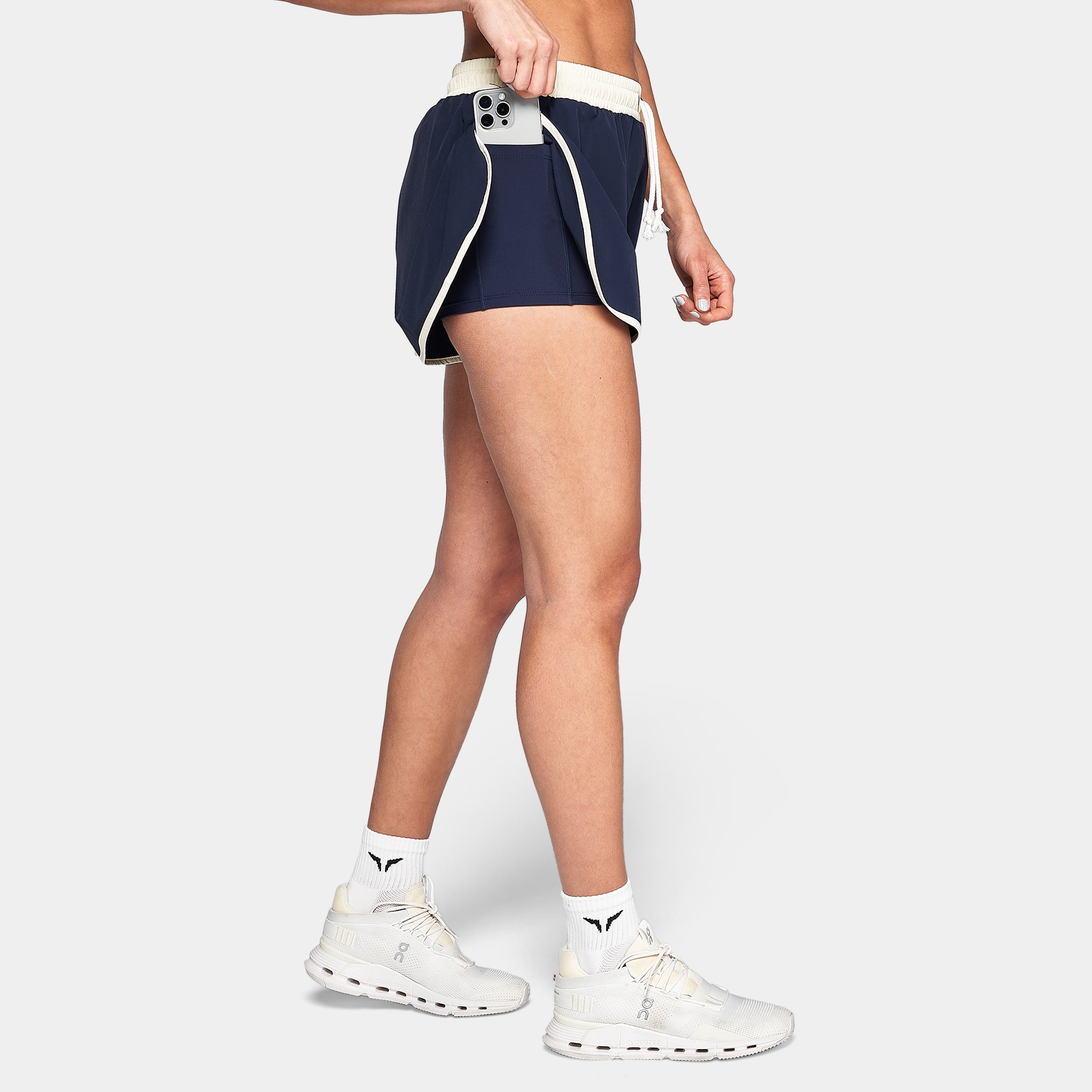 Outer short: Lightweight Fabric feels soft against the skin 2-way stretch Inner short: 4-way stretch Soft against the skin Elaticated waistband with external rope drawcord and brushed silver eyelets Pipping detail at hem and side seams Side wrap vent feature Inner short with side slip pockets included Regular fit Model Wearing Small: Height 5'9" / 174 cm // Bust: 33.5″ // Waist: 27″ // Hips: 38″ Garment measurements: Outer short: Inseam length for all sizes: 2" / 5 cm Inner short: Inseam length for all sizes: 1" / 2.5 cm
