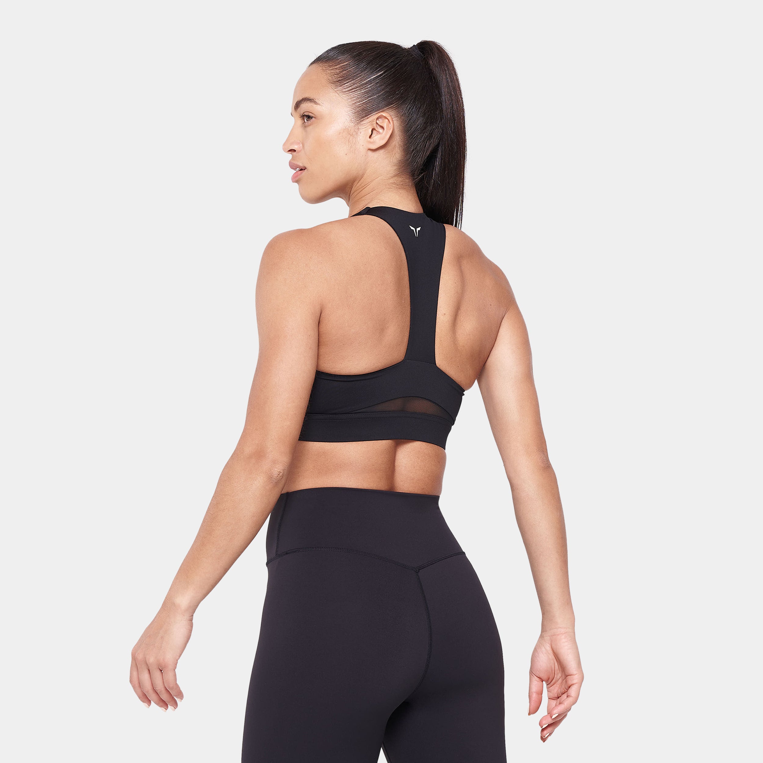 4-way stretch Fabric feels soft against the skin Muscle back shape Mid impact Best for C D cup Mid coverage scoop neckline Elasticated underbust band Power mesh back insert for breathability Athletic fit Model Wearing Small: Height 5'8" / 173 cm // Bust: 35" // Waist: 27.5" // Hips: 40"