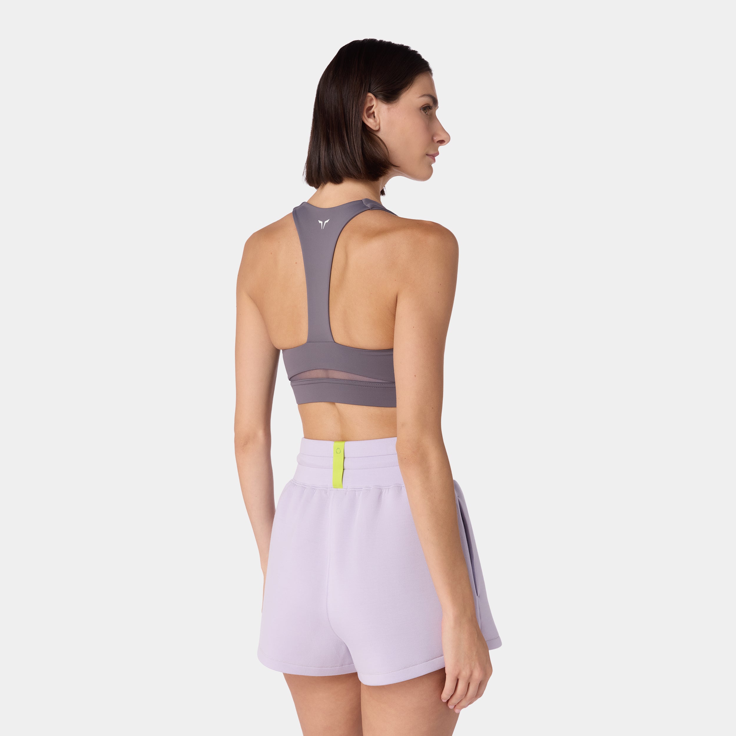 Scooped neckline Racerback design Lightly padded with built-in foam Breathable powermesh keyhole Icon logo on the back neck Designed for C/D cups Mid coverage Model wearing Extra Small: Height 5'10" / 177 cm // Bust: 32" // Waist: 25" // Hips: 38"