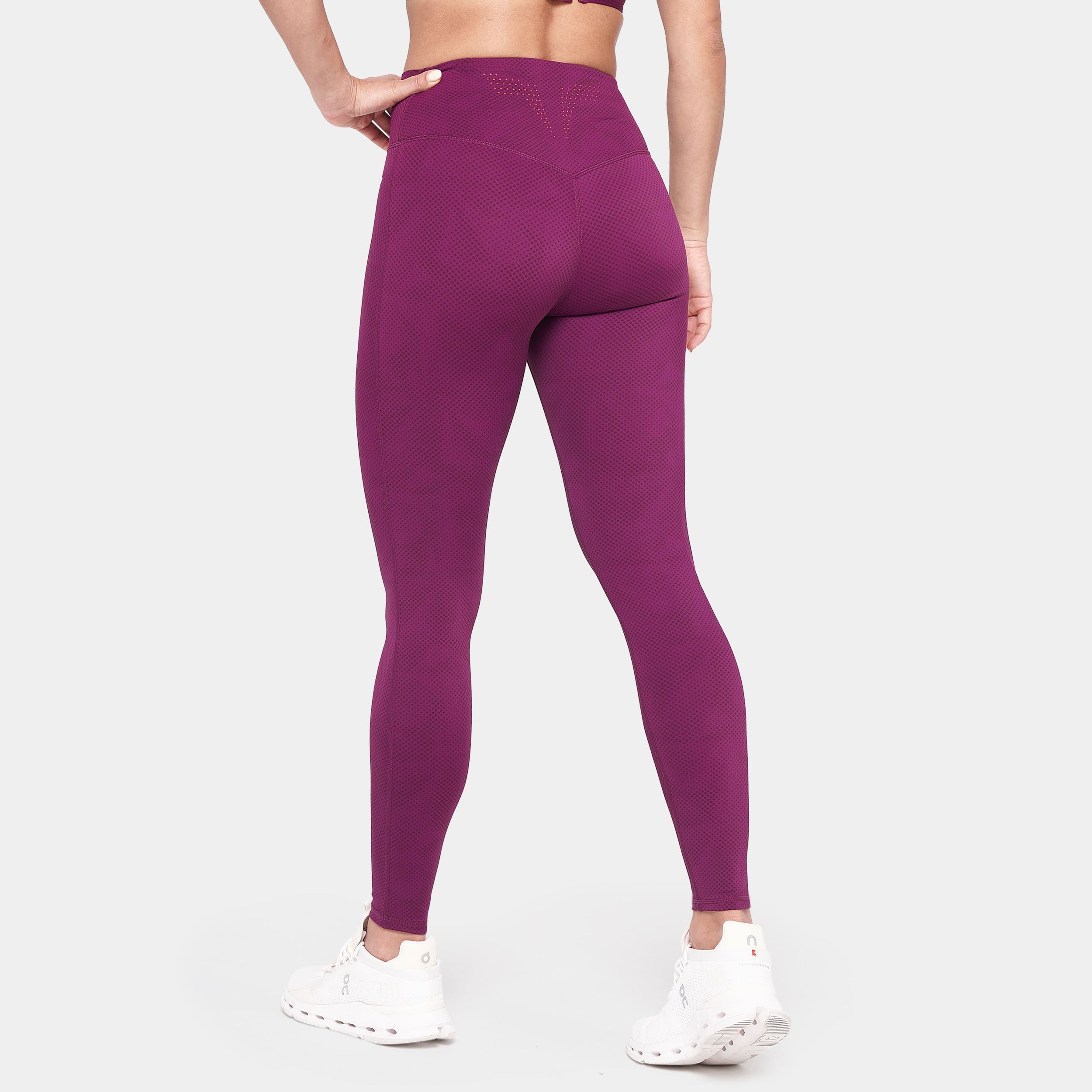 4-way stretch Fabric feels soft against the skin Double Layer High waisted Full length Elastic-free front waistband Back waist slip pocket for storage No front rise (A.C.T) for anti-chafing and anti-bunching Integrated gusset for a greater range of motion Perforated icon at center back for breathability Athletic fit Model Wearing Small: Height 5'8" / 173 cm // Bust: 35″ // Waist: 27.5″ // Hips: 40″ Inseam length for all sizes: 27” / 69 cm