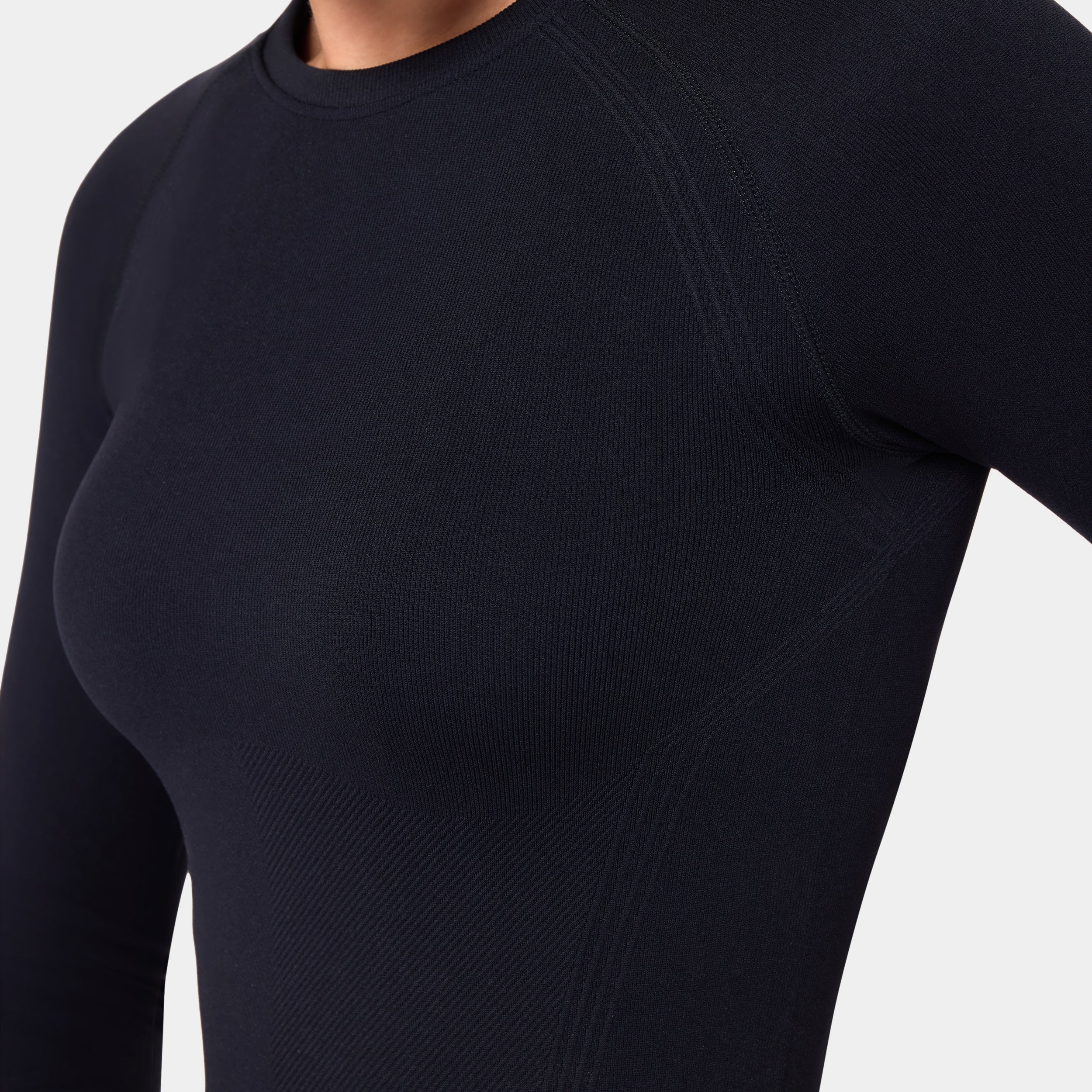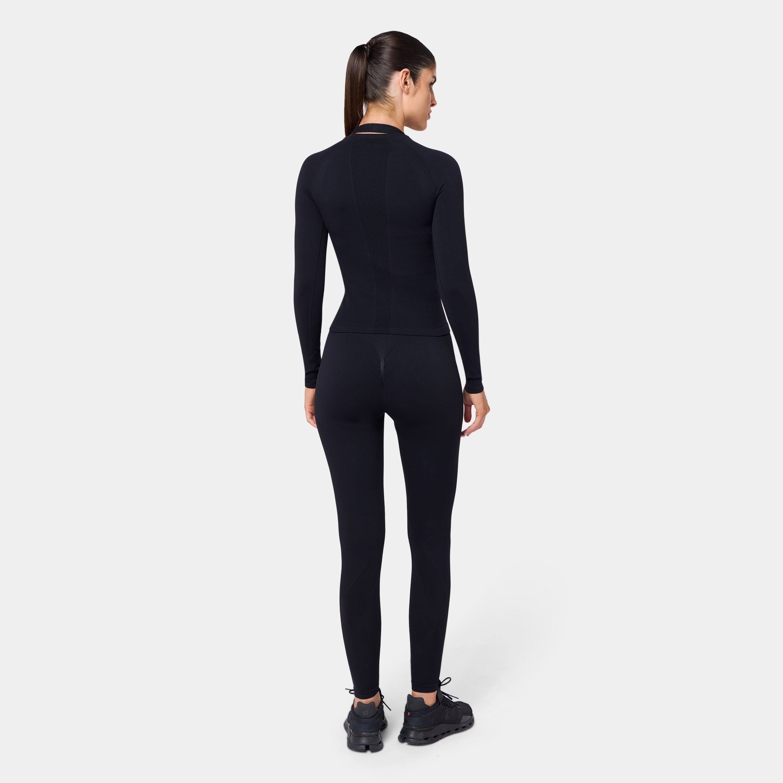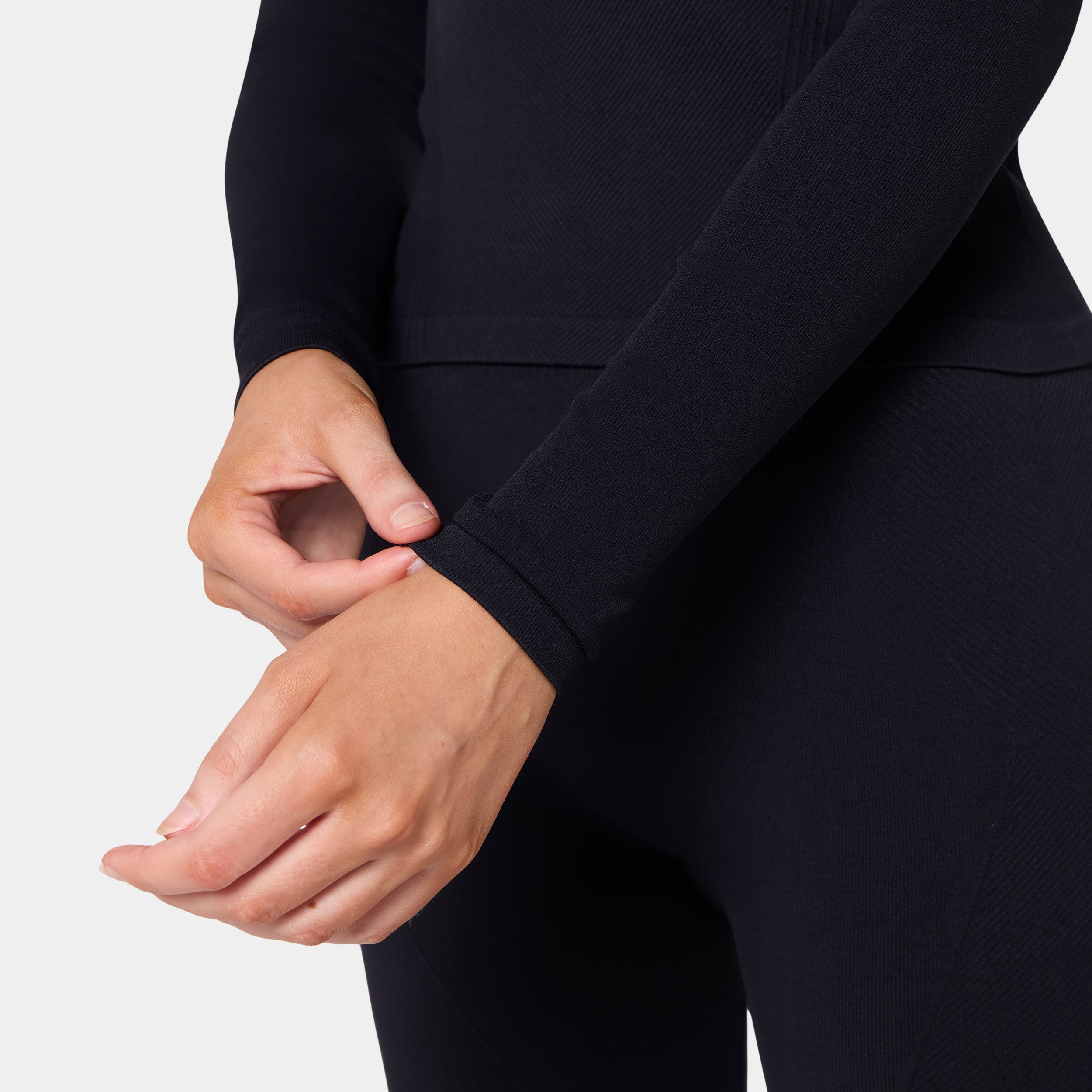 Seamless knit with high stretch, crafted for a smooth, second-skin feel that supports ease of movement and all-day comfort during low-impact workouts.
