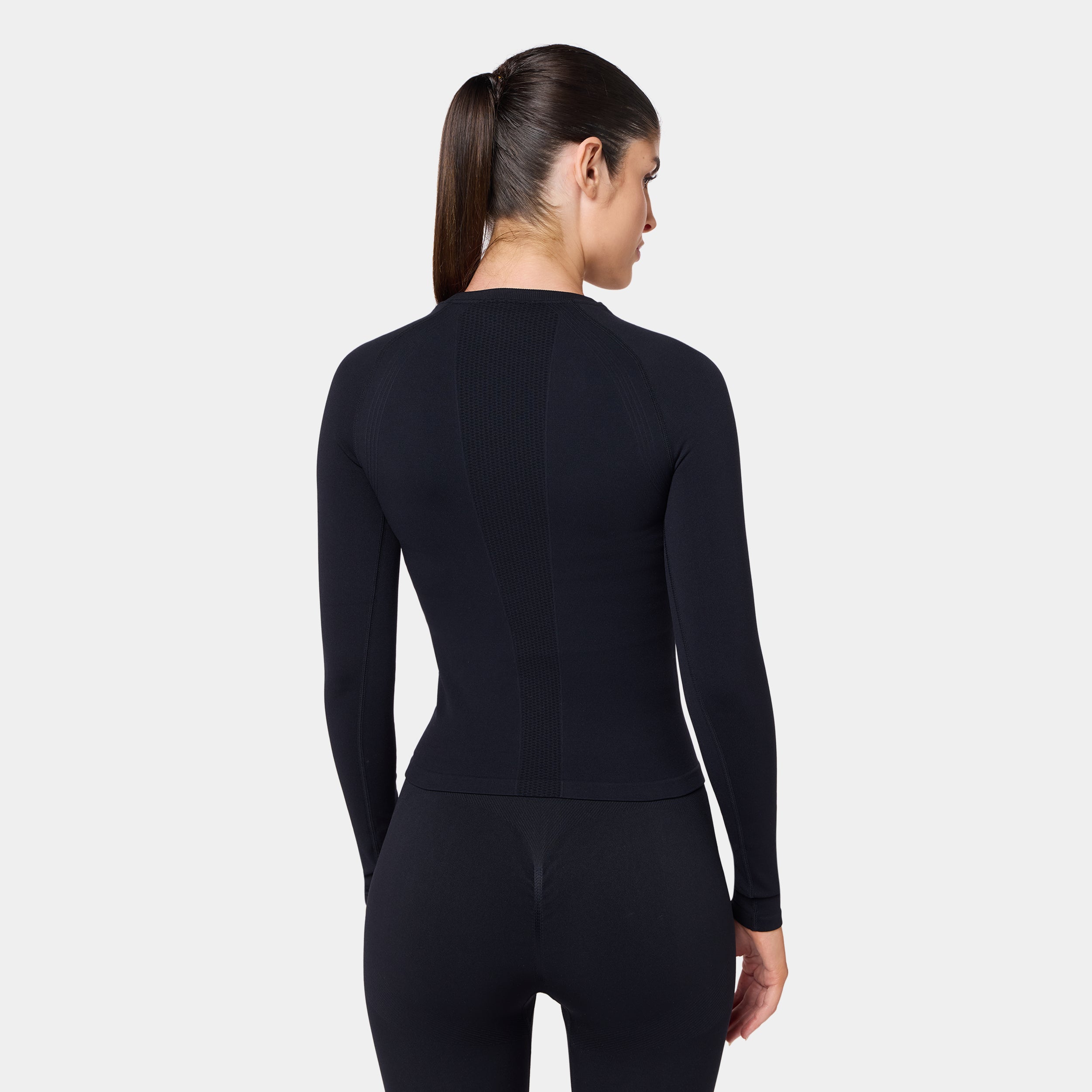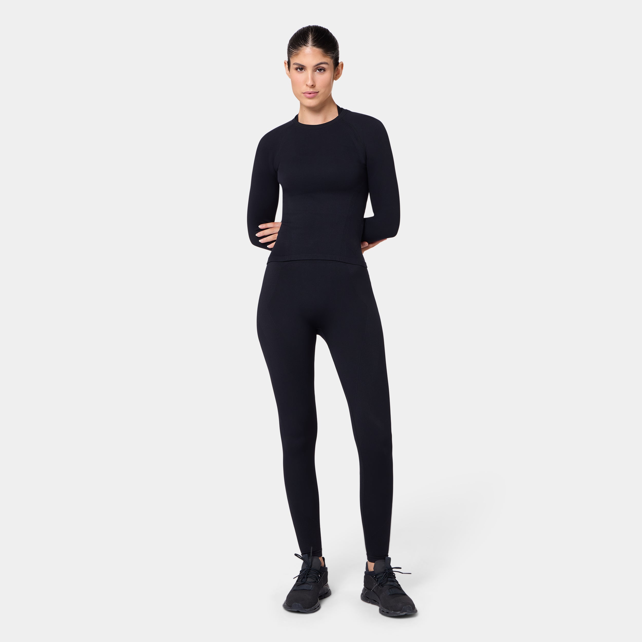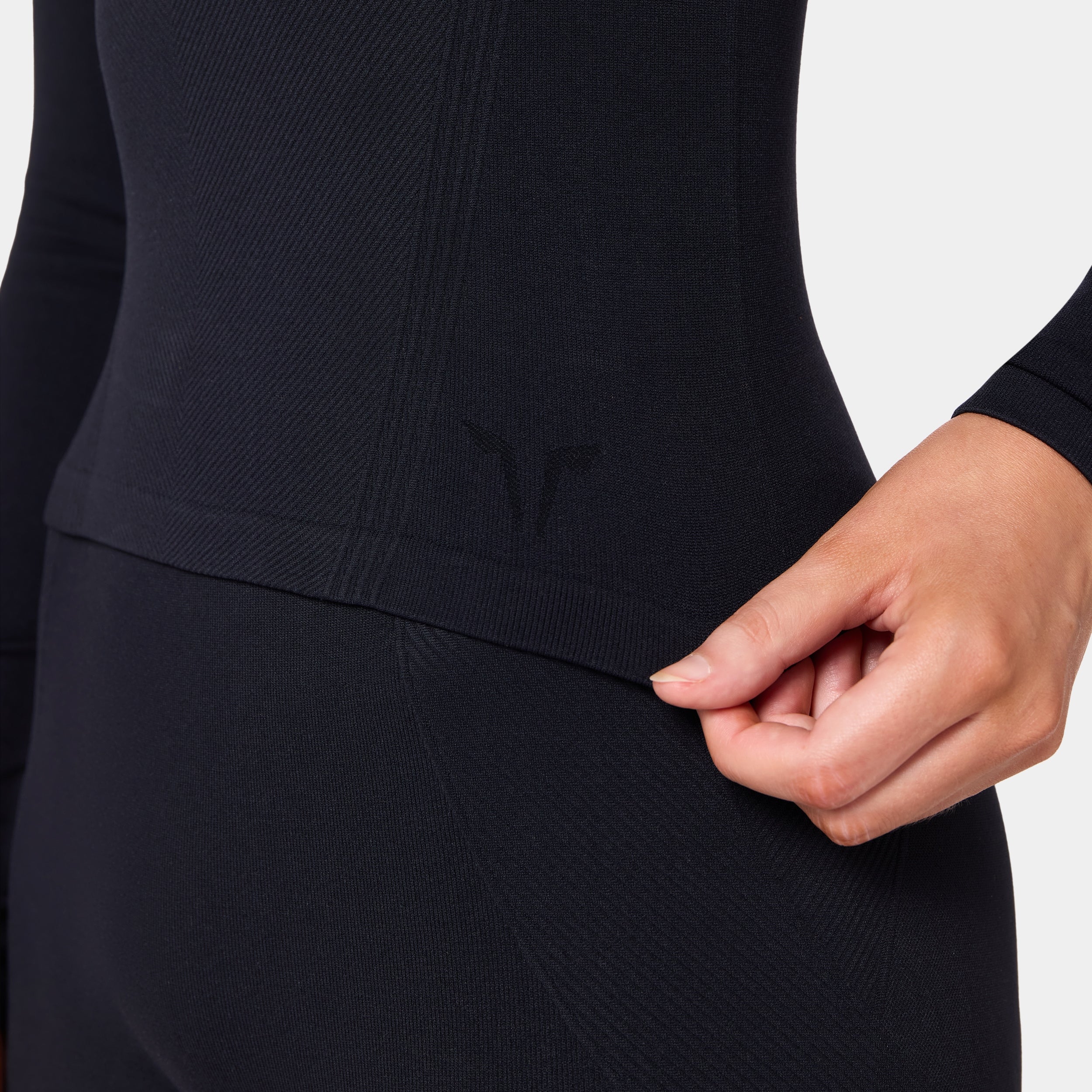 Seamless knit with high stretch, crafted for a smooth, second-skin feel that supports ease of movement and all-day comfort during low-impact workouts.