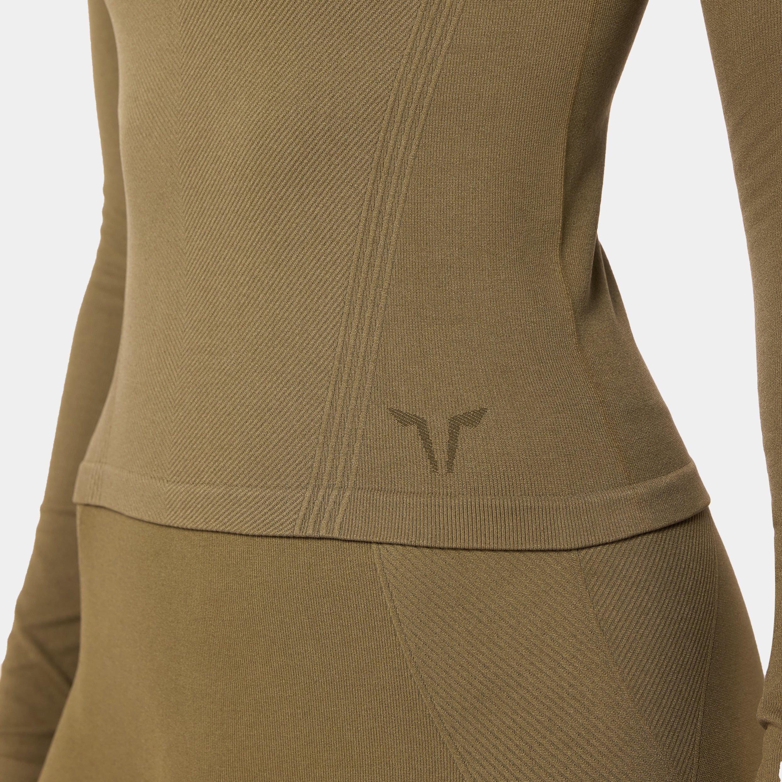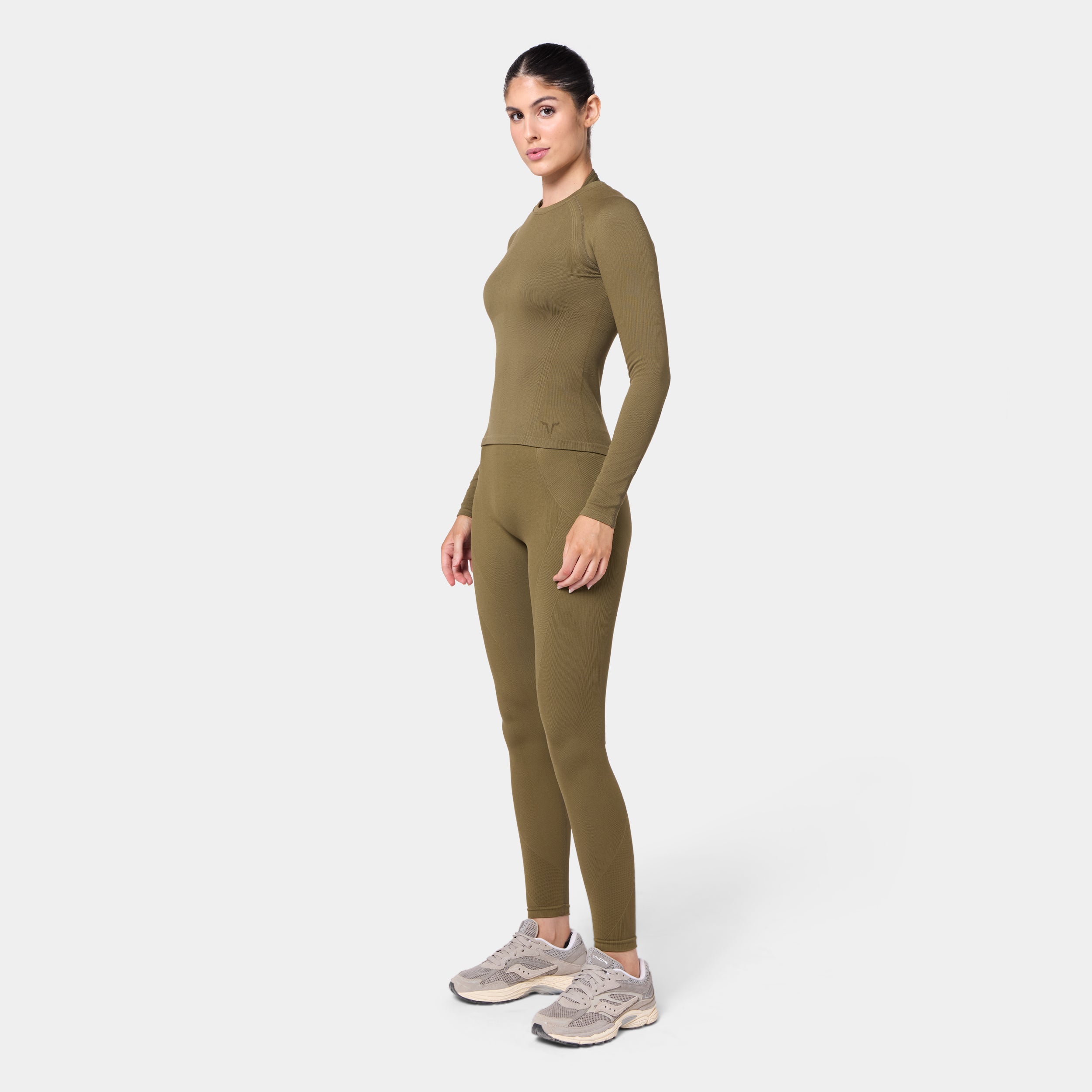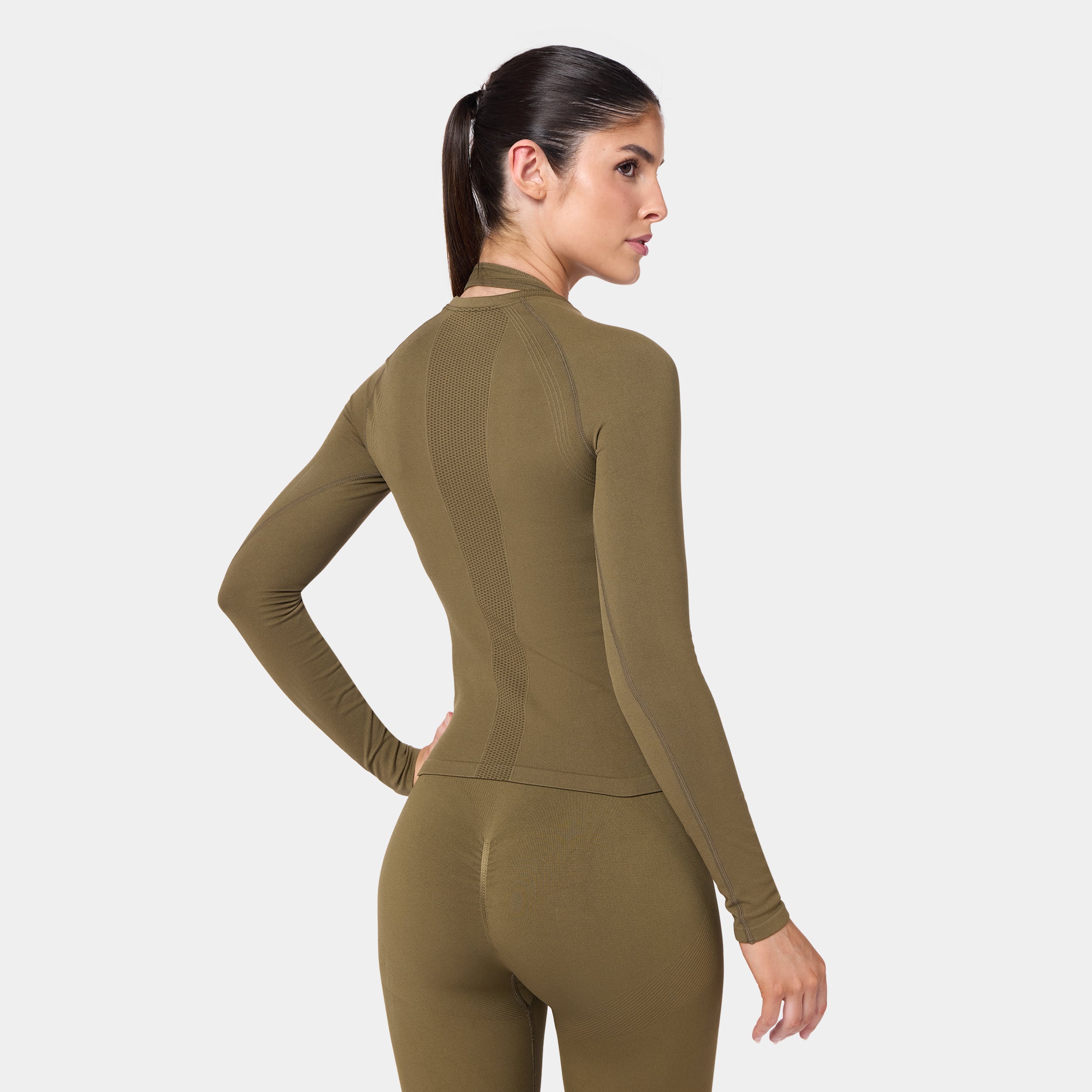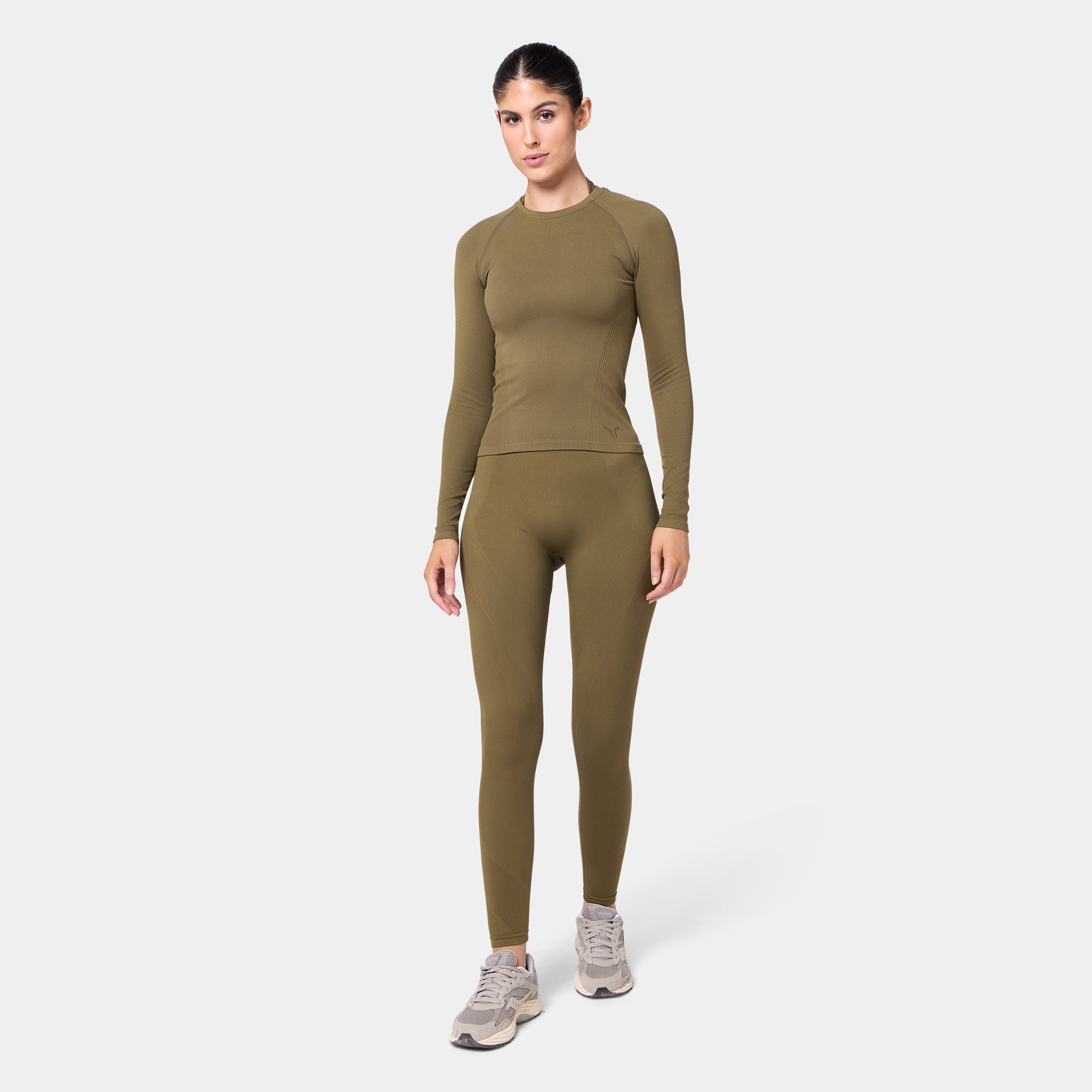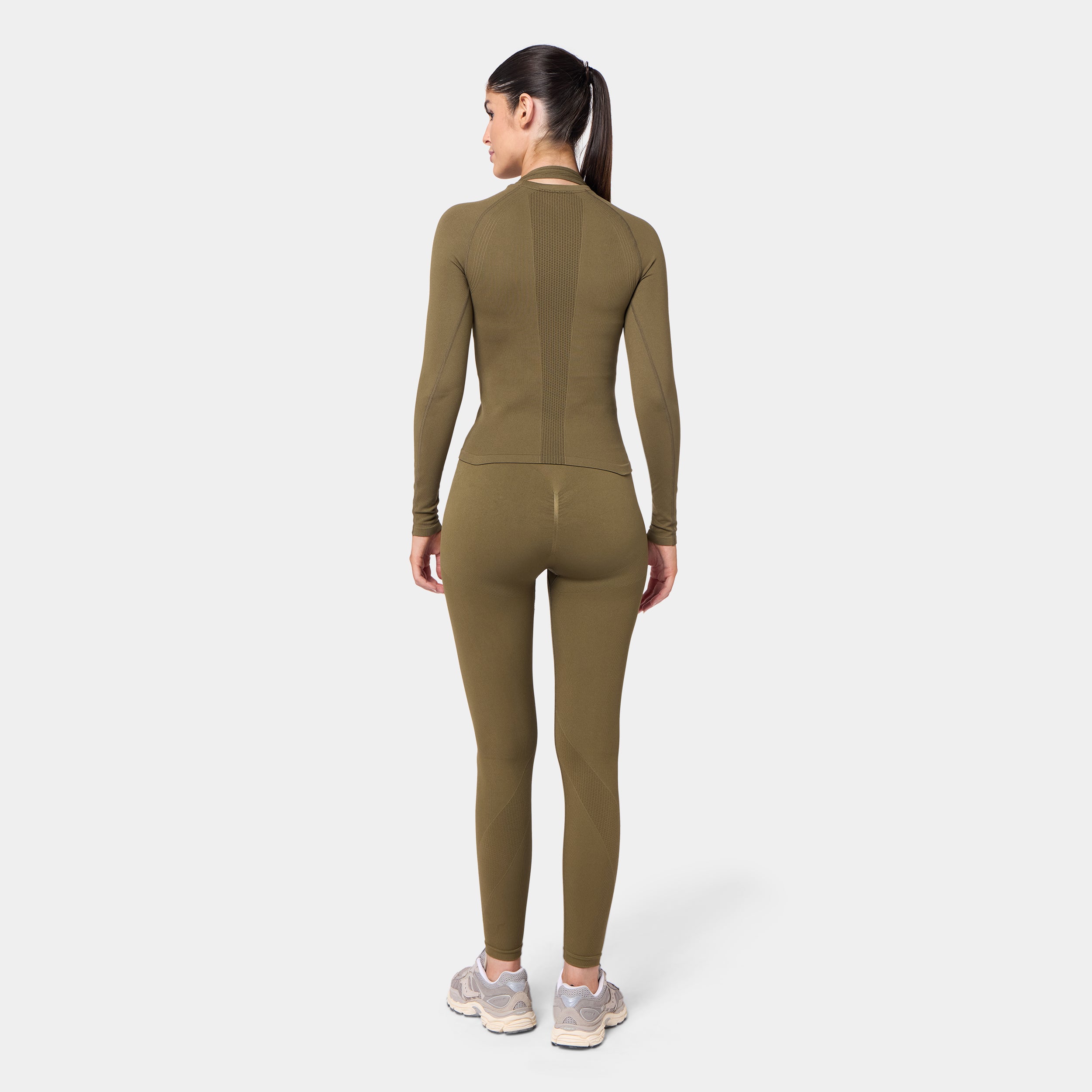 Seamless knit with high stretch, crafted for a smooth, second-skin feel that supports ease of movement and all-day comfort during low-impact workouts.