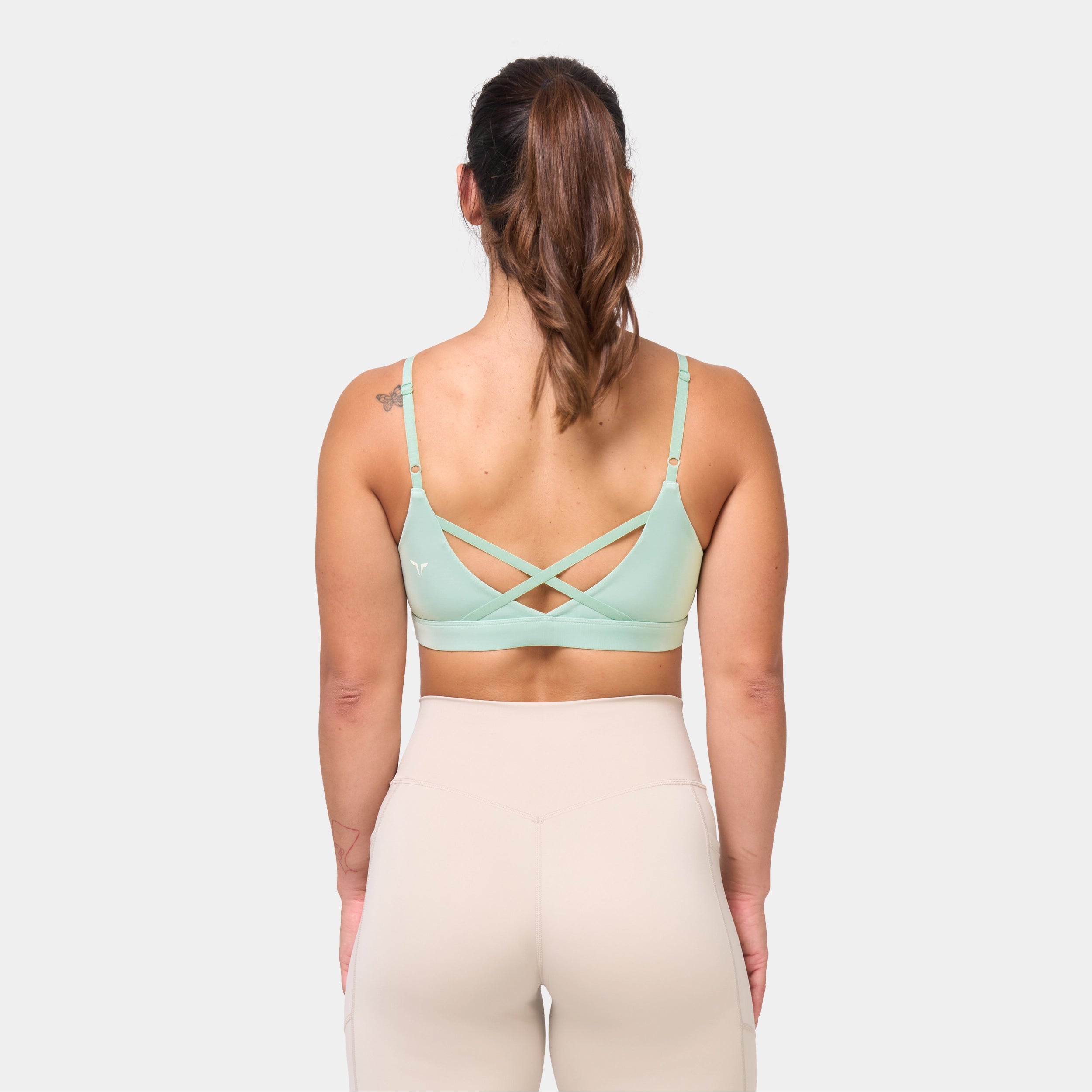 4-way stretch Lightweight Fabric feels soft against the skin Low coverage V-shaped neckline Adjustable straps Criss-cross strap detailing on back Removable cups Athletic fit Model Wearing Medium: Height 5'6" / 169 cm // Bust: 36.5" // Waist: 31.5" // Hips: 37.5" Garment measurements: Chest width (bust): XS - 70.5 cm Chest width (bust): S - 77 cm Chest width (bust): M - 83 cm Chest width (bust): L - 90 cm Chest width (bust): XL - 96 cm Underbust band width: XS - 58 cm Underbust band width: S - 64 cm Underbust band width: M - 70.5 cm Underbust band width: L - 77 cm Underbust band width: XL - 83 cm