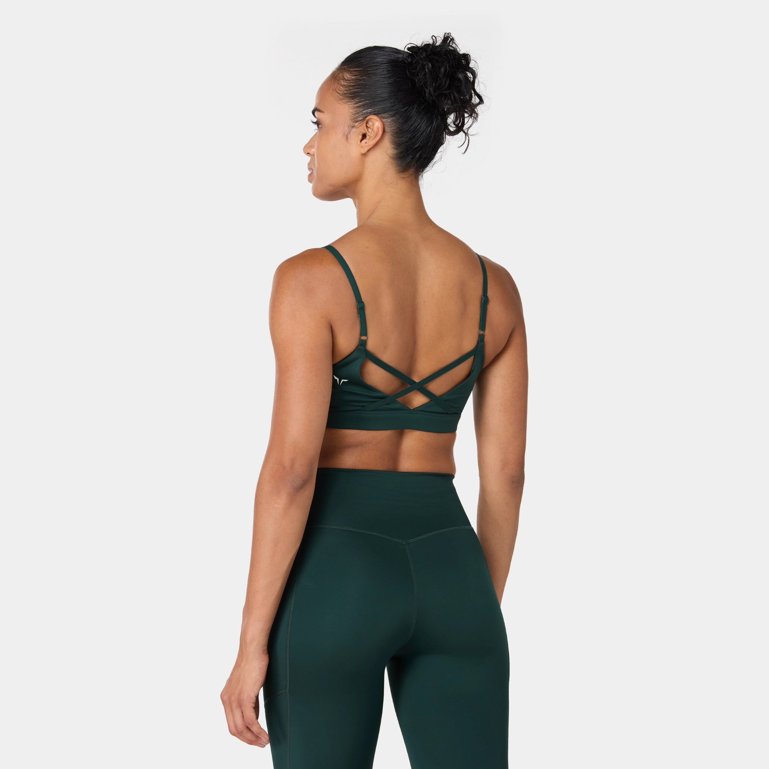 V-shaped neckline Adjustable straps for a custom fit Removable cups for flexible support Light support for low-impact activities Icon logo on back left Designed for A/C cups Low coverage Model Wearing Small: Height 5'7" / 176 cm // Bust: 34" // Waist: 31" // Hips: 40"