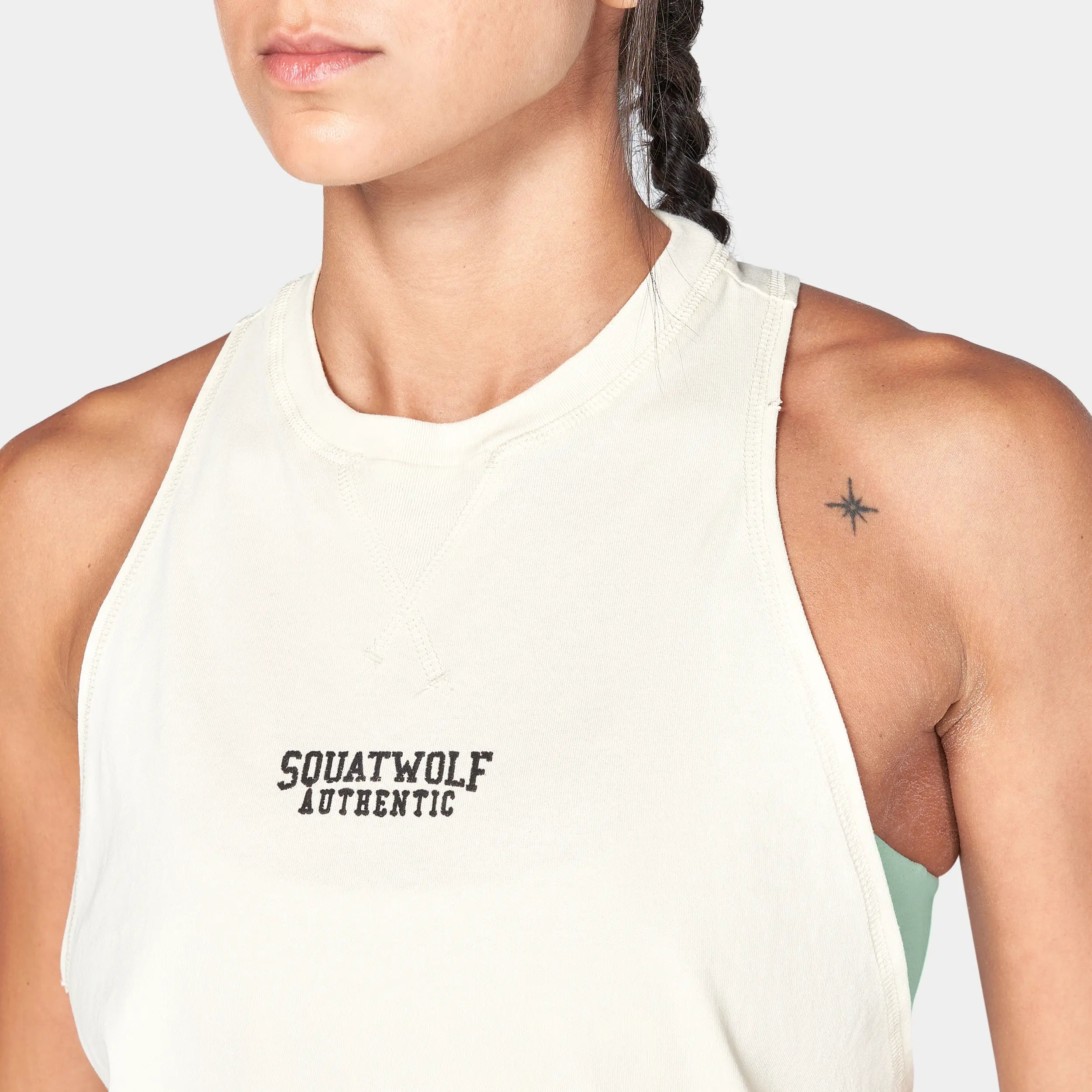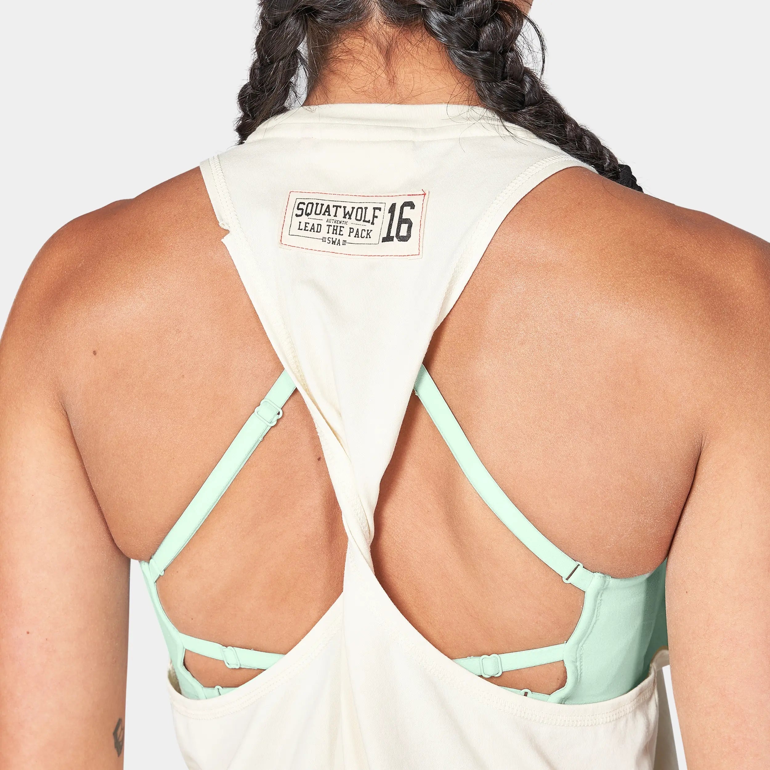 Cotton hand-feel Fabric feels soft against the skin 2- Way Stretch Crew neckline with v-shaped rib insert Extreme dropped armhole Distresssed edge design detail Muscle back twist at back Regular fit Model Wearing Extra Small: Height 5'9" / 174 cm // Bust: 33.5″ // Waist: 27″ // Hips: 38″