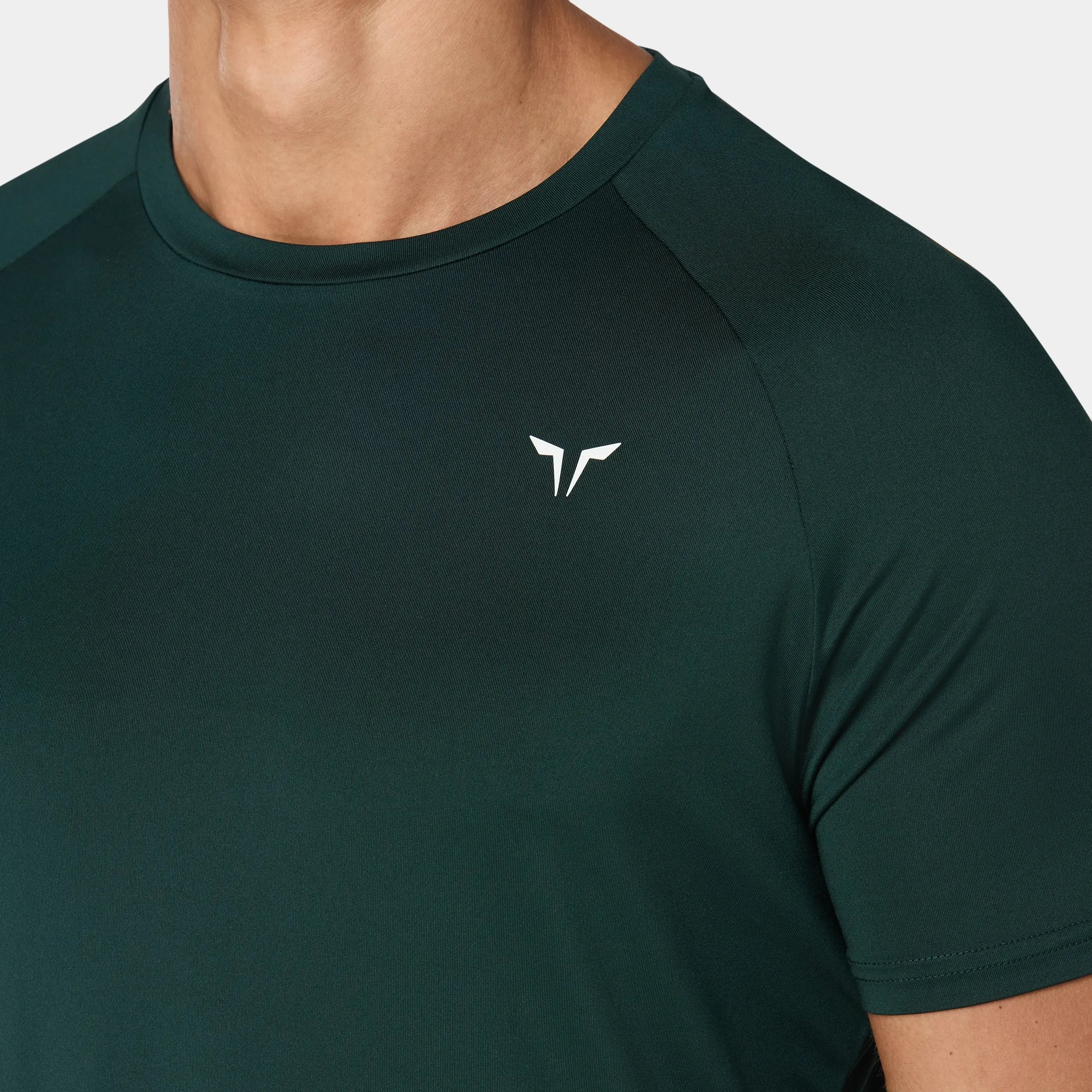 Classic crew neckline Raglan short sleeves for easy movement Side panels in breathable mock eyelet fabric Split hem for added flexibility Icon logo on front chest Model Wearing Medium: Height 6'2" / 190 cm // Chest: 41.5" // Waist: 33" Athletic Fit